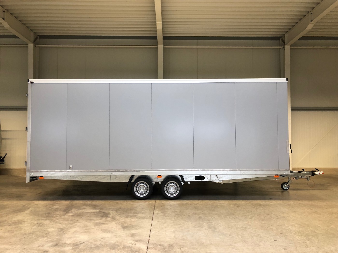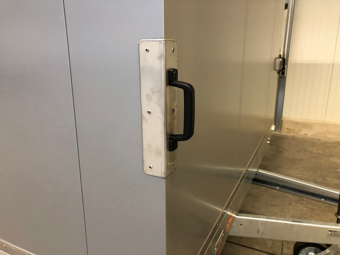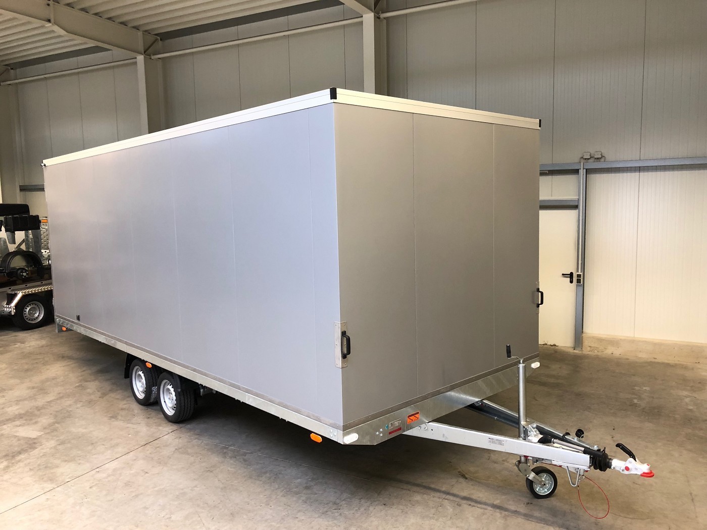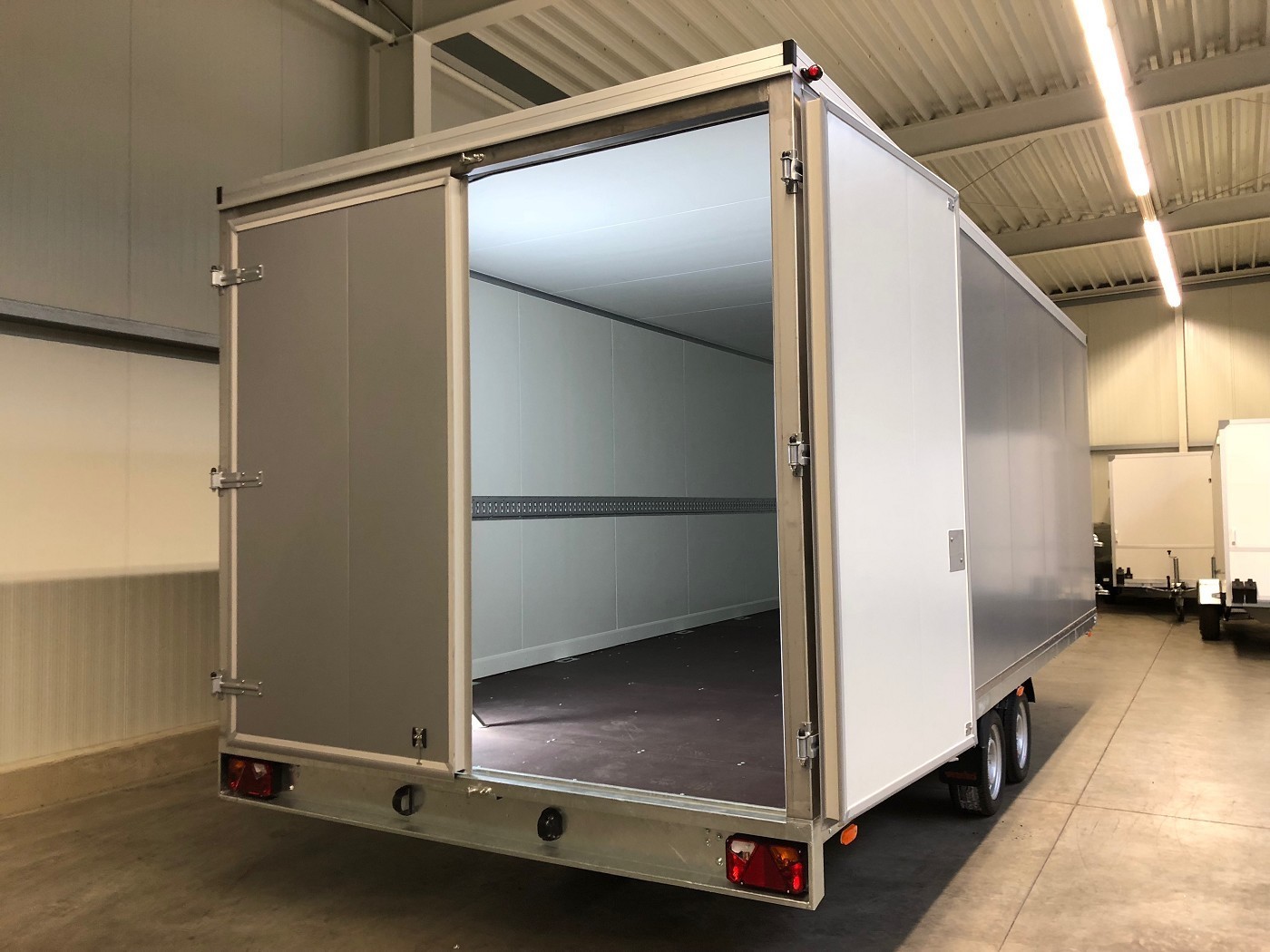 Kofferanhänger in silber als Hochlader mit Doppelflügeltür