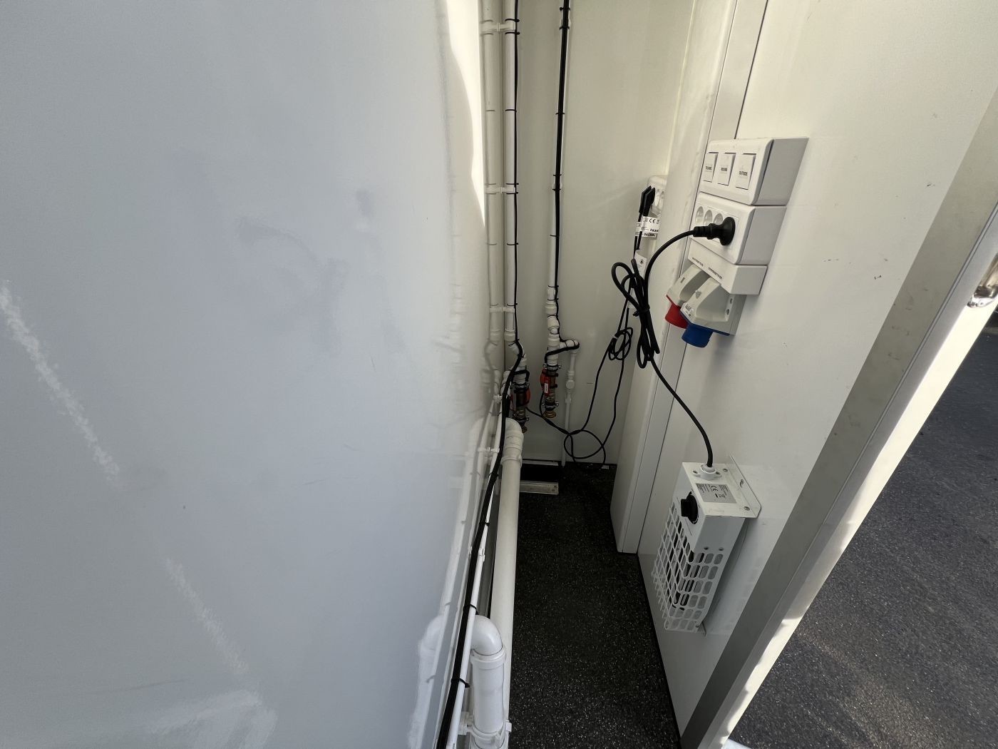 1x 380 V (Starkstrom) Stromeingang für Innenbeleuchtung, Eingangsbeleuchtung und Heizungen (Winterbetrieb)