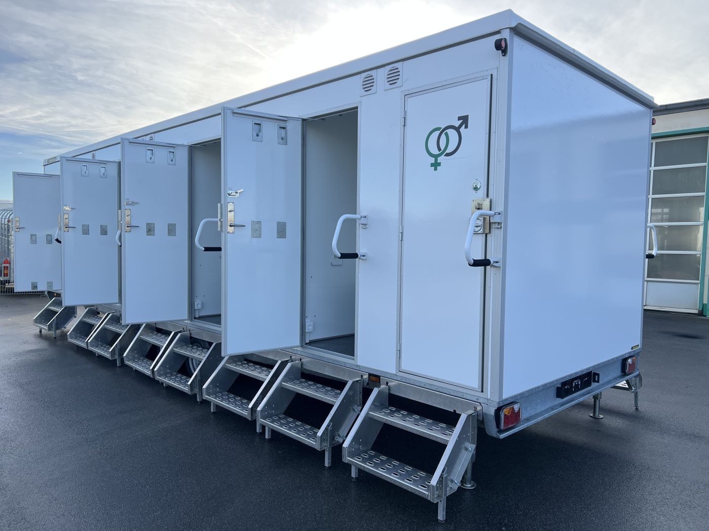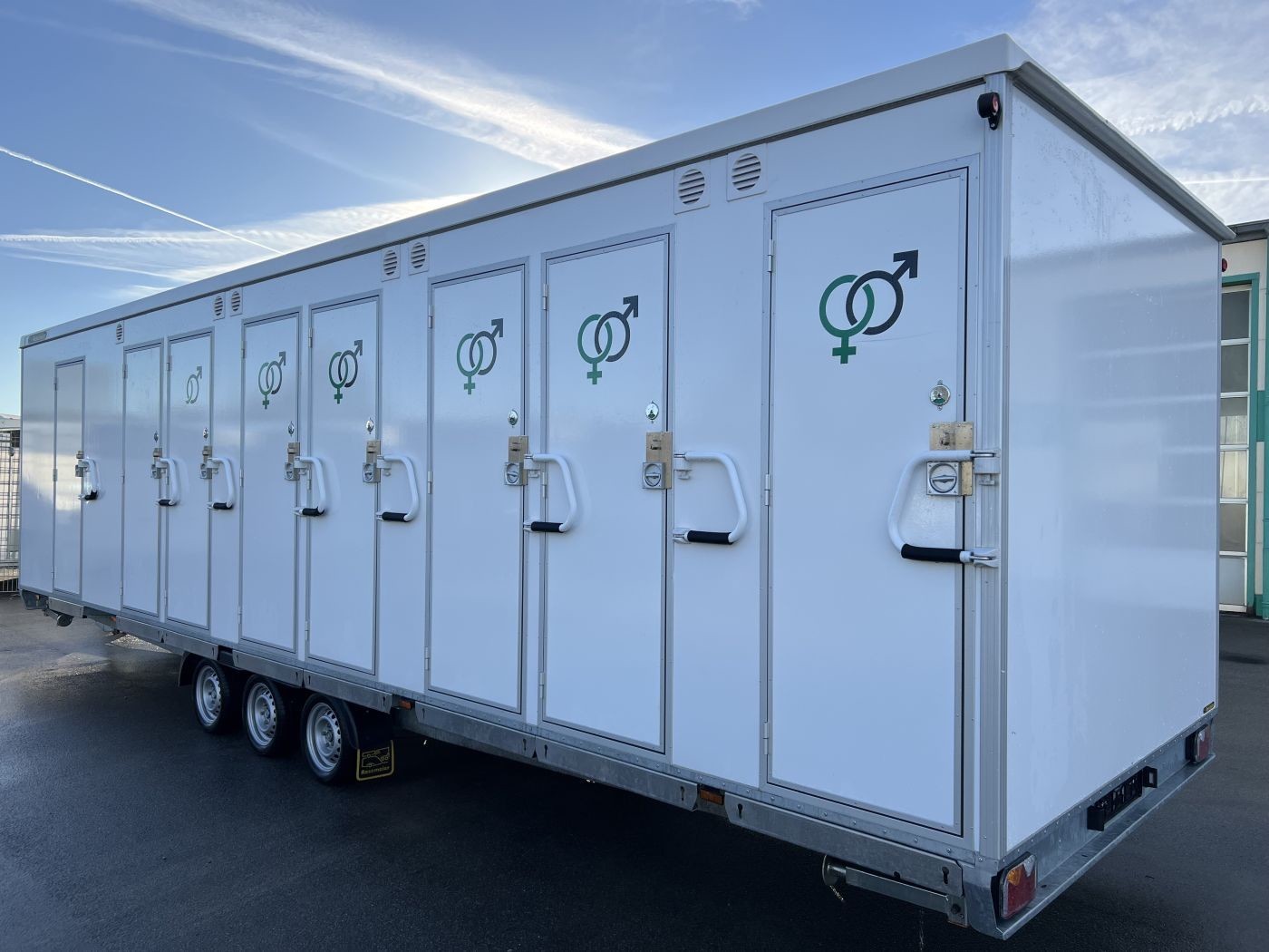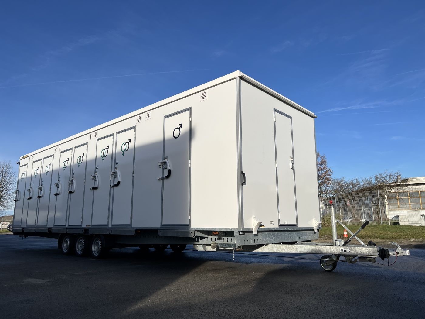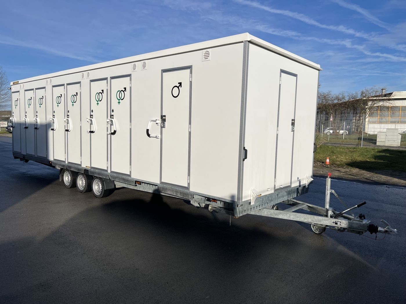 Gebrauchter Festival-Toilettenanhänger mit 14 WC-Kabinen und 7 Urinalen
