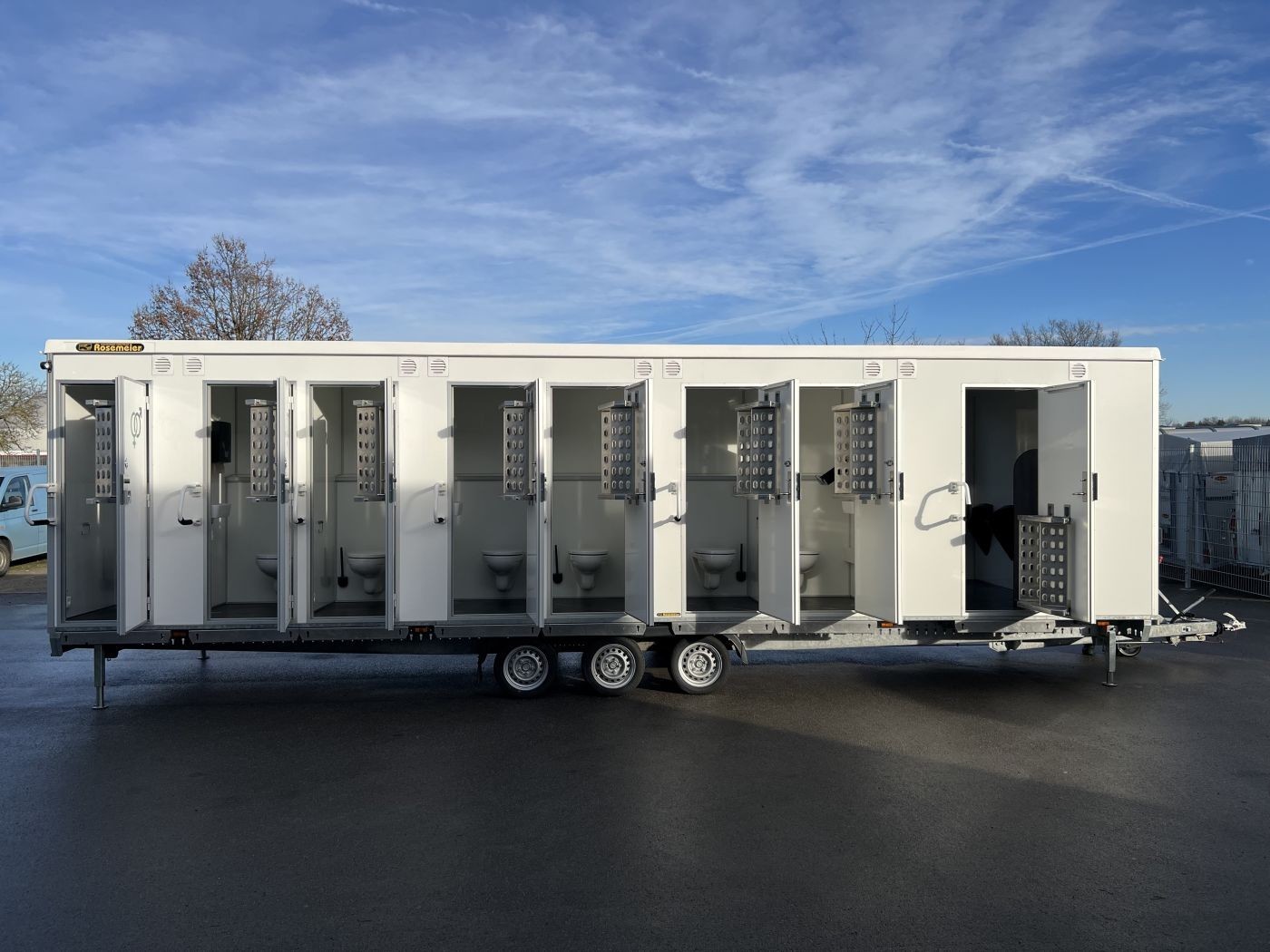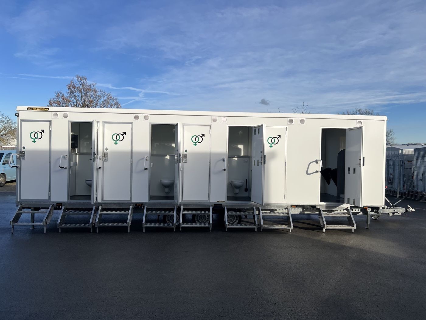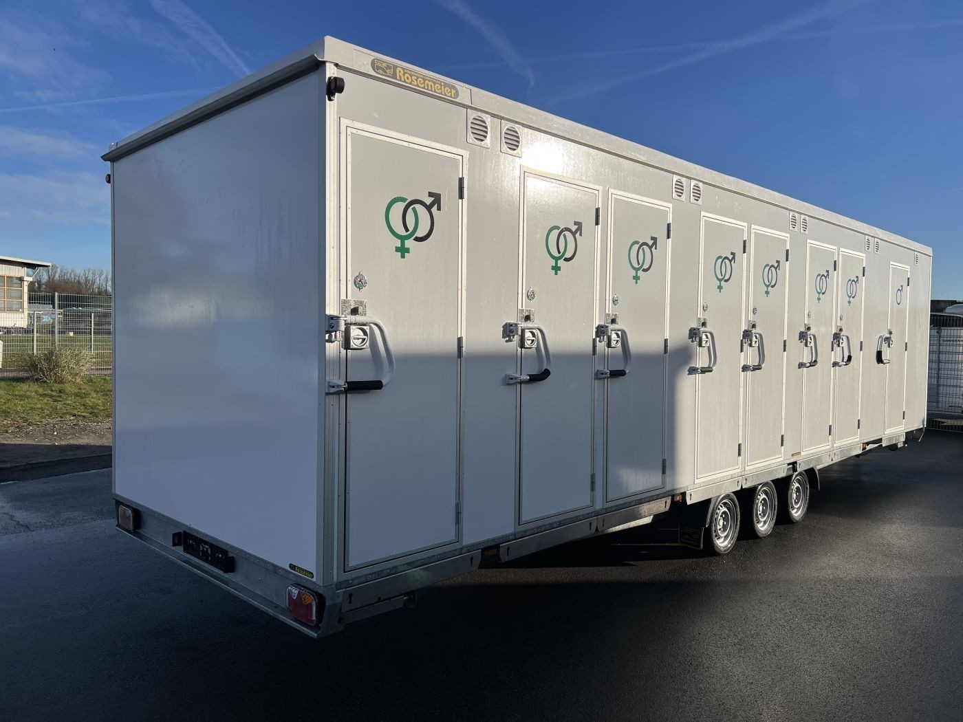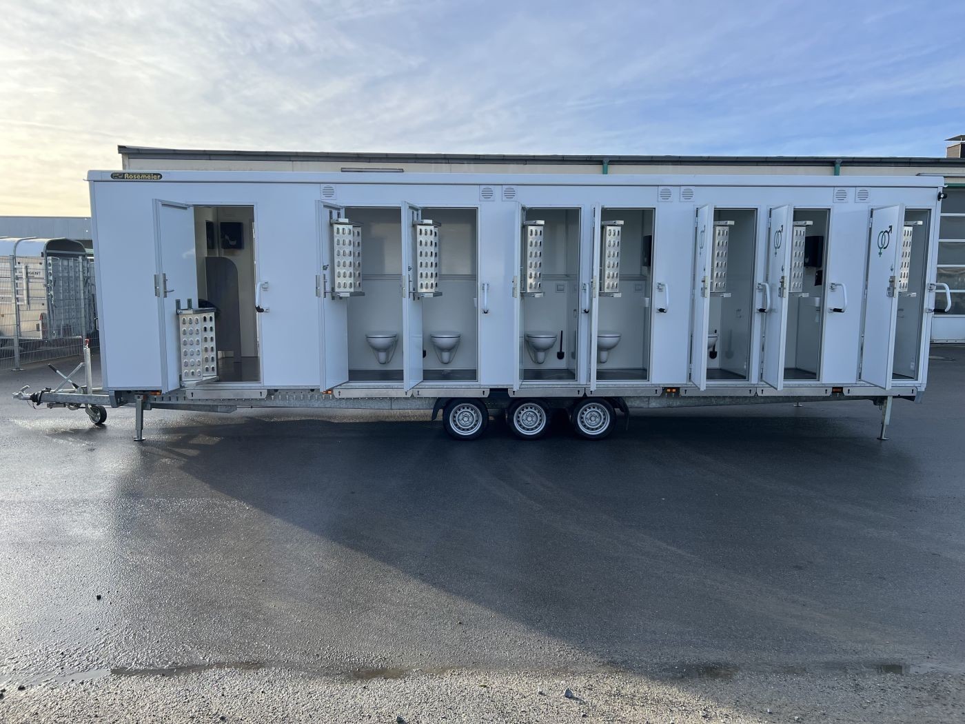 Gebrauchter Festival-Toilettenanhänger mit 14 WC-Kabinen und 7 Urinalen