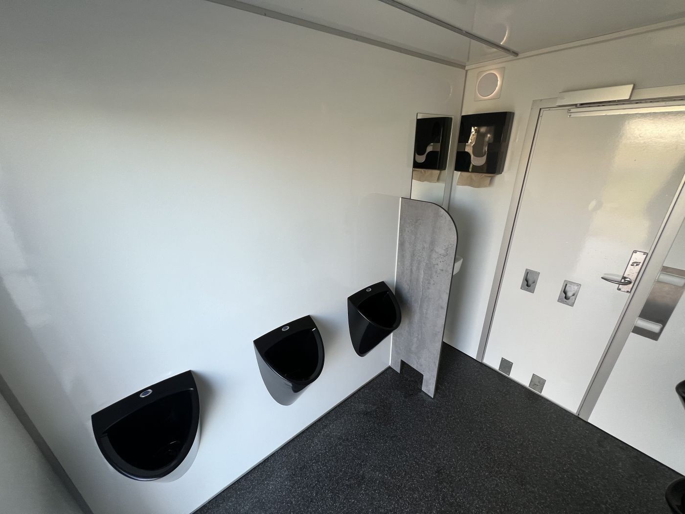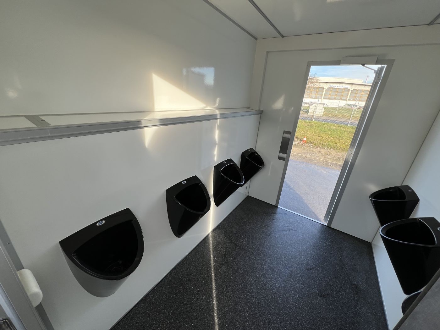 7 wasserlose schwarze Urinale