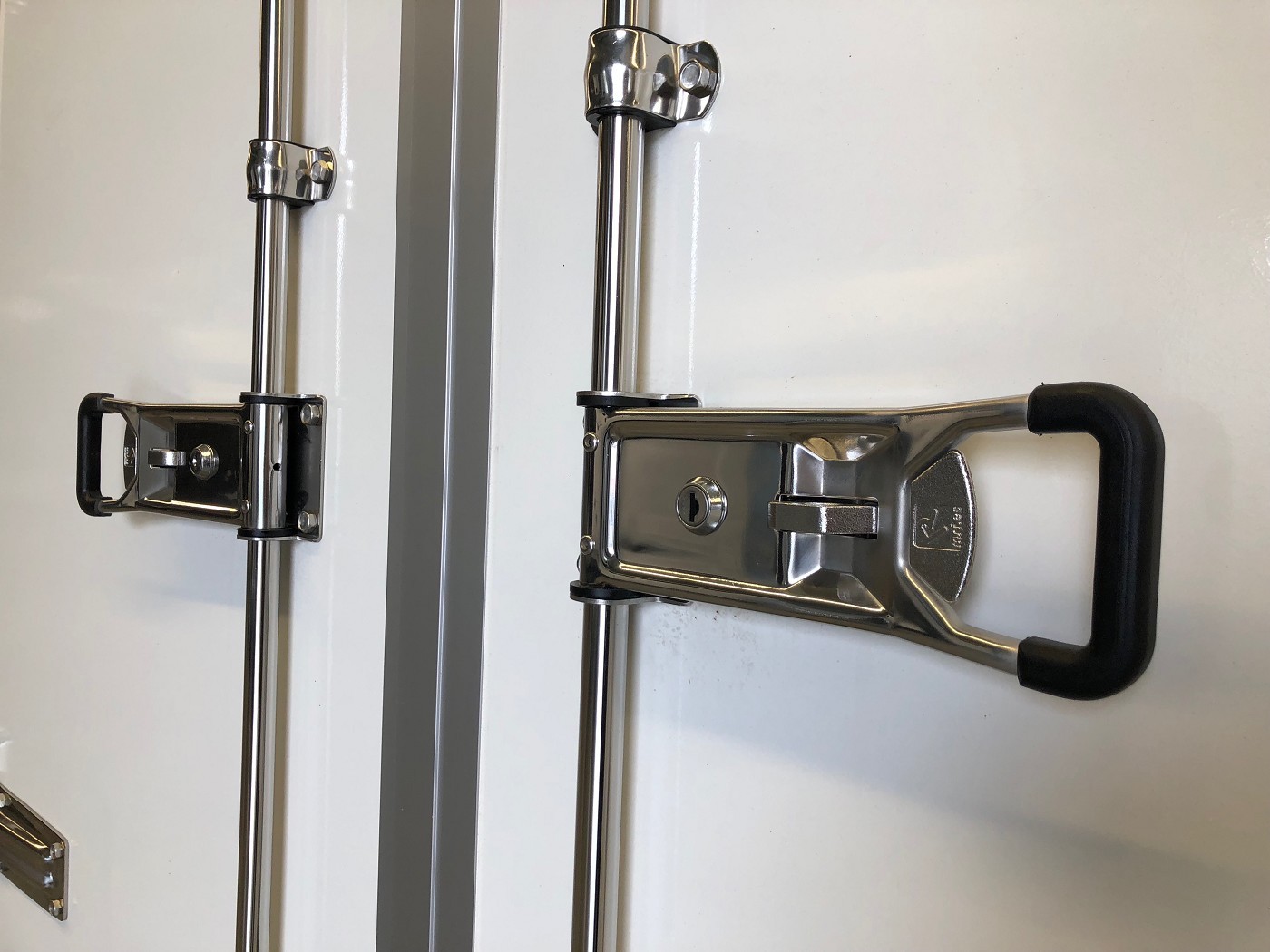 • 2 Drehstangenverschlüsse V2A außenliegend (mit Notentriegelung), abschließbar