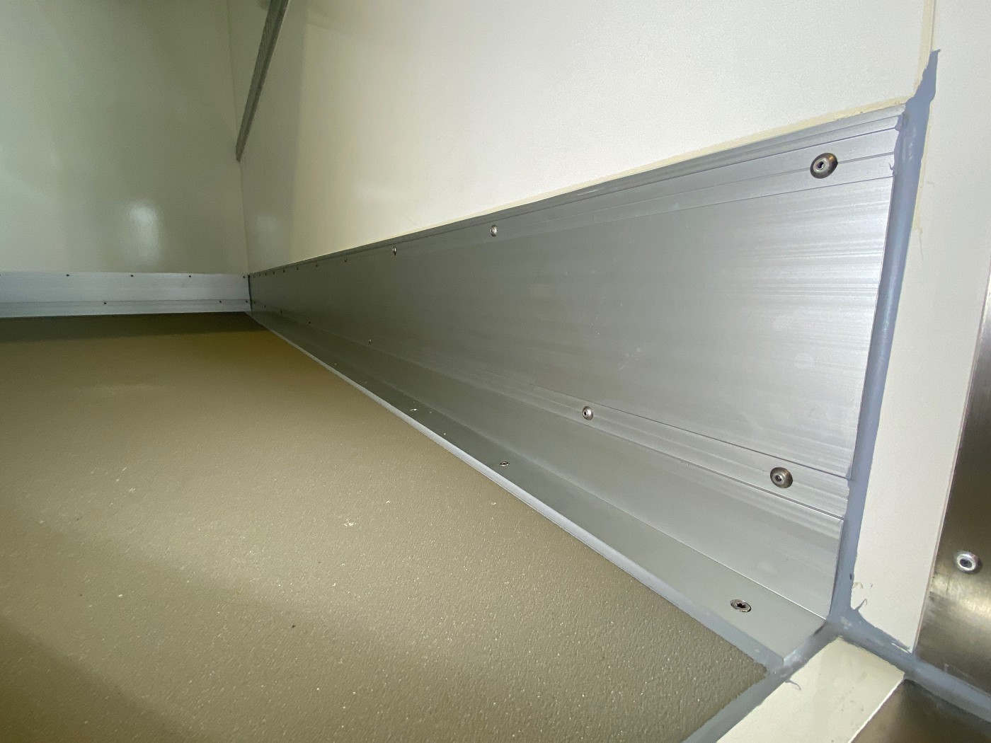 • 4 verschiebbare V2A-Befestigungspunkte im Boden-Wand-Profil rechts/links je 2 Stück