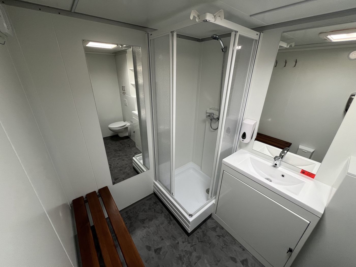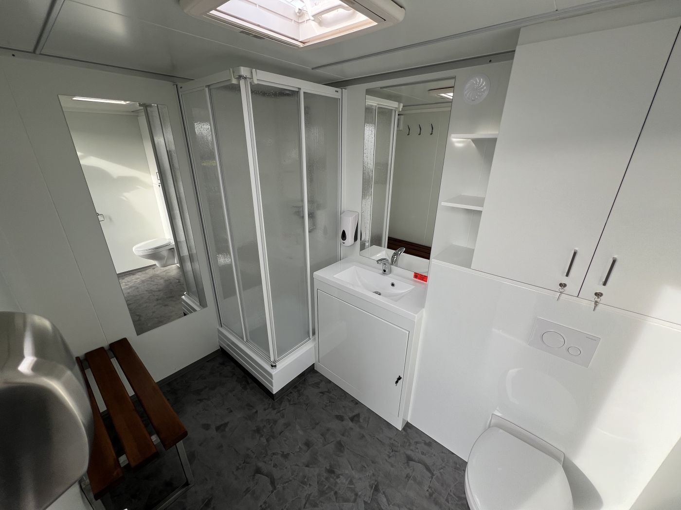 Gebrauchtes vollwertiges mobiles Badezimmer – unser Badanhänger mit Toilette