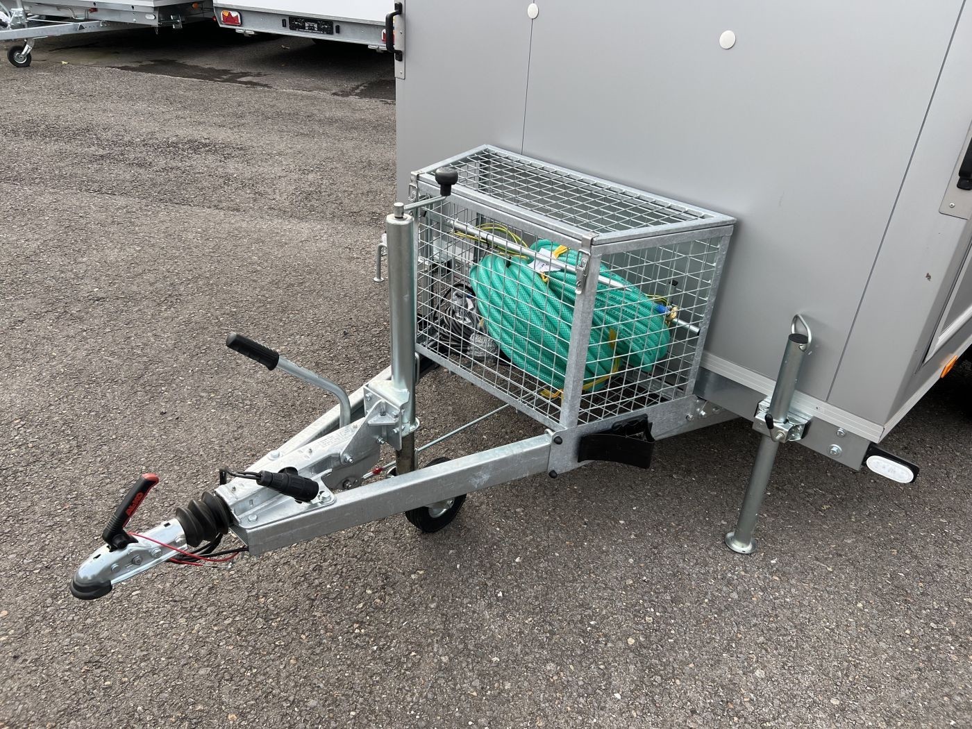 • Schlauchkorb auf der Deichsel zum hygienischen Transport benutzter Schläuche