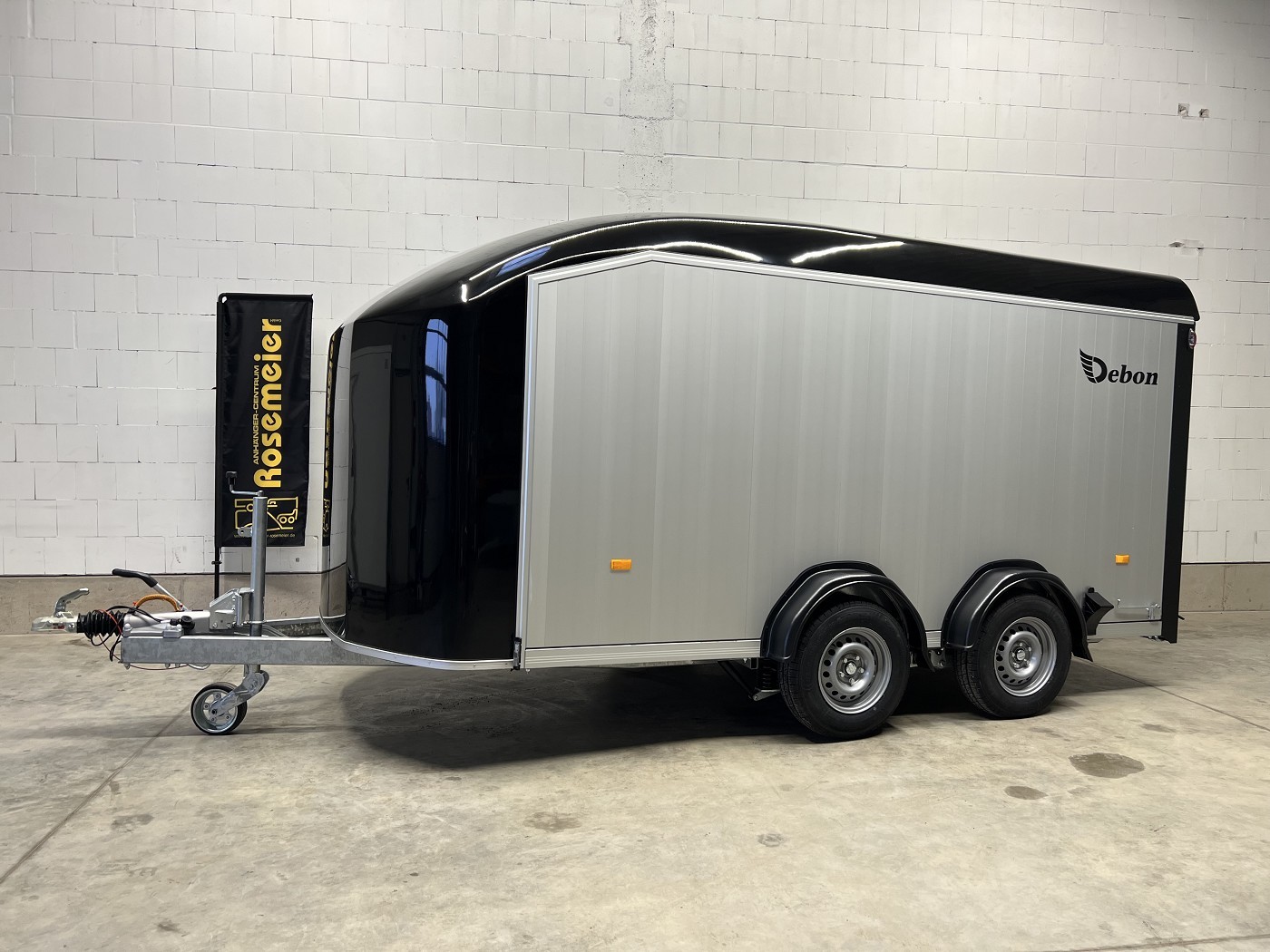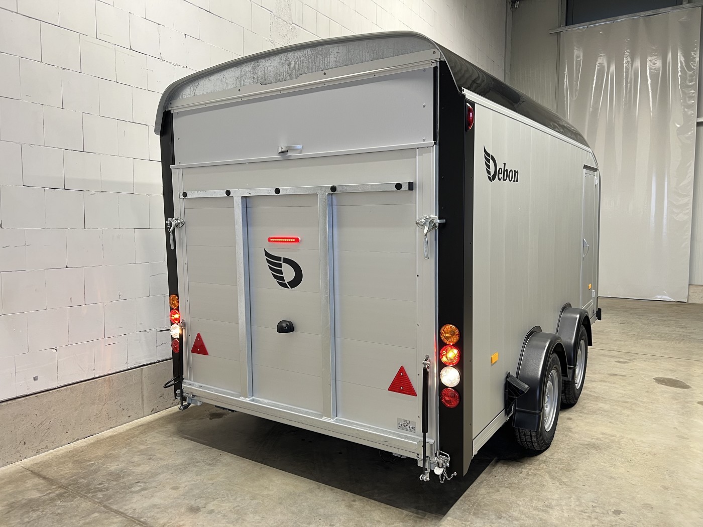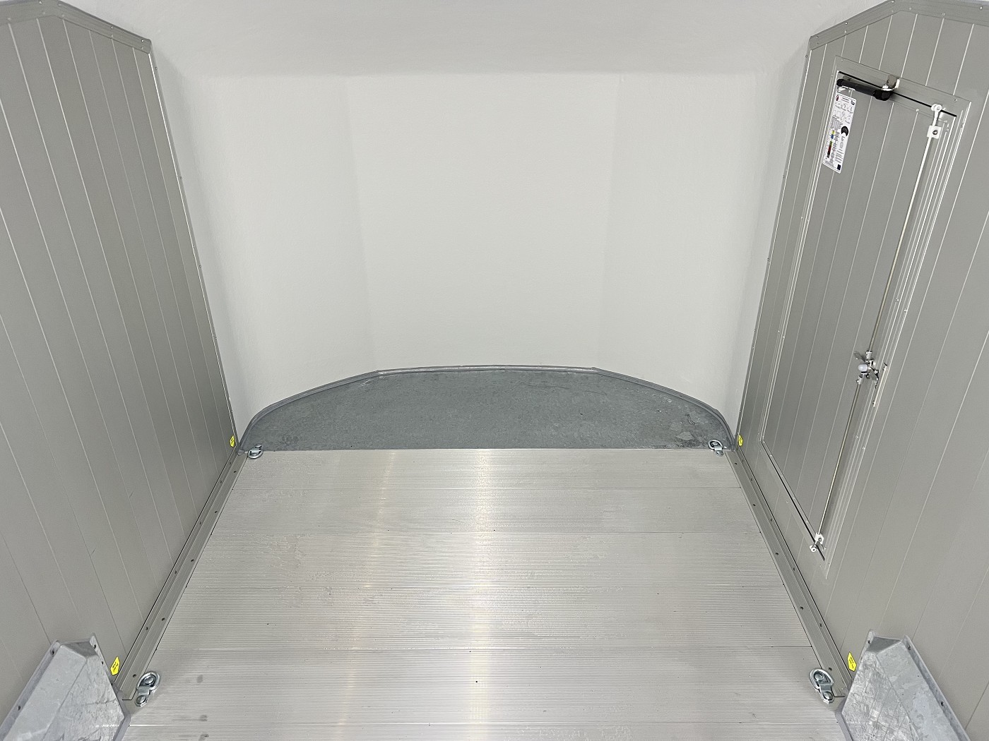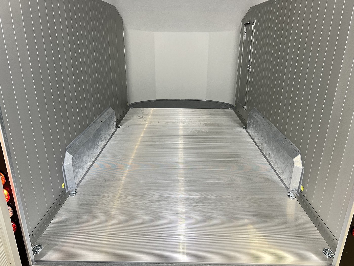 Alu-Kofferanhänger mit seitlicher Einstiegstür und Tür-Rampen-Kombination