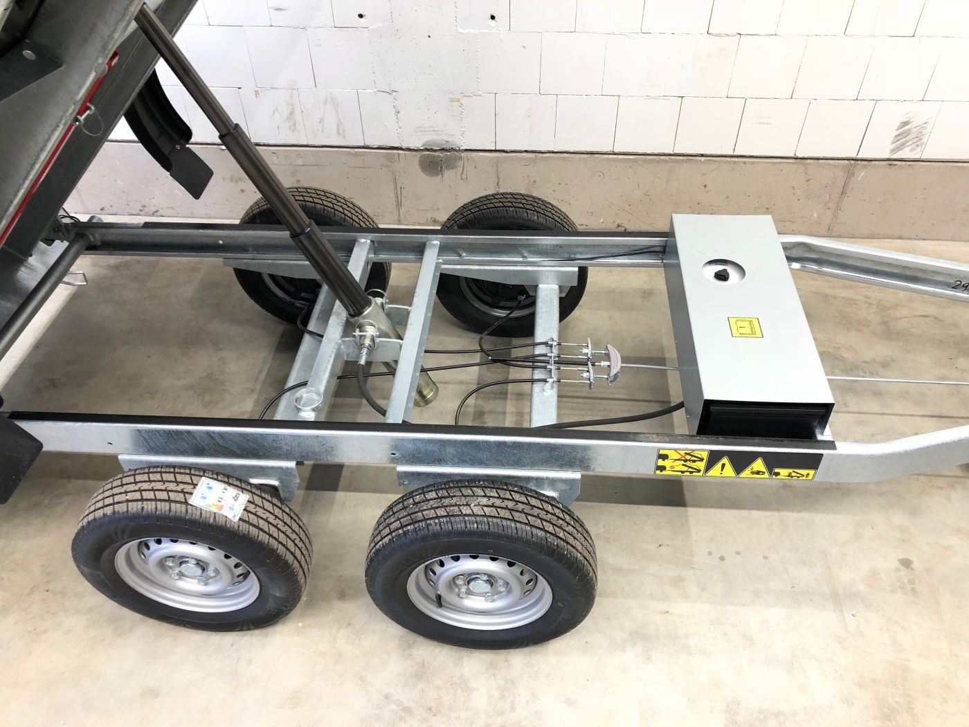 • Elektrohydraulische Pumpe inkl. Batterie zum Abkippen auf Knopfdruck