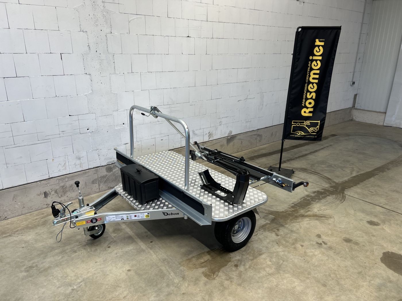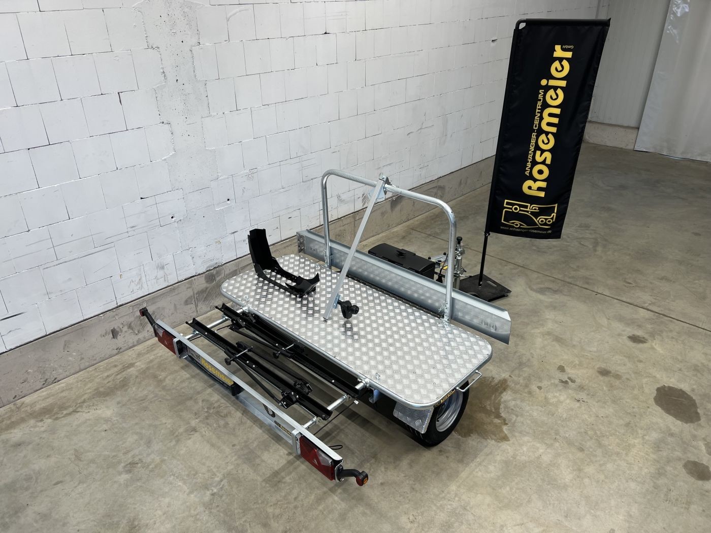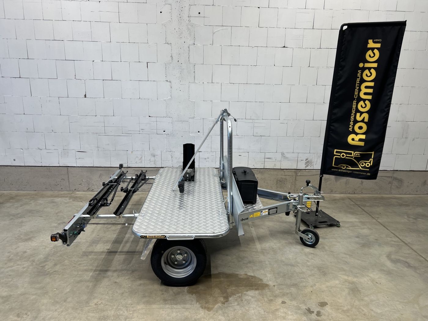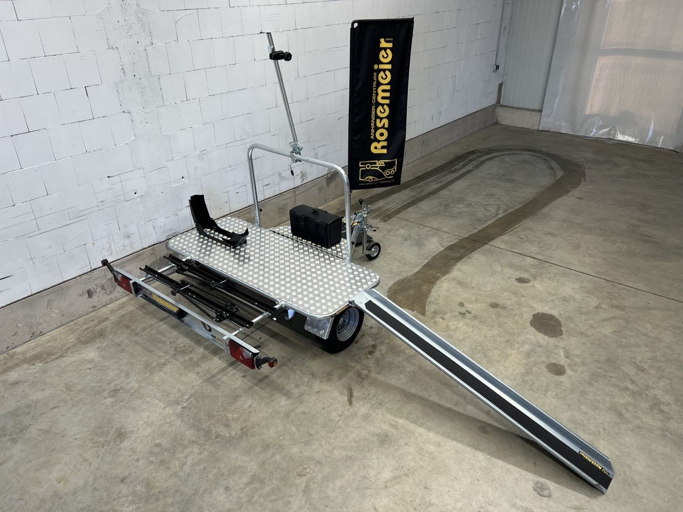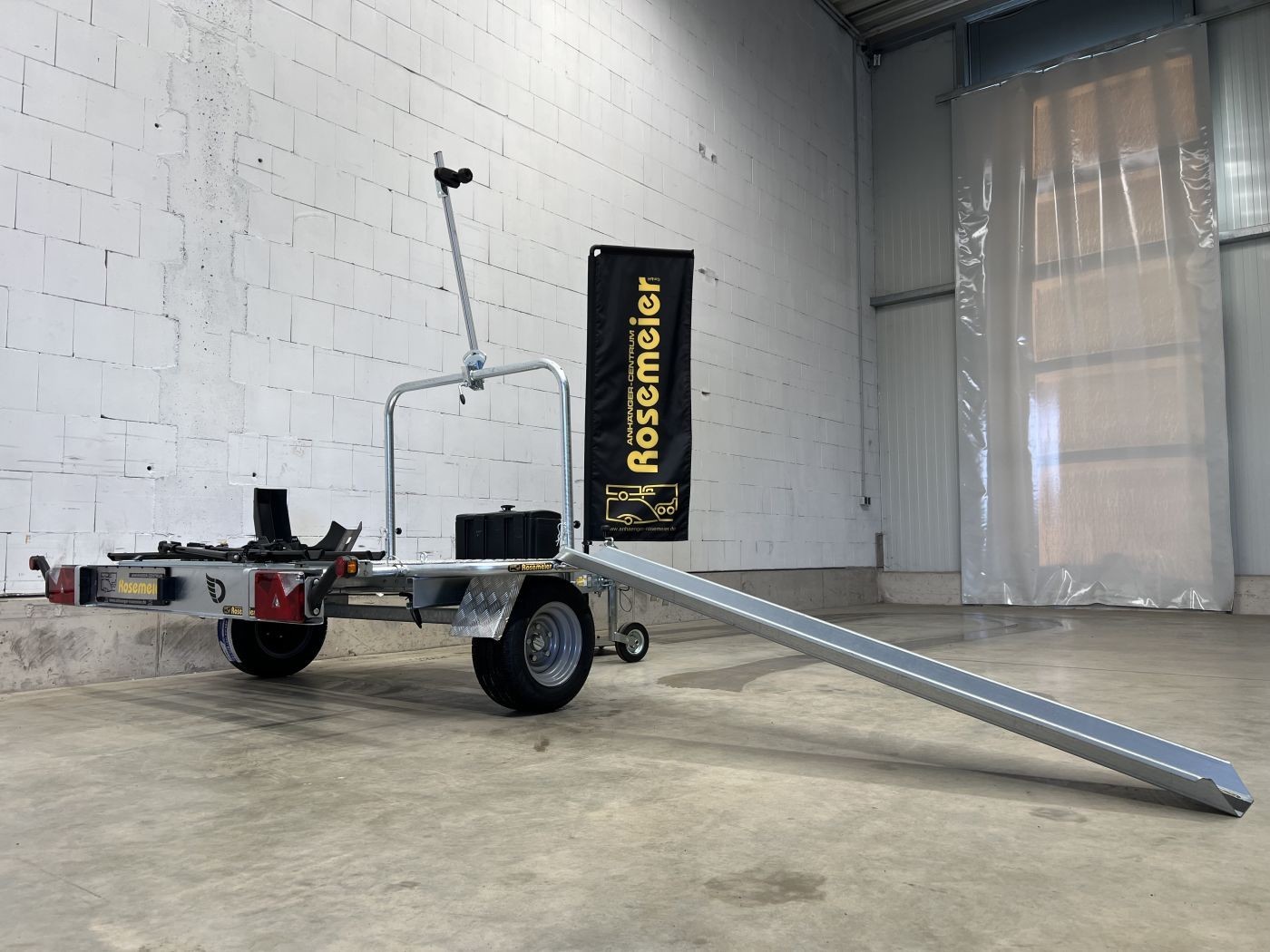 Entdecken Sie den speziell für Wohnmobilfahrer entwickelten queren Motorradanhänger.