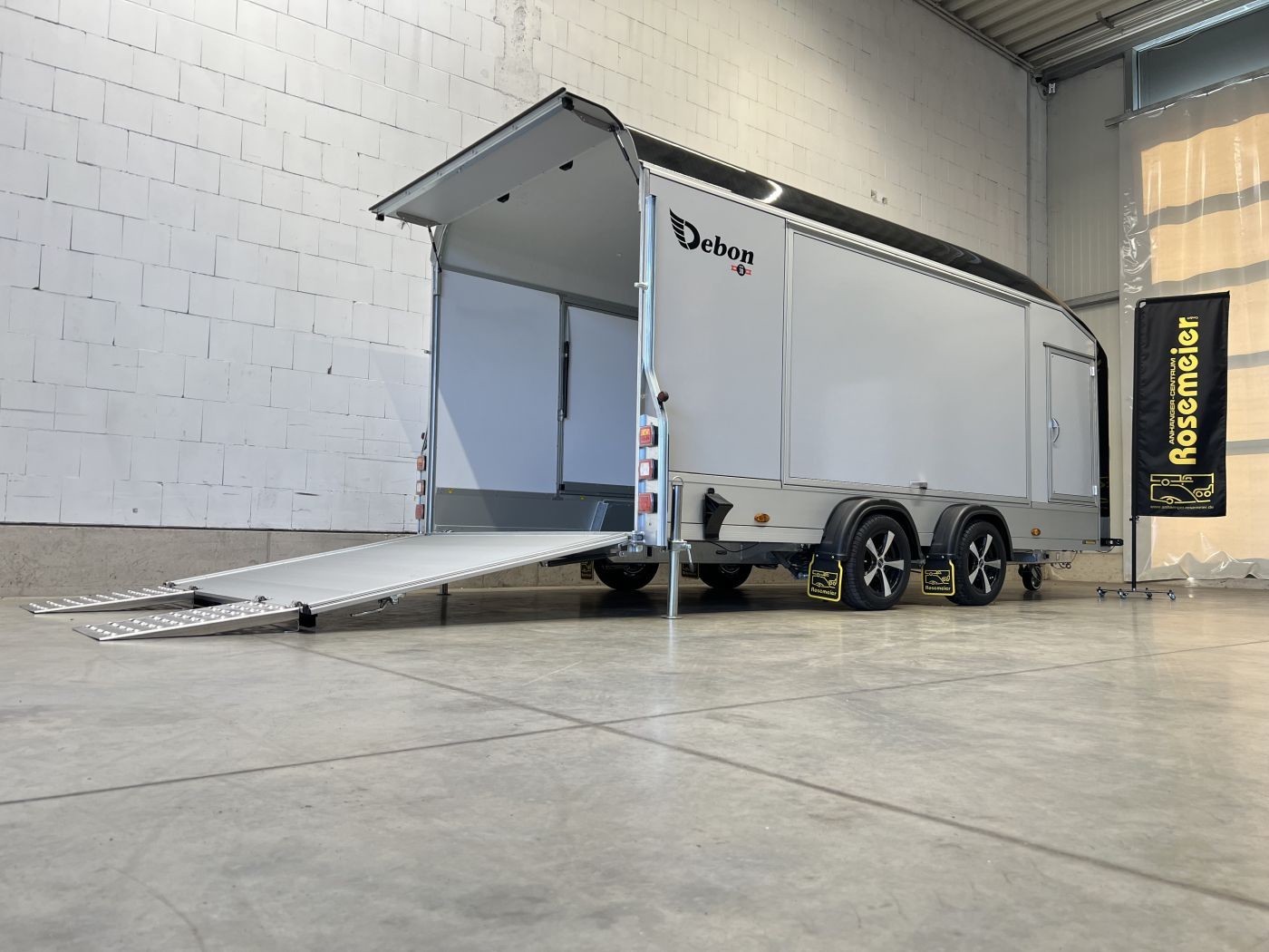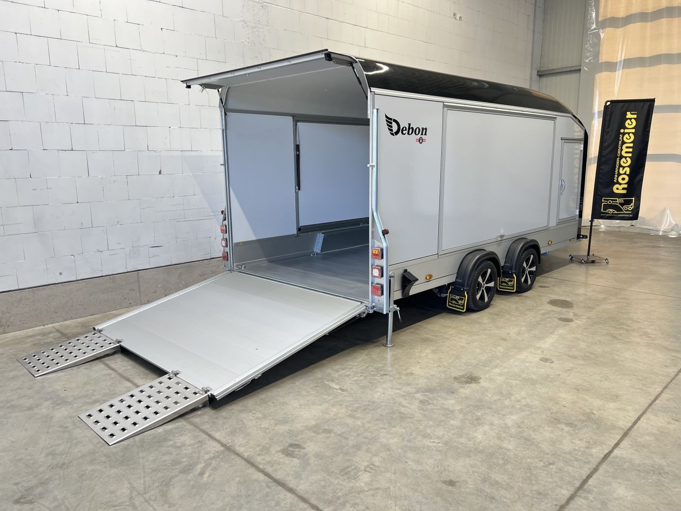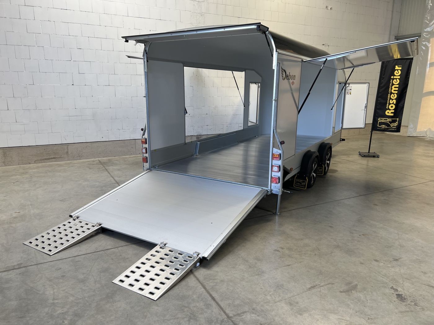 Geschlossener Autotransporter mit 2 Seitenklappen und Alu-Felgen