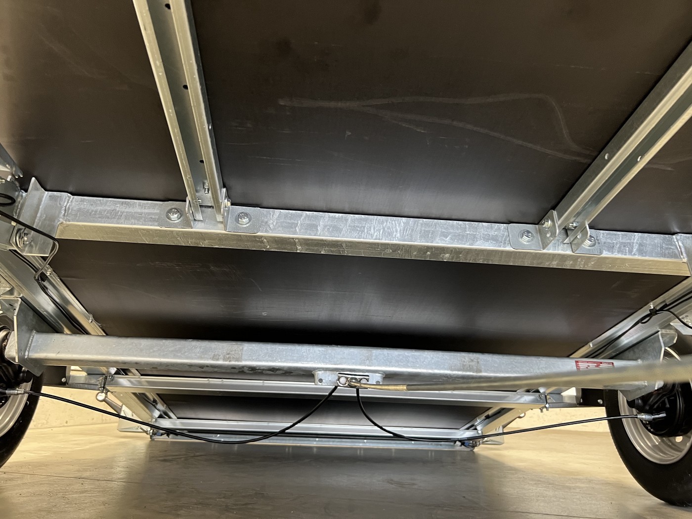 Der Anhänger ist um einen Kurbelheber erweiterbar, dieser ermöglicht ein Kippen der Ladefläche durch manuelles Kurbeln und gewährleistet das die Ladefläche bei Beladung im gekippten Zustand bleibt.
