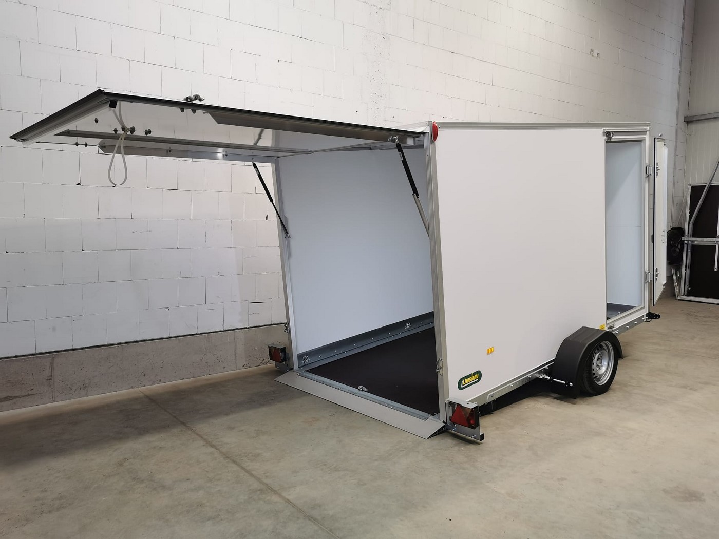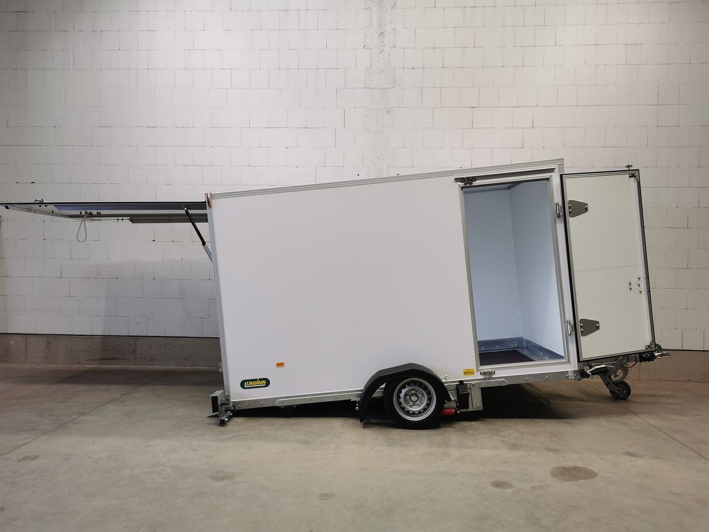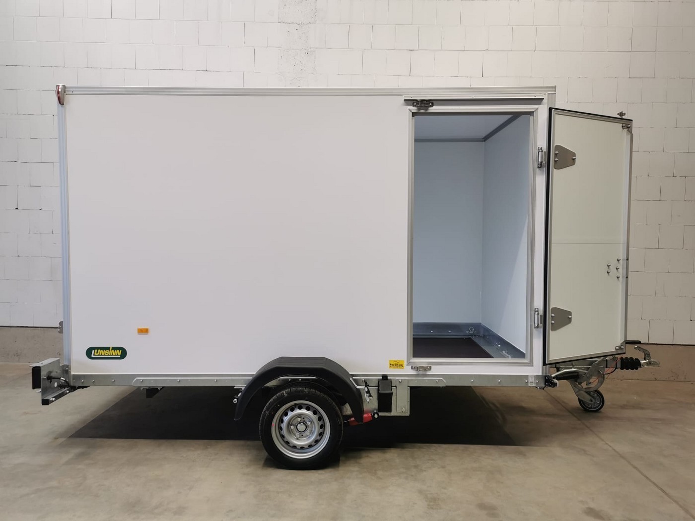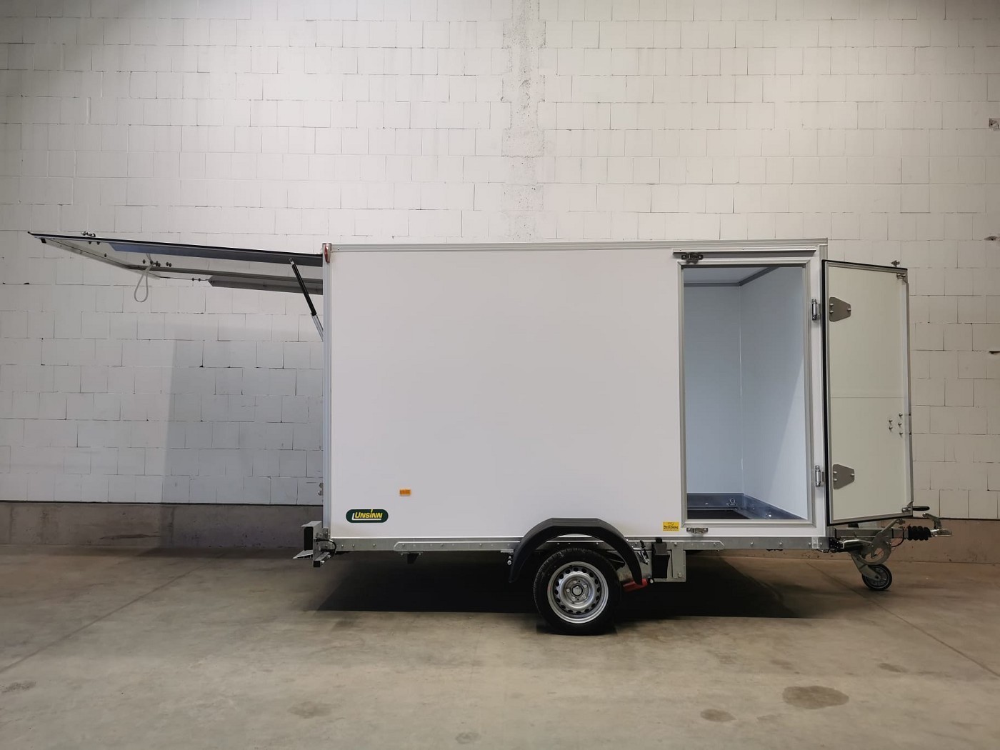 Absenkbarer Kofferanhänger mit Seitentür von Unsinn Fahrzeugtechnik