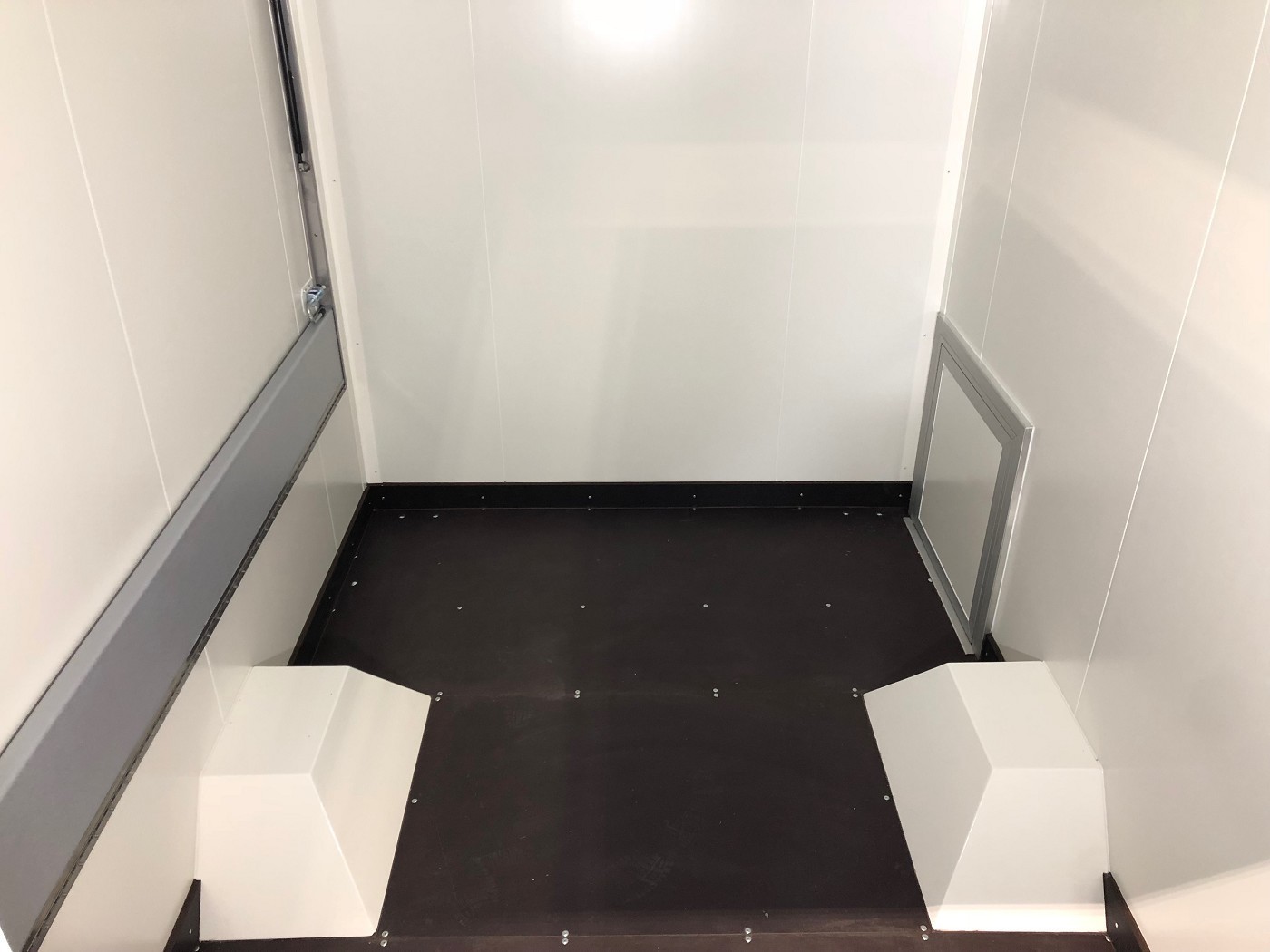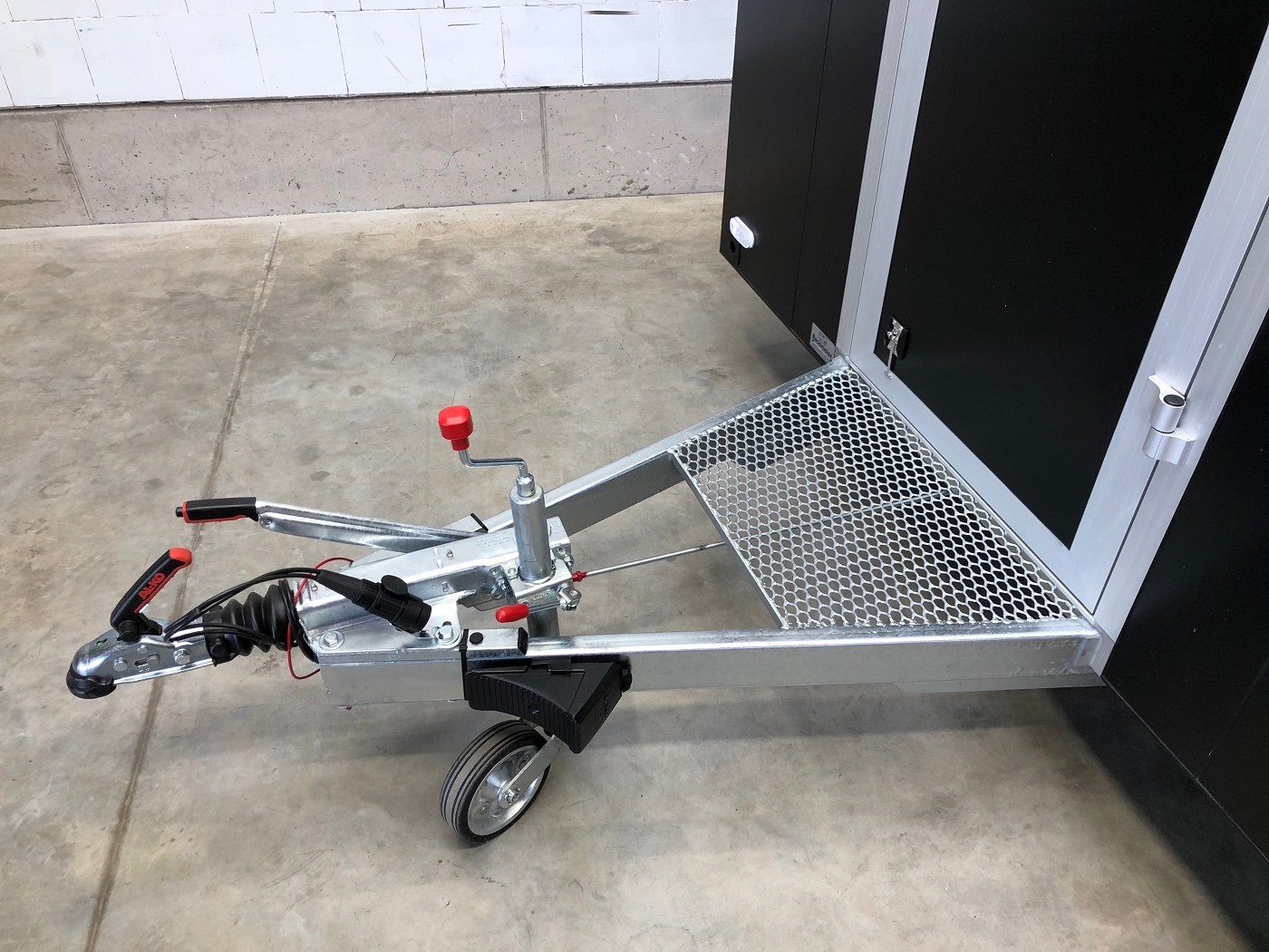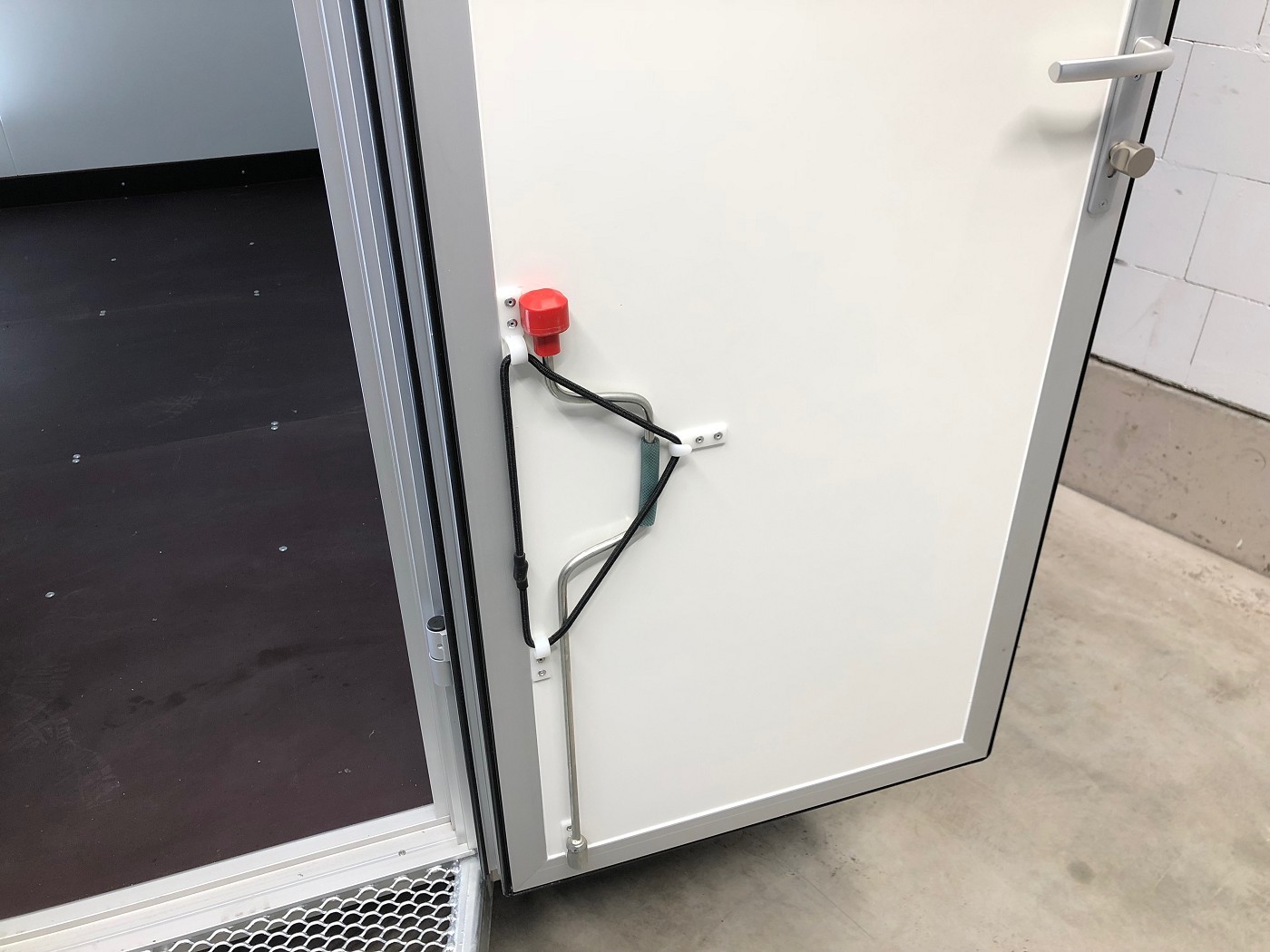 Abschließbare Einstiegstür vorne mit Einstiegspodest auf der Deichsel