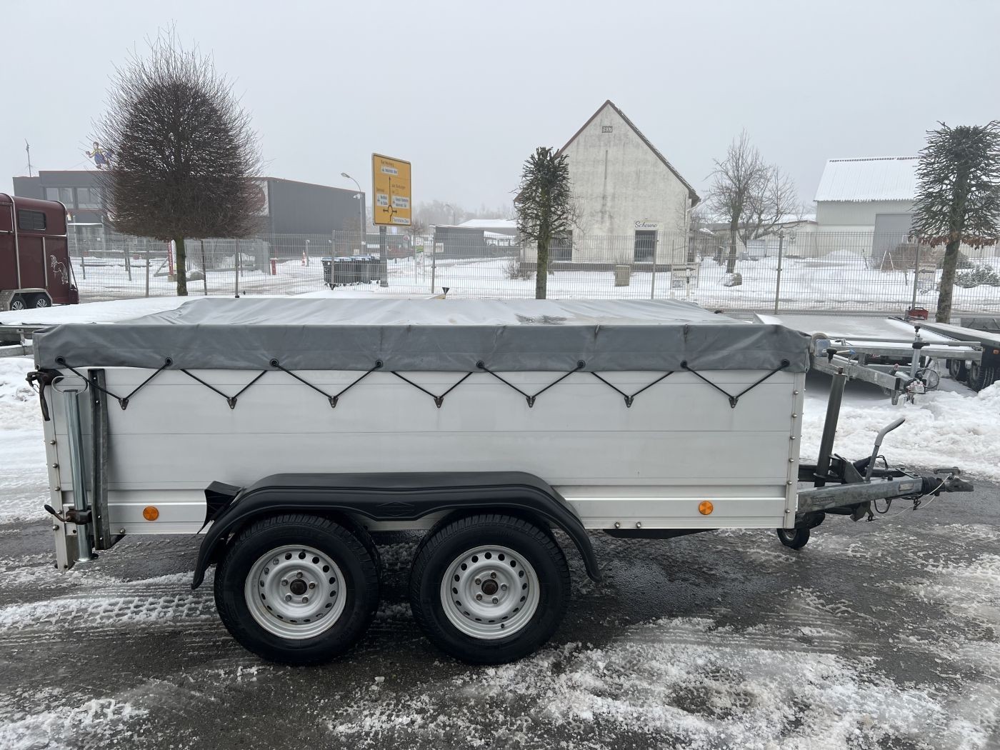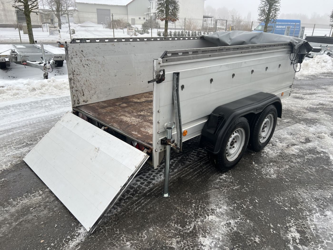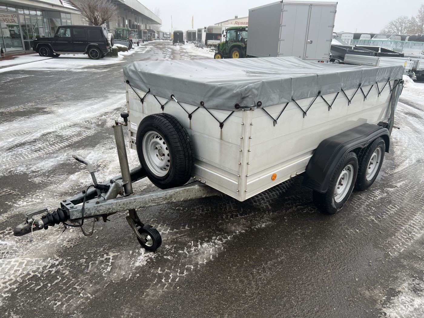 Gebrauchter Kastenanhänger mit Bordwanderhöhung, Flachplane und Reserverad