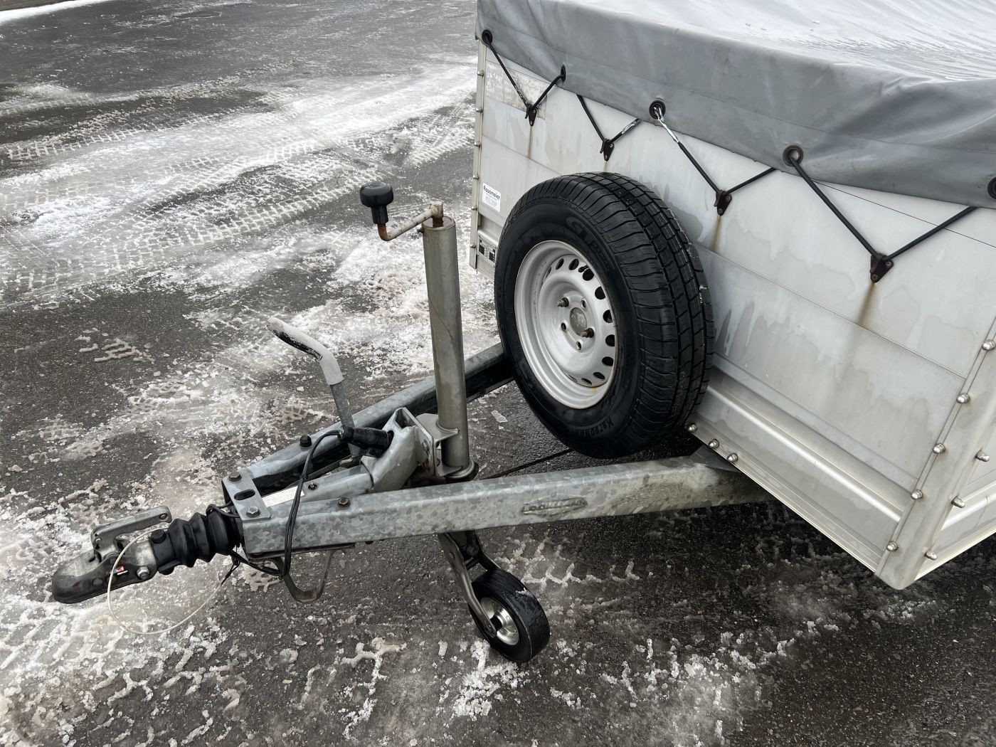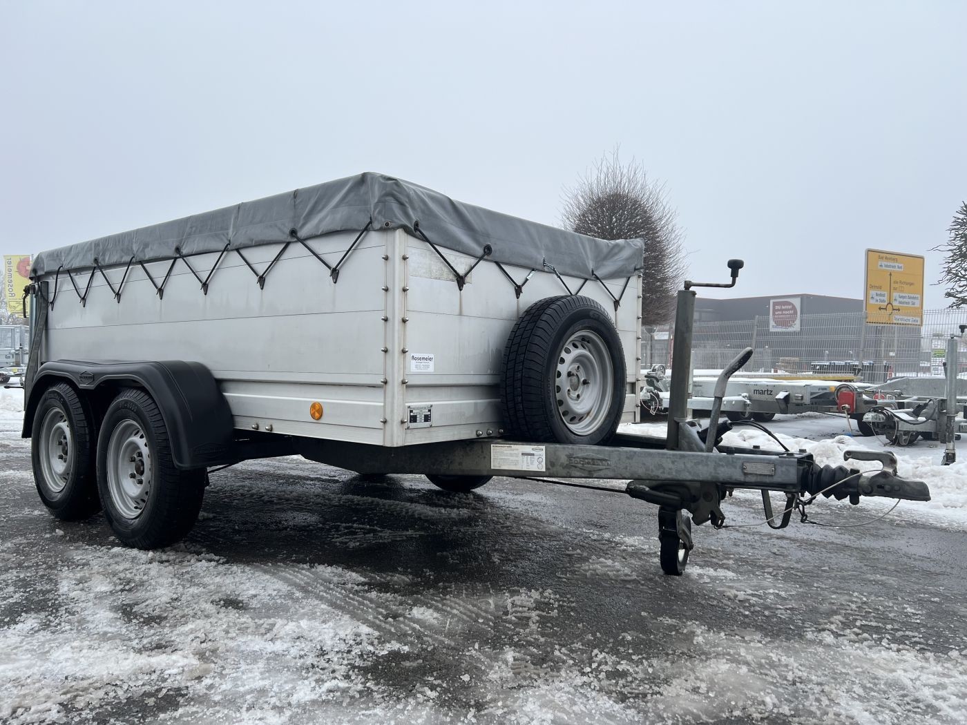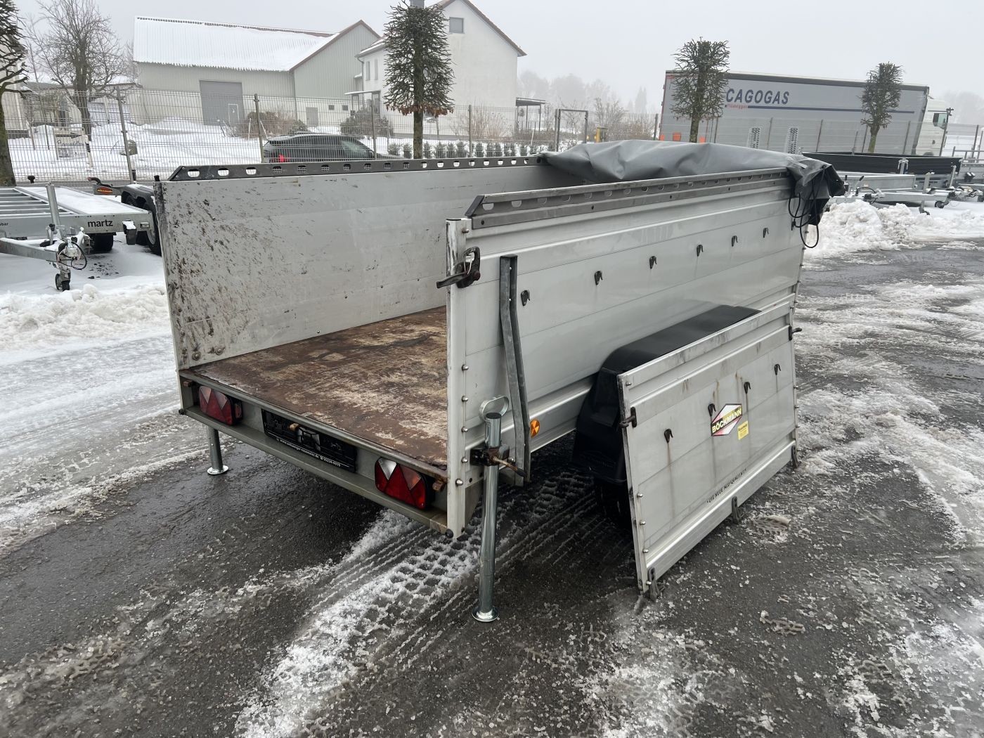 Gebrauchter Kastenanhänger mit Bordwanderhöhung, Flachplane und Reserverad