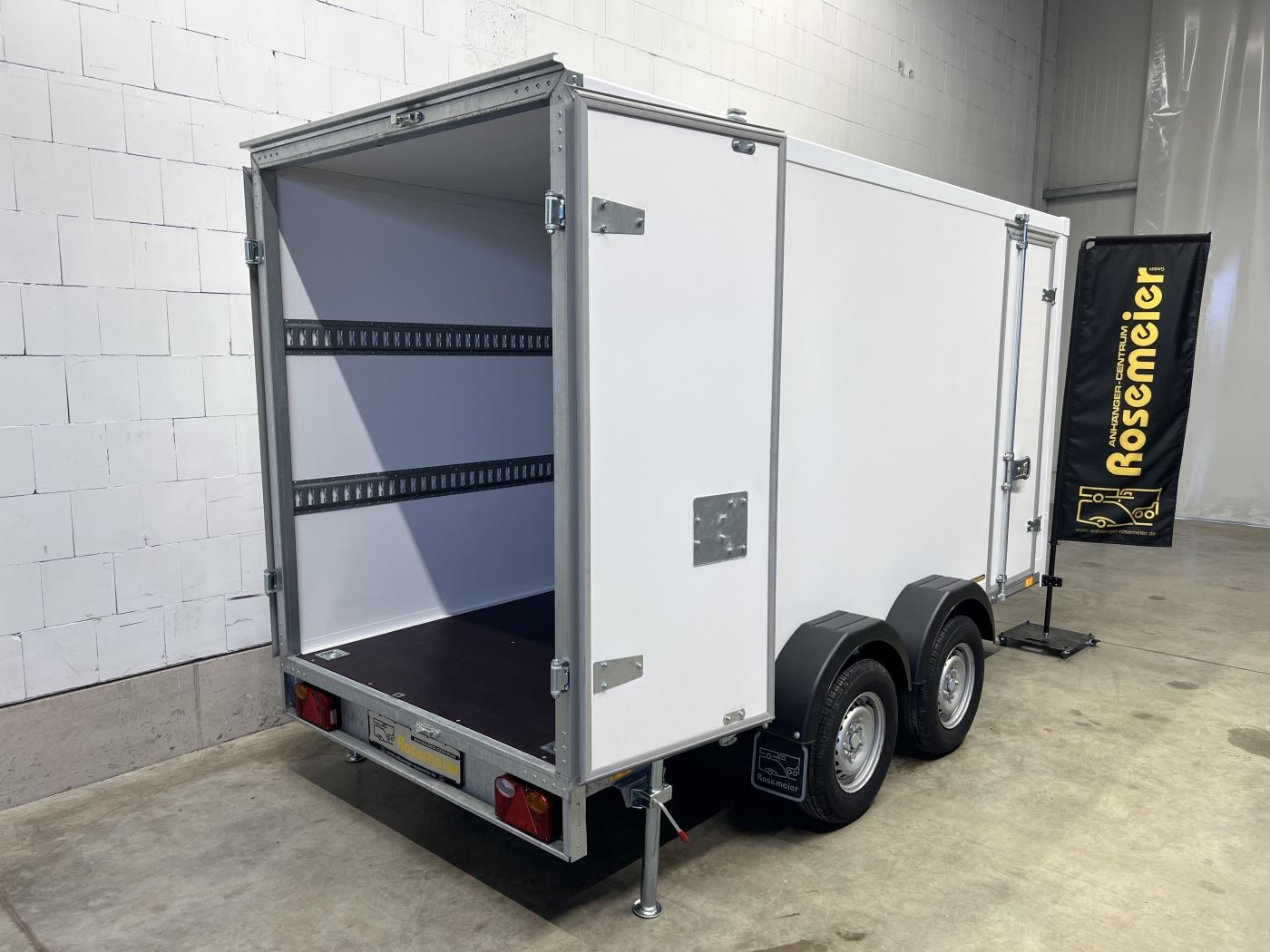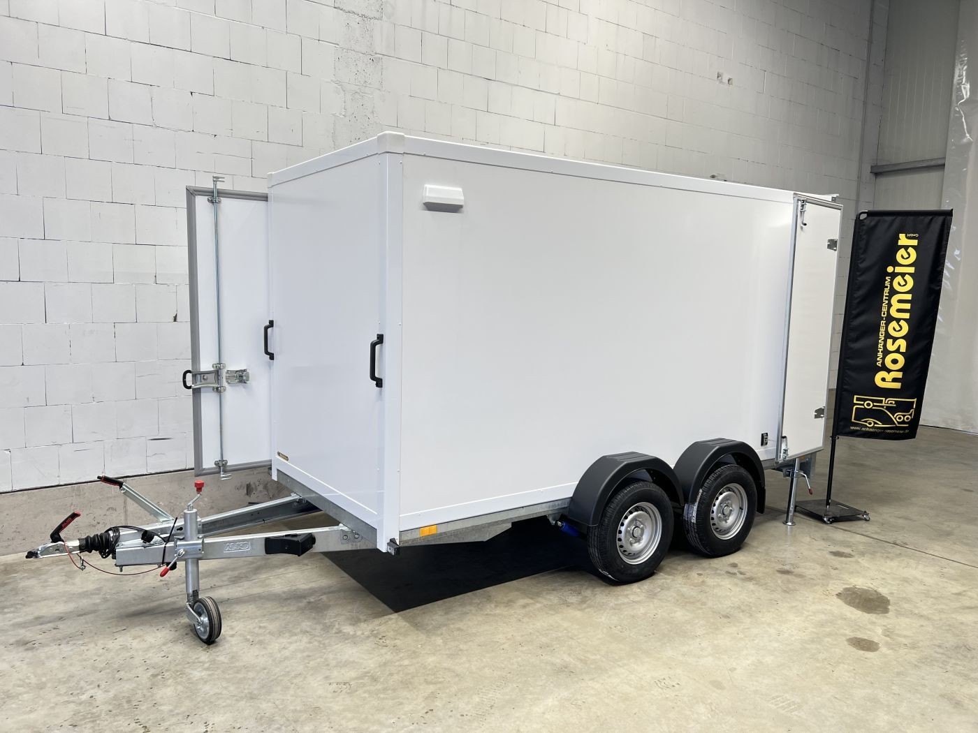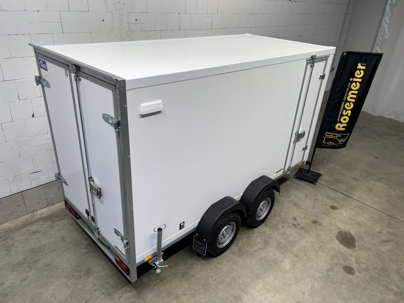 Kofferanhänger als 2-Achser mit Doppelflügeltür und Seitentür
