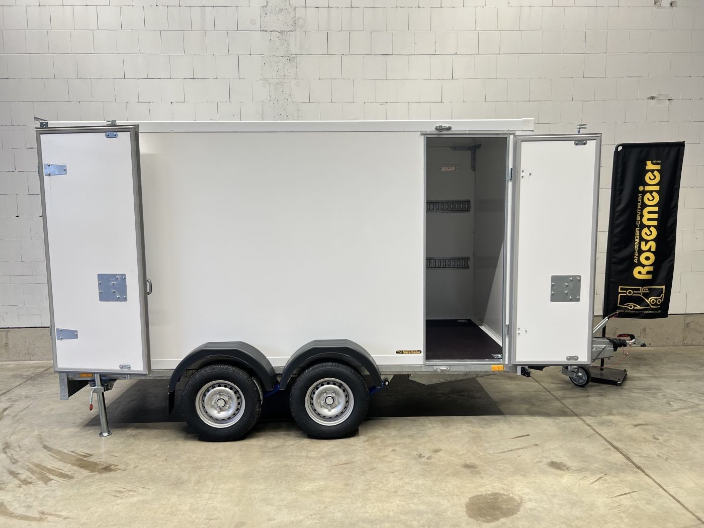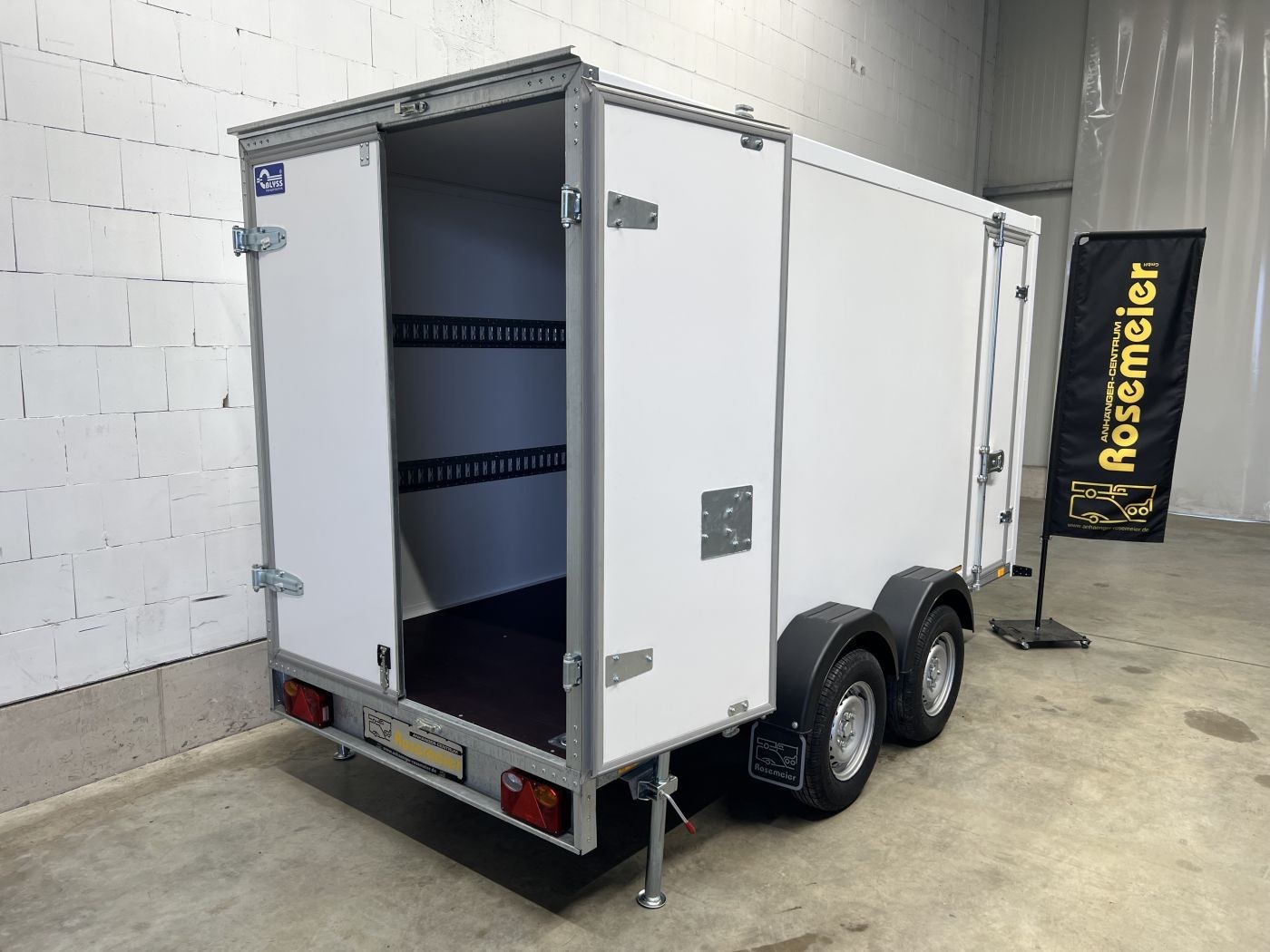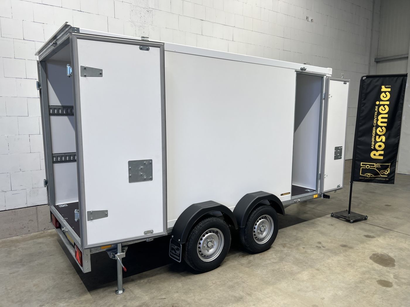 Kofferanhänger als 2-Achser mit Doppelflügeltür und Seitentür