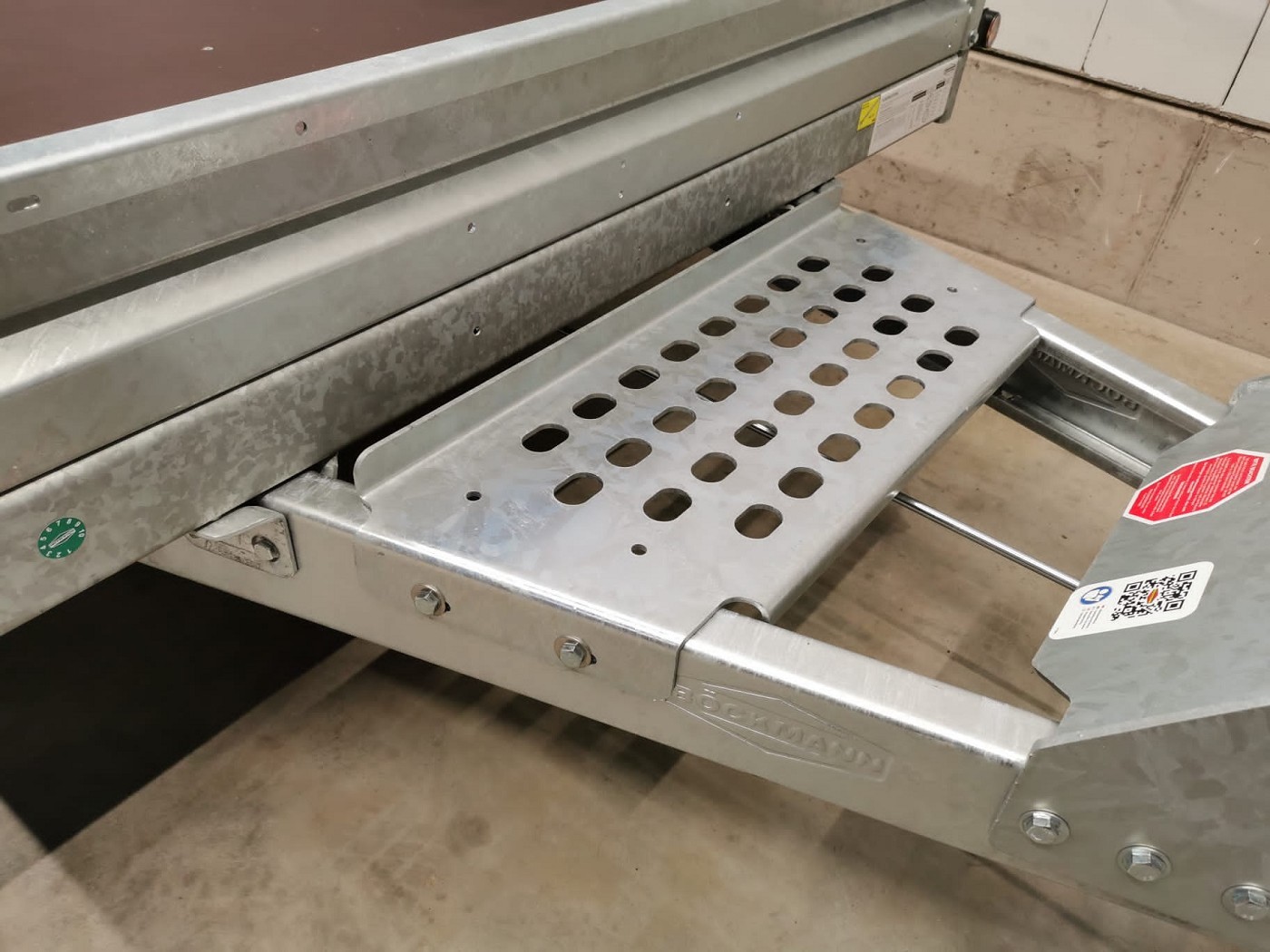• Robuster Siebdruckboden mit Alu-Riffelblech belegt