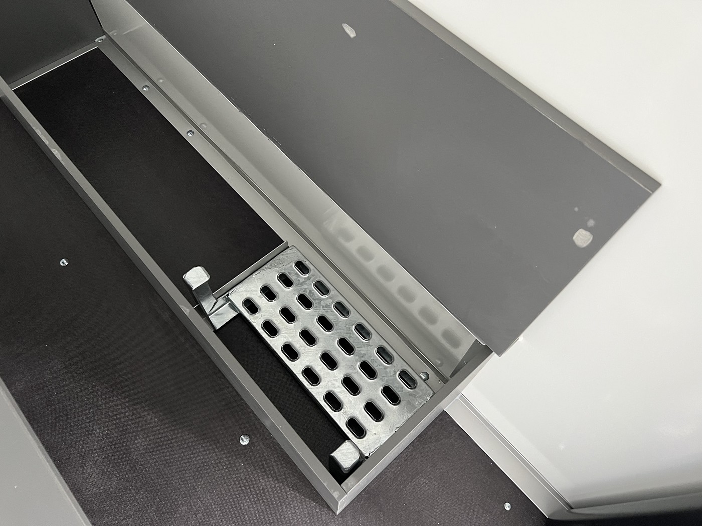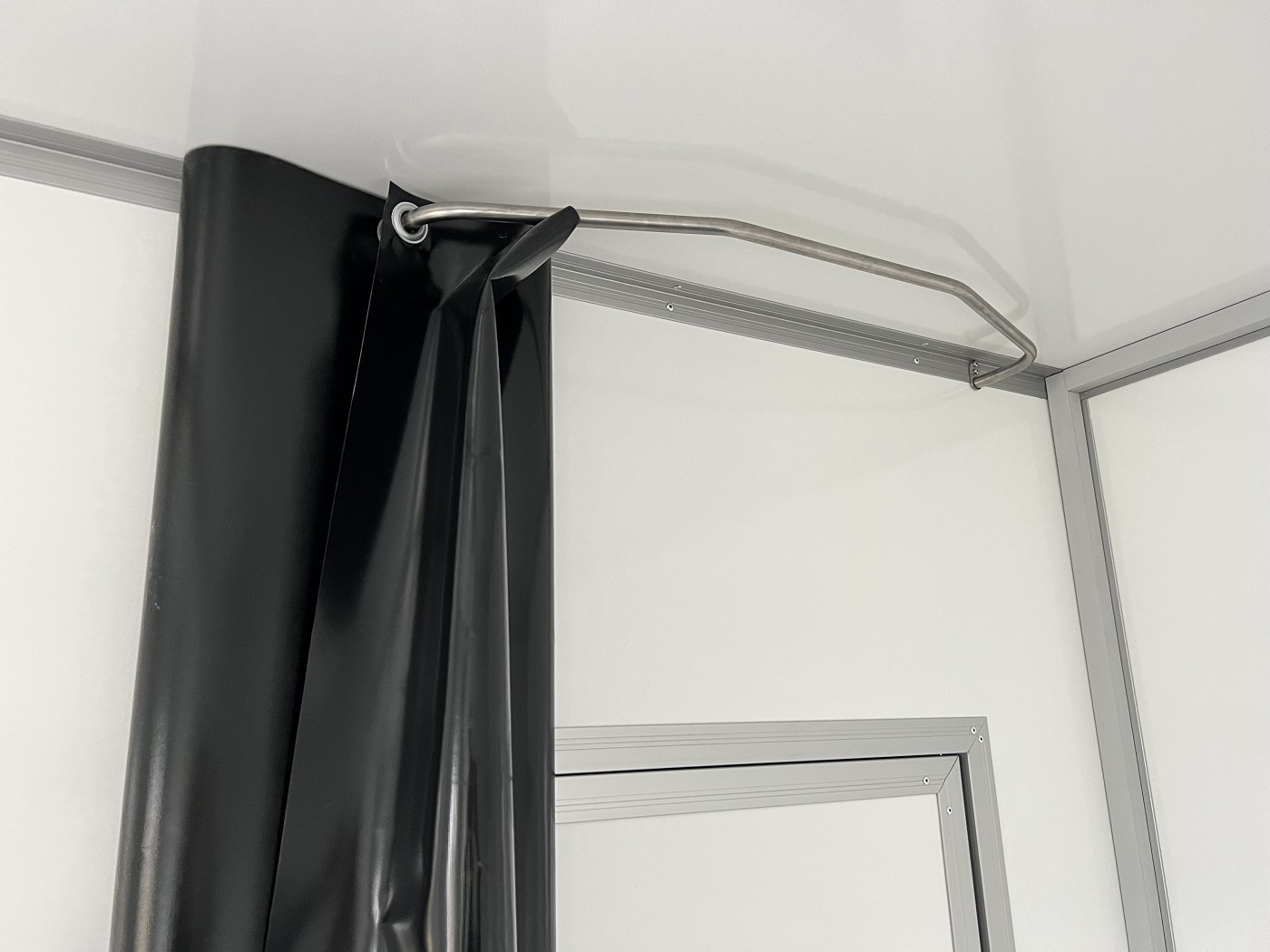 • 1 Eingangstür hinten, abschließbar – Maß 600 x 1800 mm inkl. Windvorhang