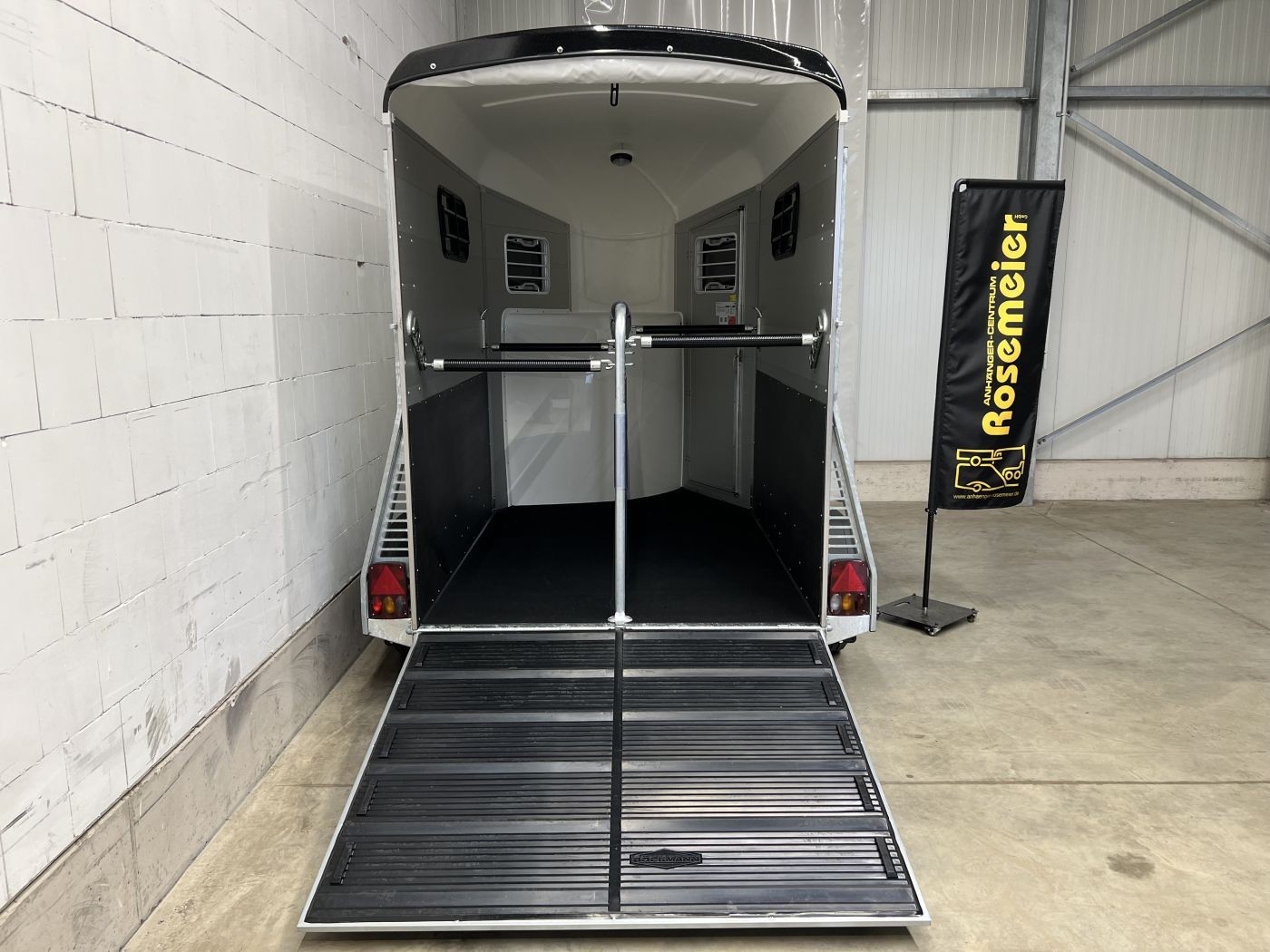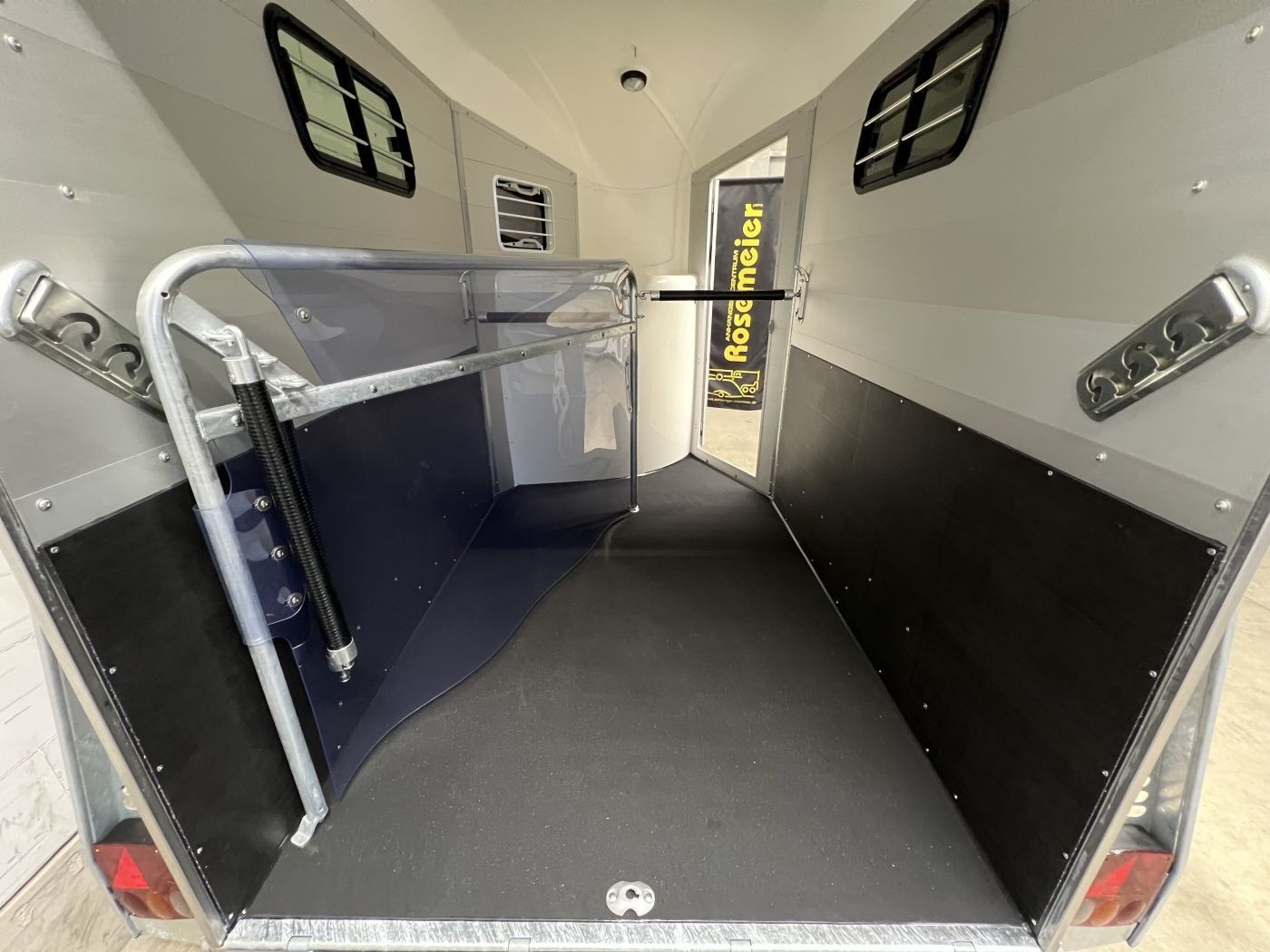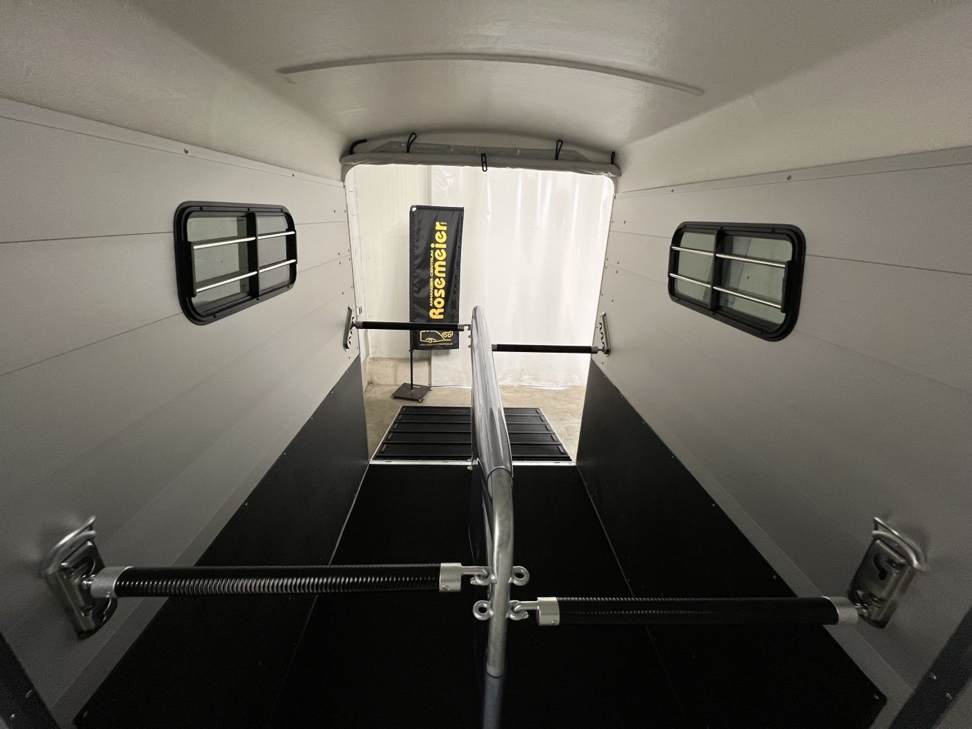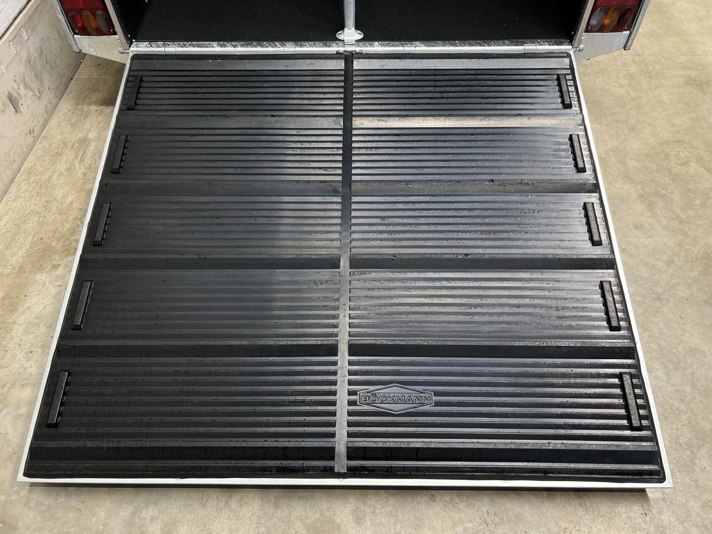 Heckklappengummi mit integrierten Trittleisten und Seitenstops gewährleisten einen sicheren Ein- und Ausstieg Ihrer Pferde