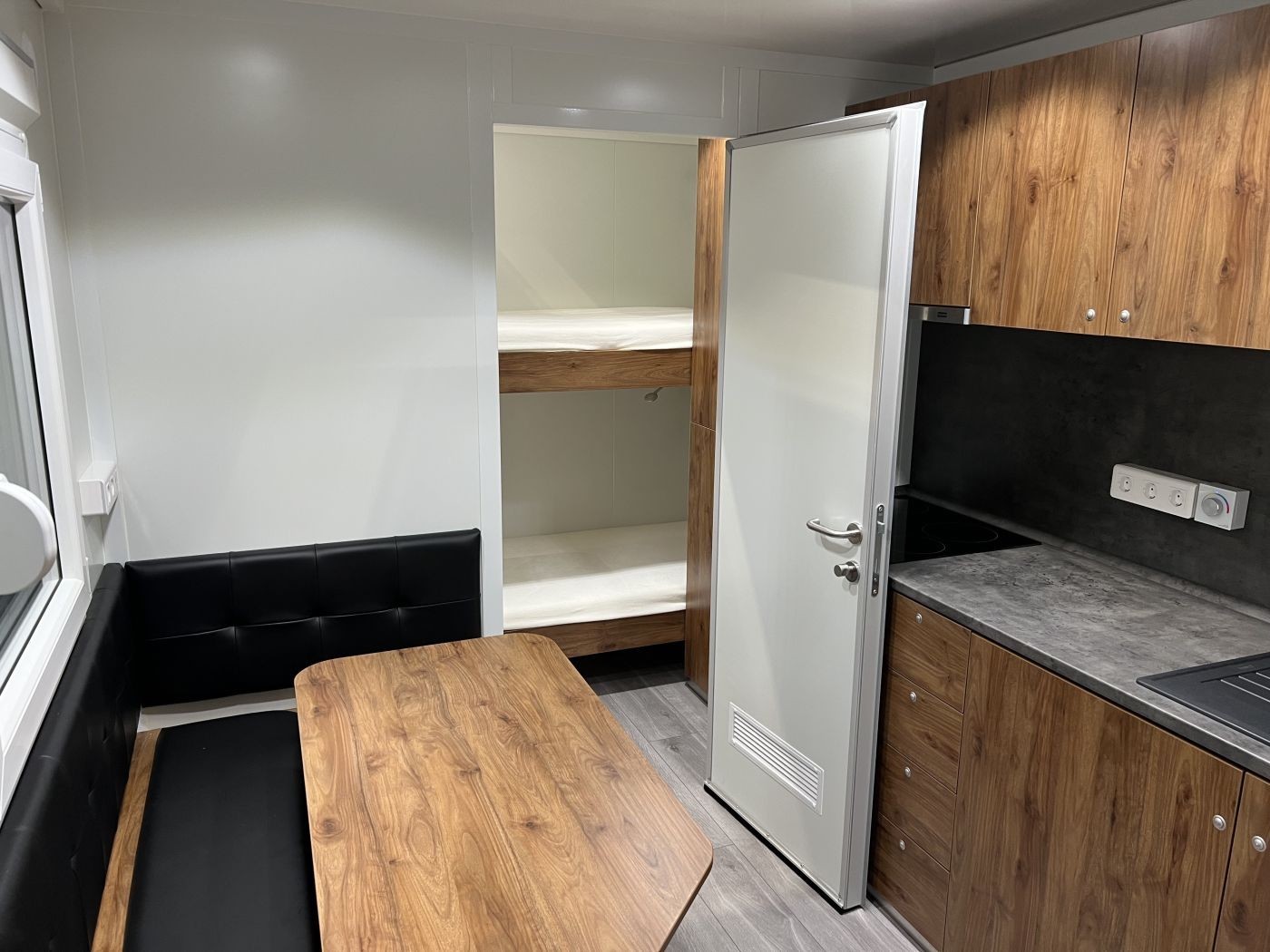 Mannschaftswagen mit kompletter Wohnausstattung – 2 Schlafzimmer (für bis zu 4 Personen), Küche und Bad mit Dusche & WC