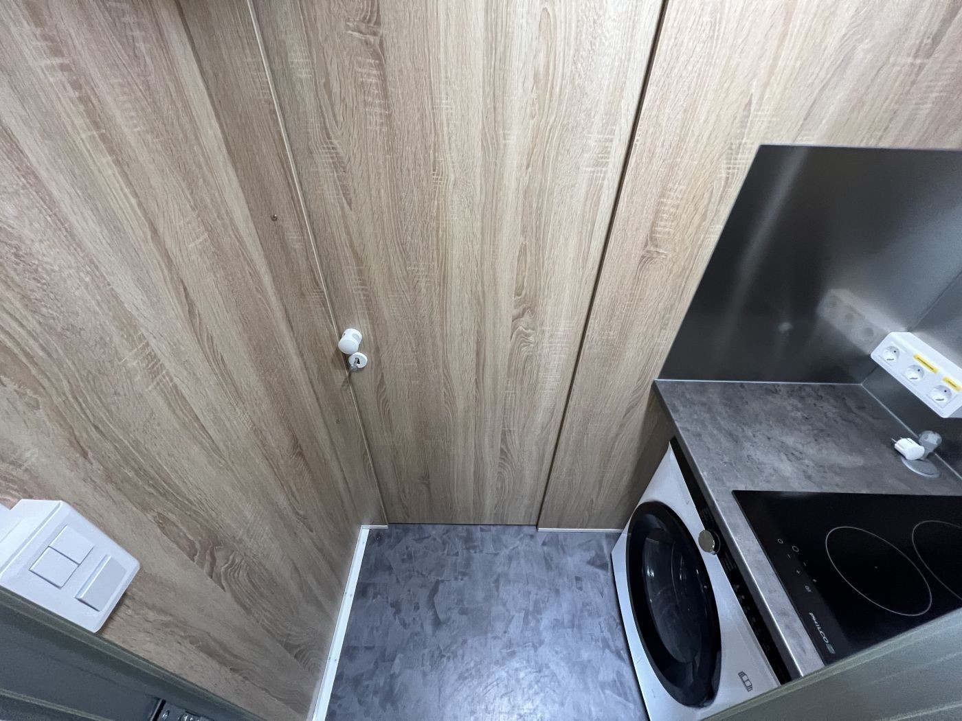 Badezimmer und Vorraum zum Badezimmer mit Schiebetür getrennt