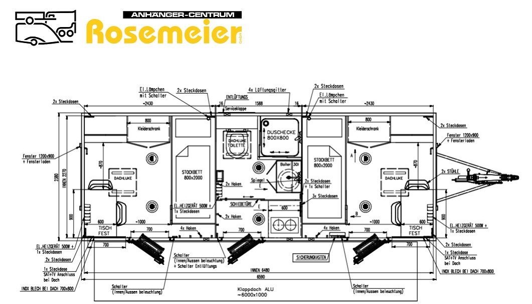 Mannschaftswagen mit 2 separaten Schlafräumen und Badezimmer mit Vorraum