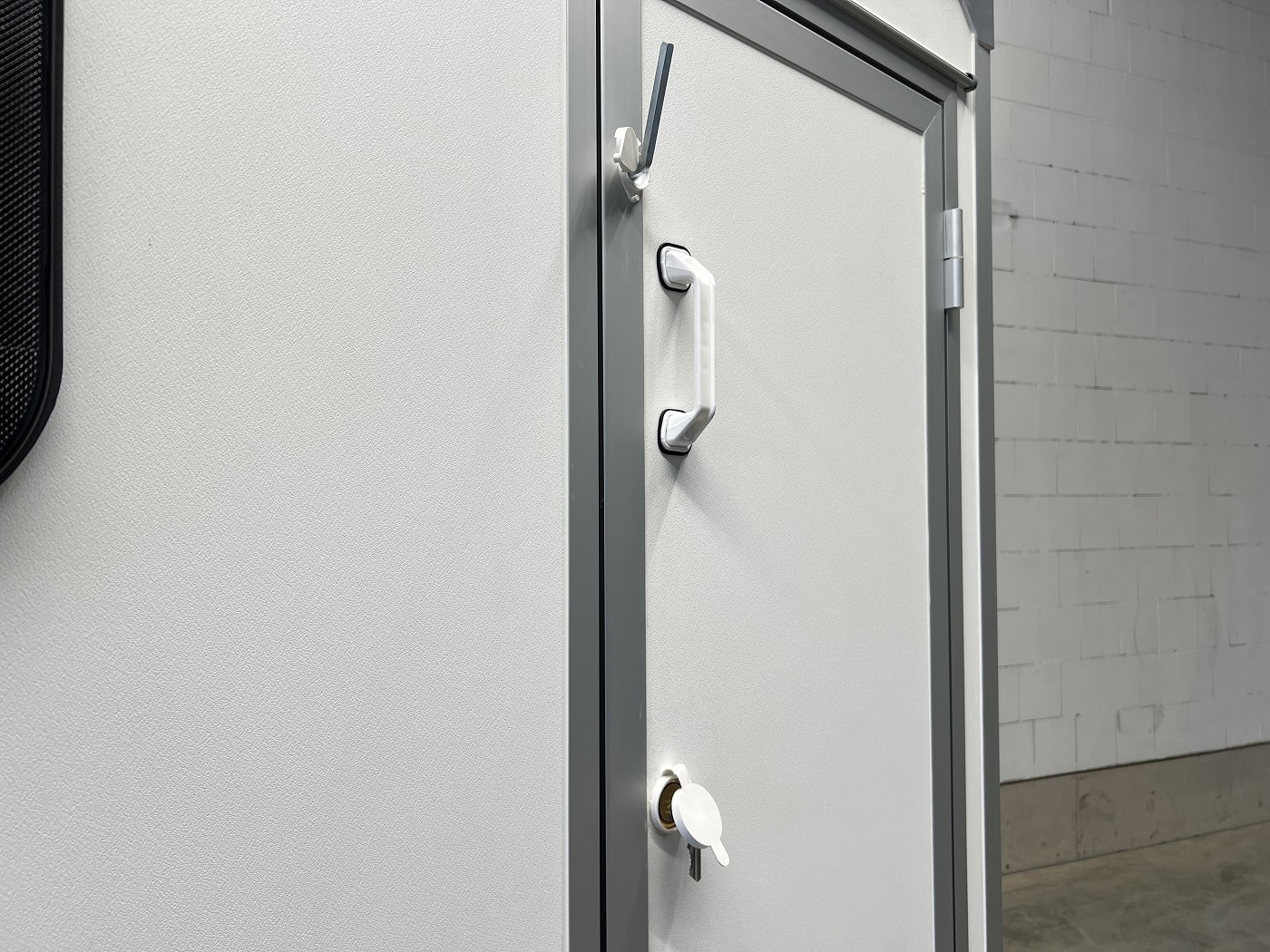 Kofferanhänger 1-Achser mit Doppelflügeltür, Seitentür und einem Fenster seitlich