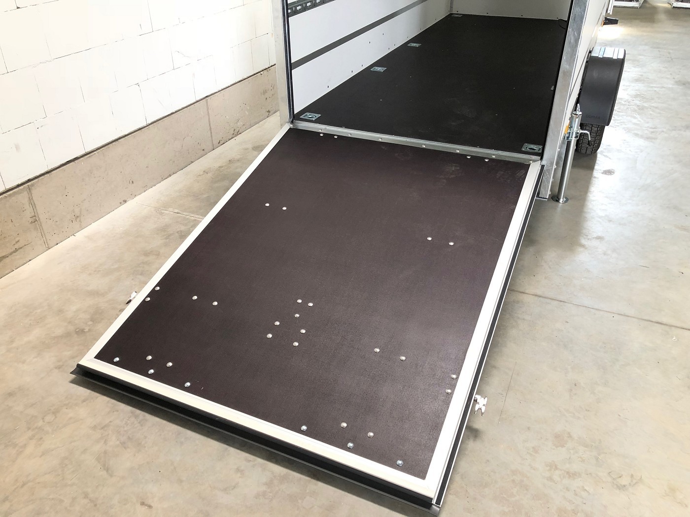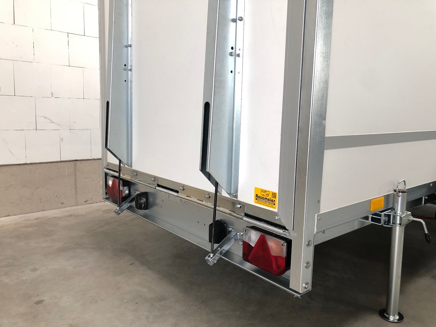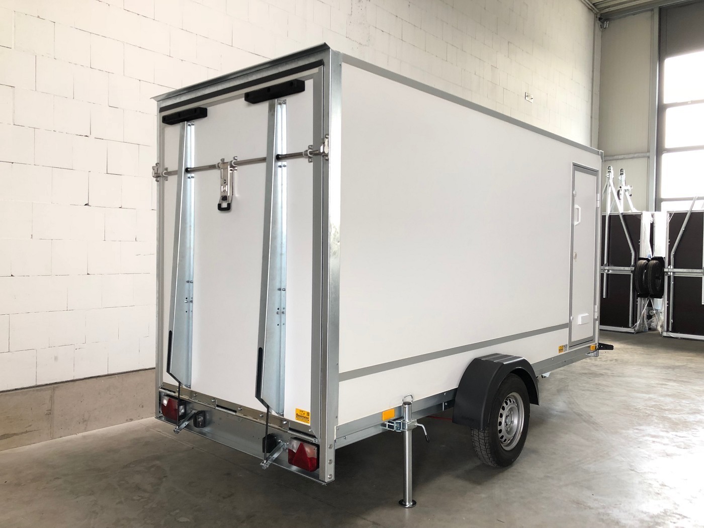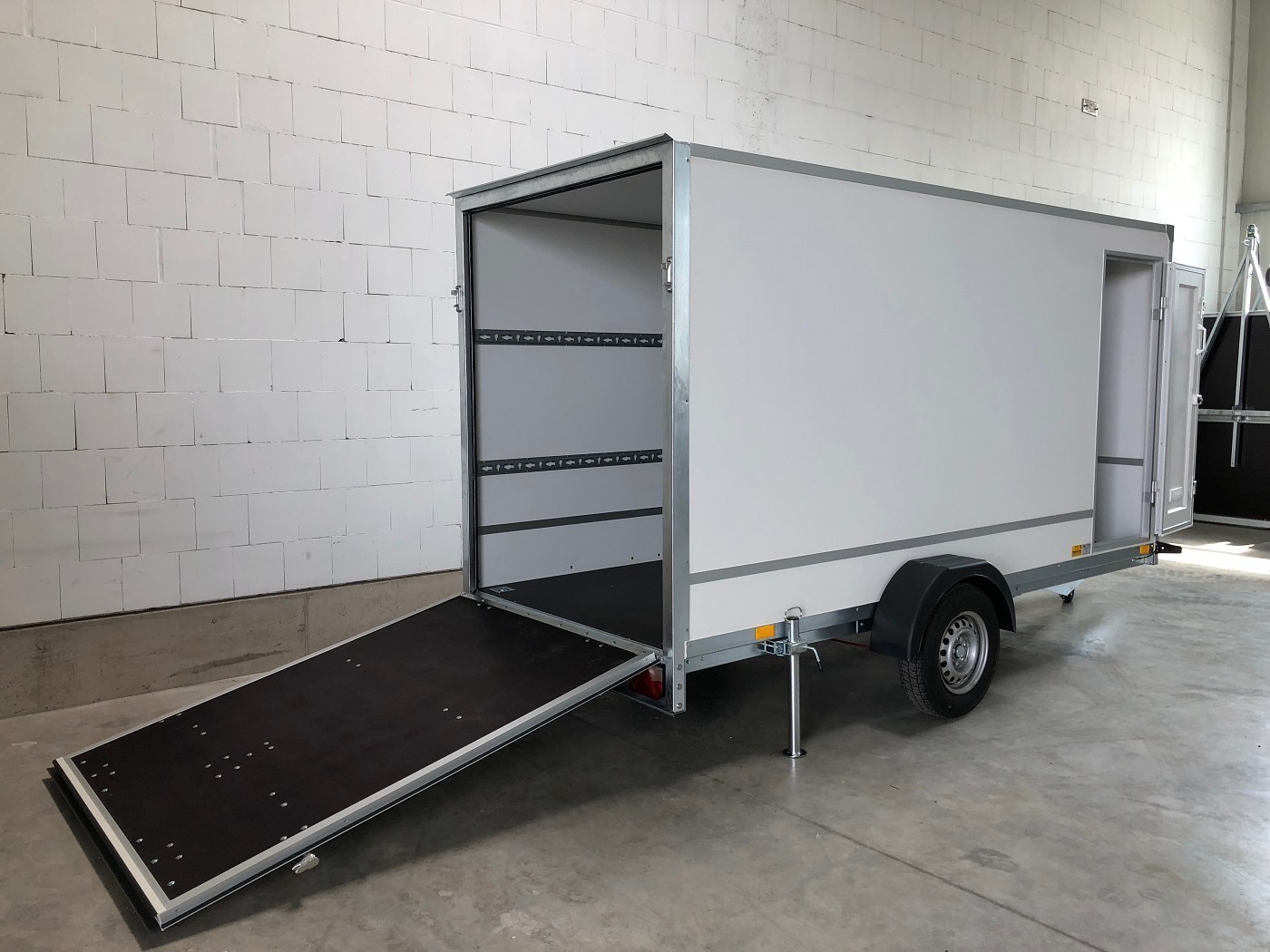 Kofferanhänger 1-Achser Auffahrrampe hinten und Seitentür