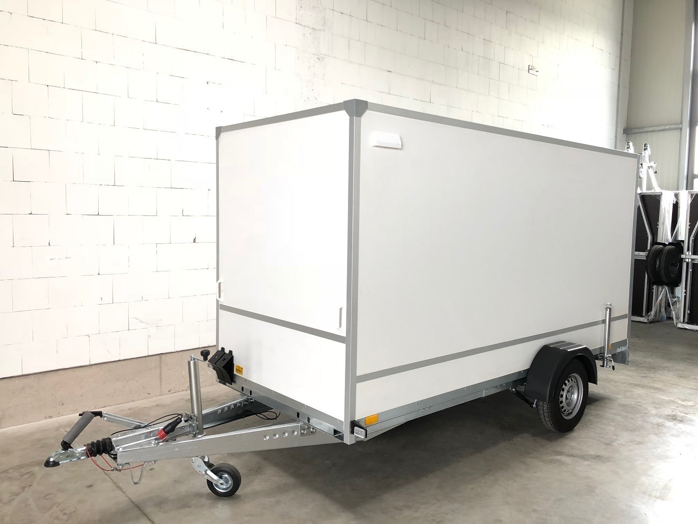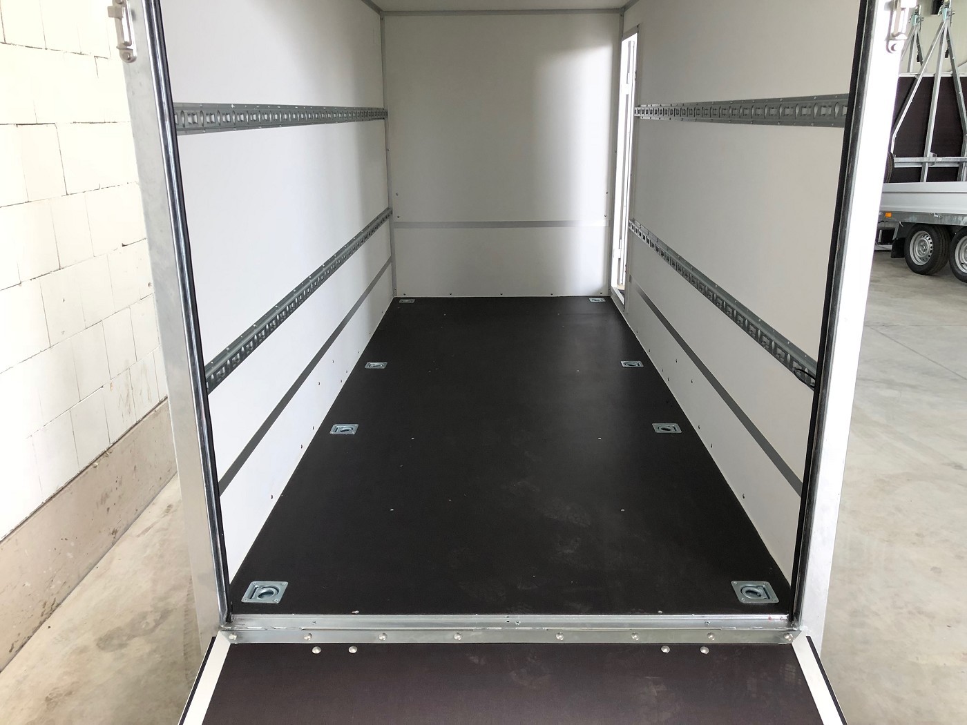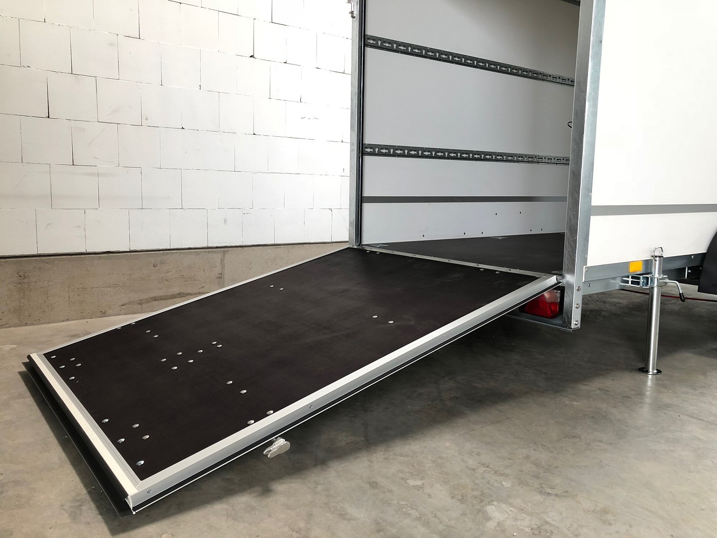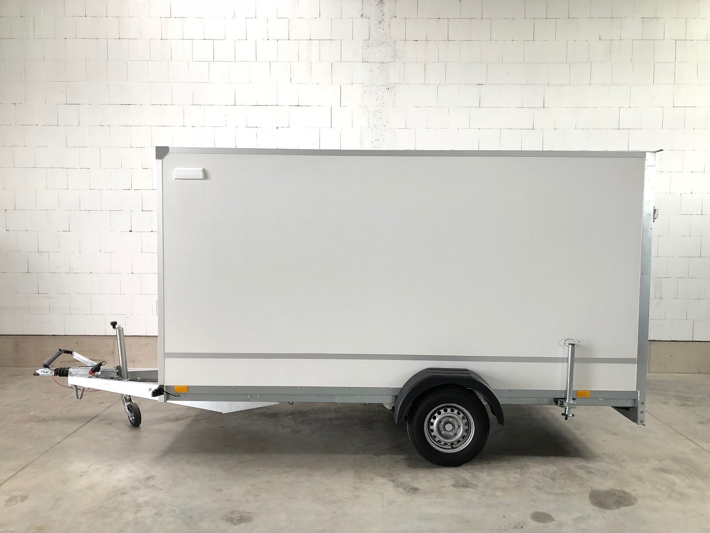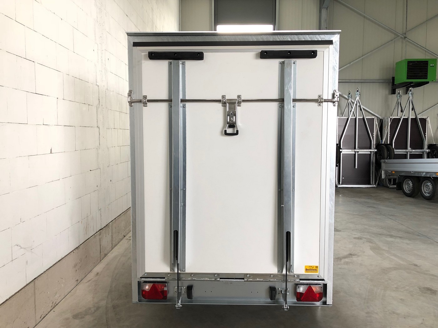 Kofferanhänger 1-Achser Auffahrrampe hinten und Seitentür