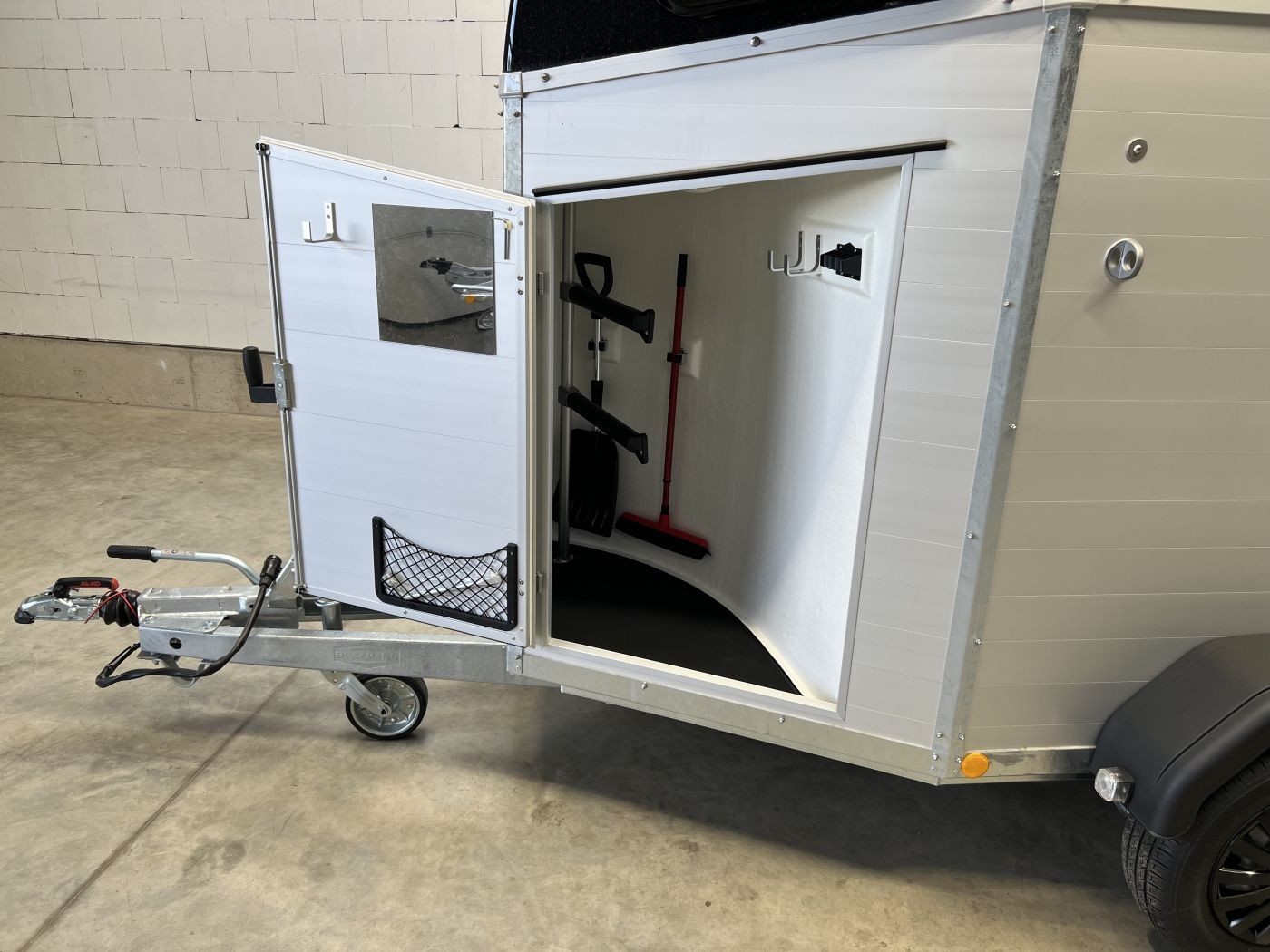 Pferdeanhänger Aluboden, Sattelkammer, Türklappenkombination, Trittschutz, Trittleisten auf der Beladeklappe, Radstoßdämpfer für die 100 km/h-Abnahme