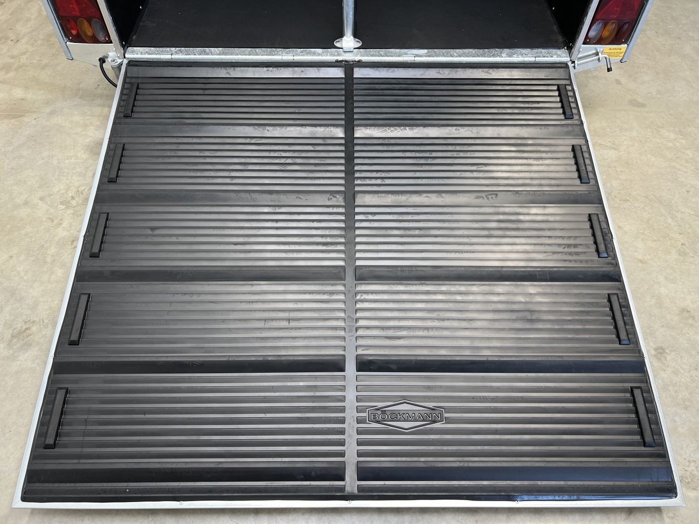 Gummi auf Beladeklappe mit integrierten Trittleisten und Seitenstops gewährleisten optimalen Halt für Ihre Pferde