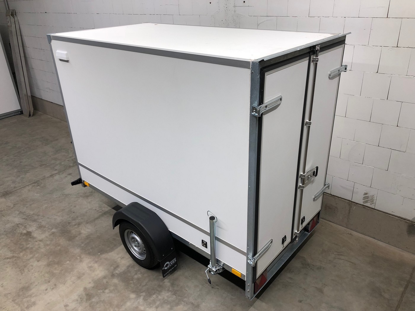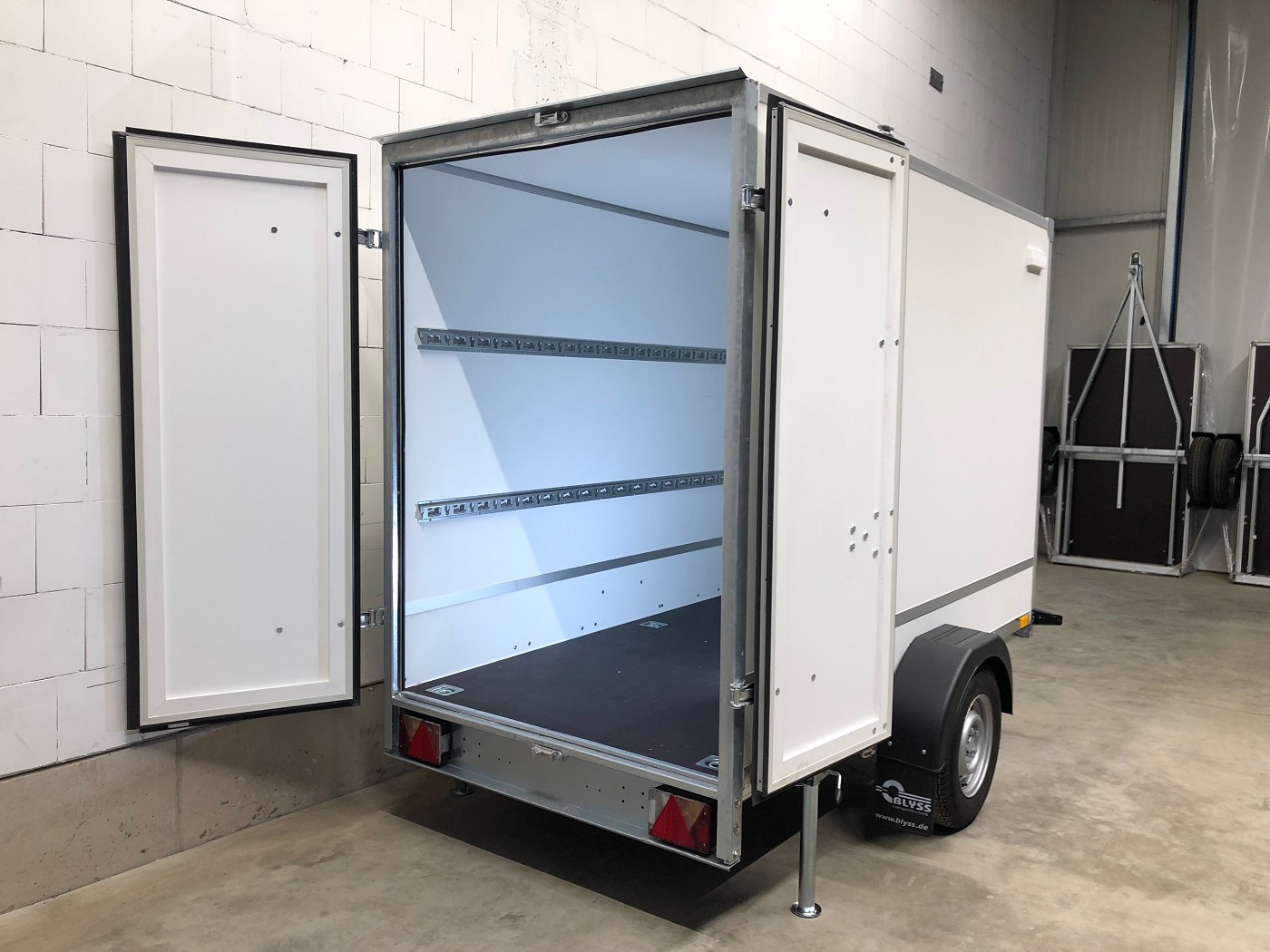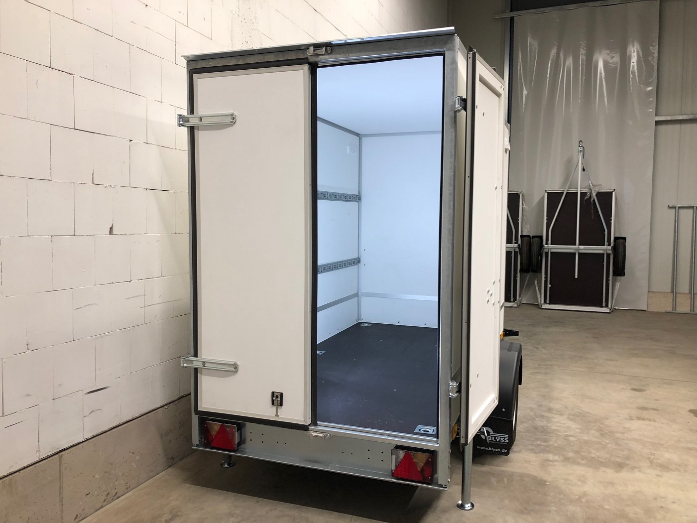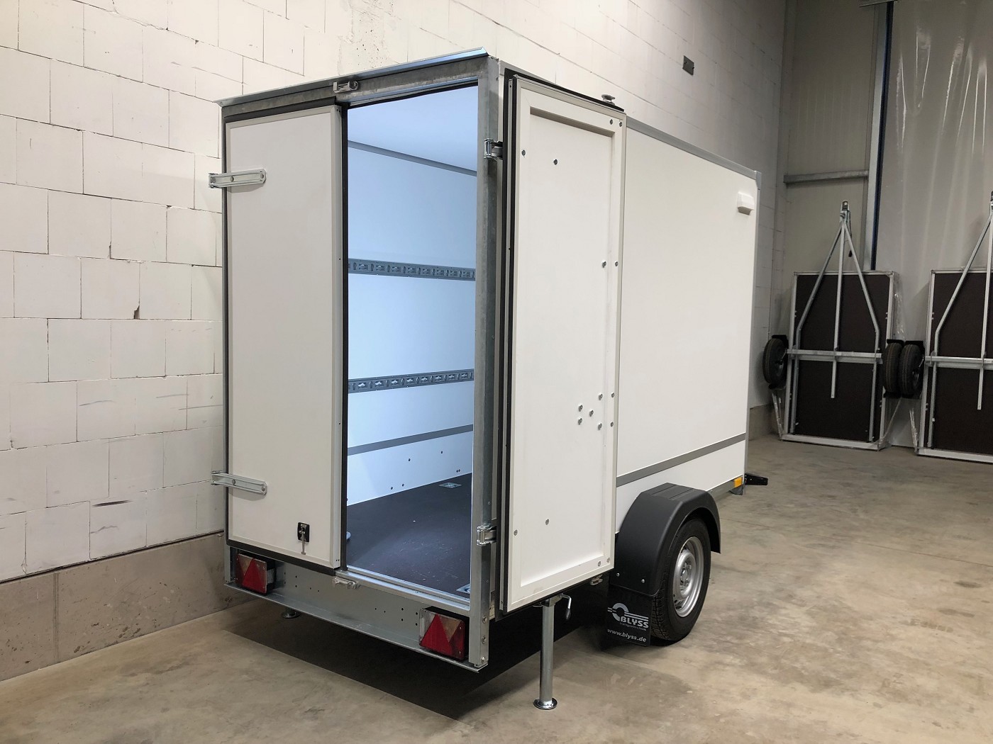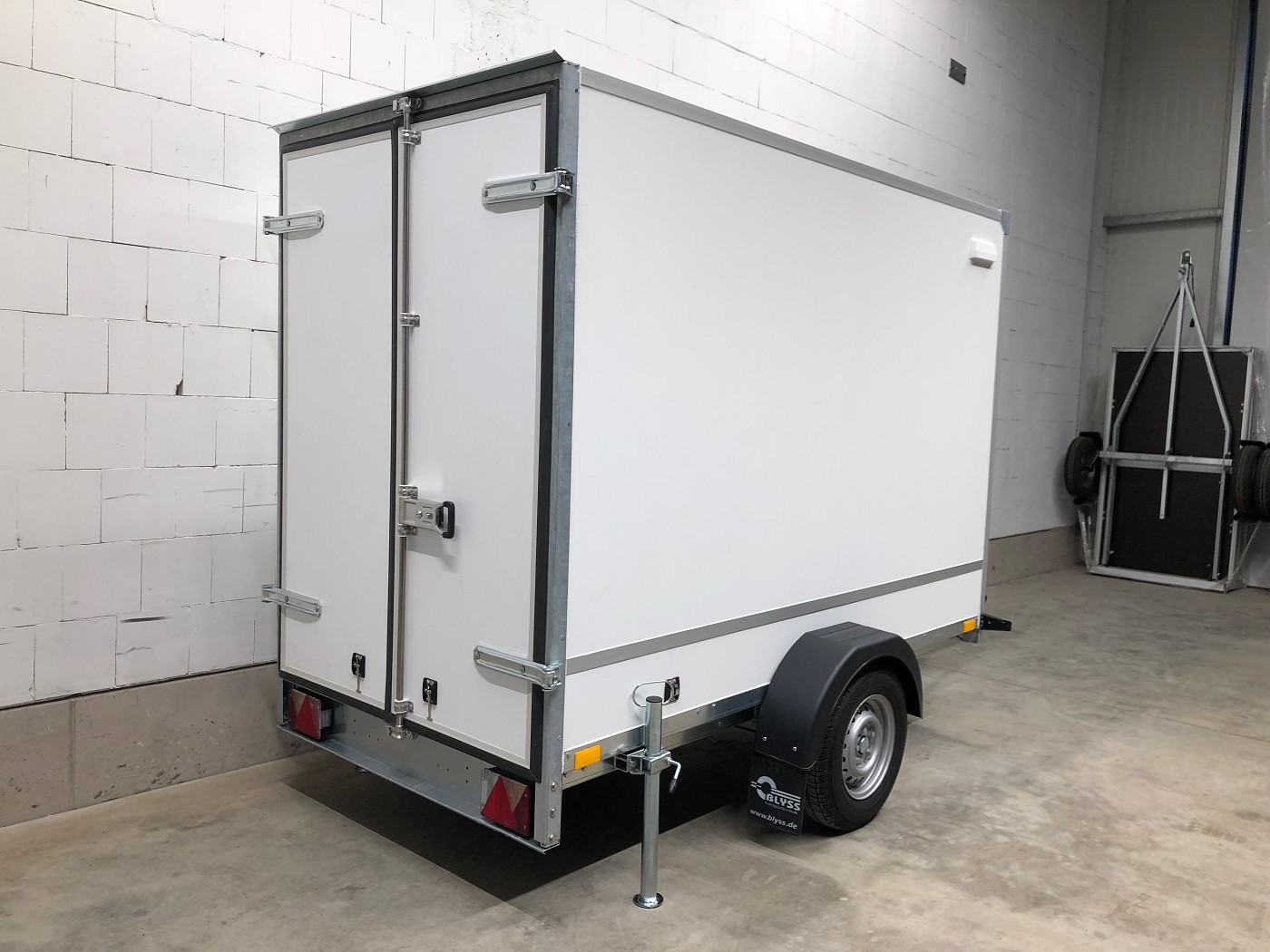 Kofferanhänger als 1-Achser mit Doppelflügeltür hinten