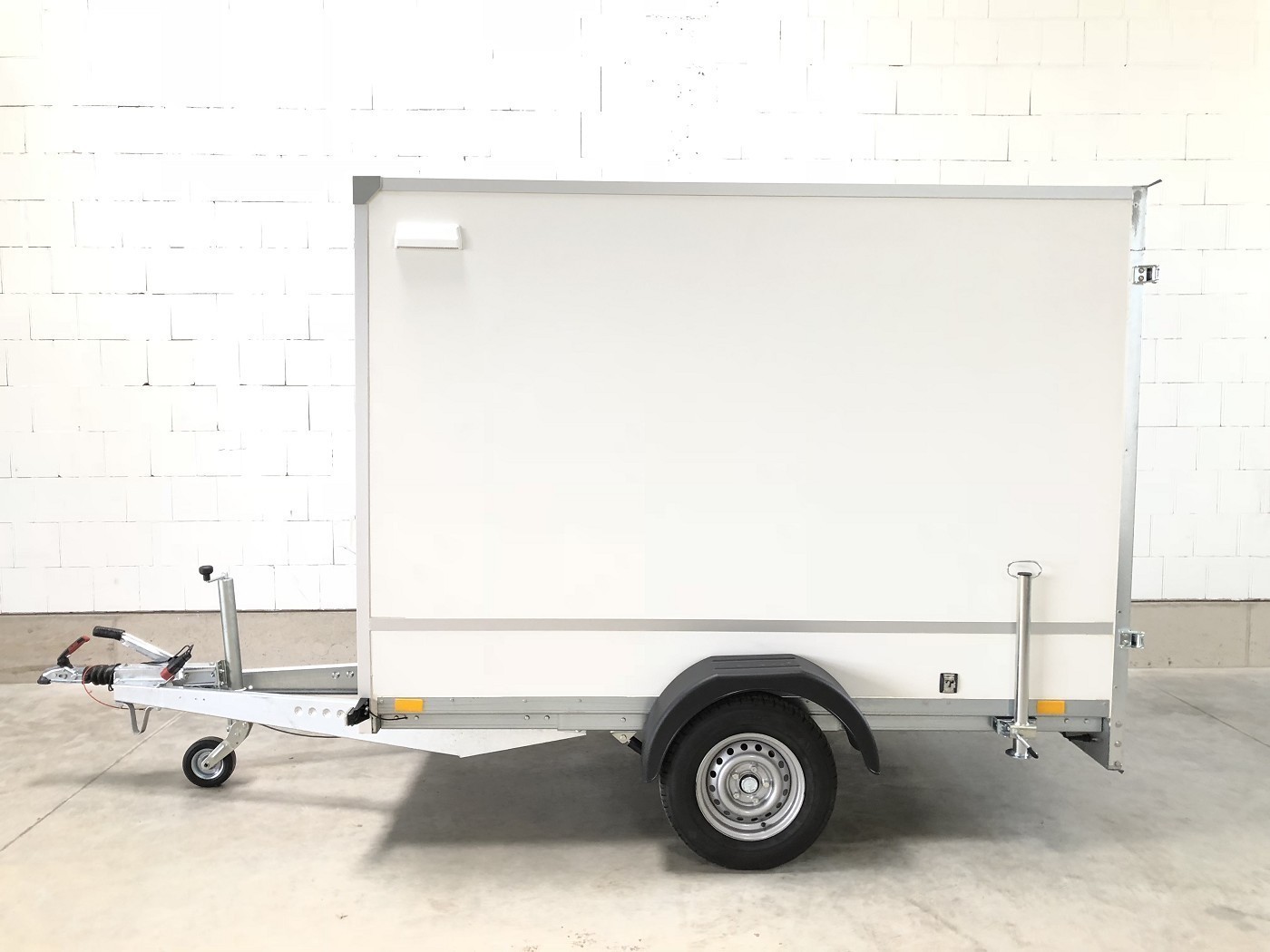 Kofferanhänger als 1-Achser mit Seitentür und Doppelflügeltür hinten