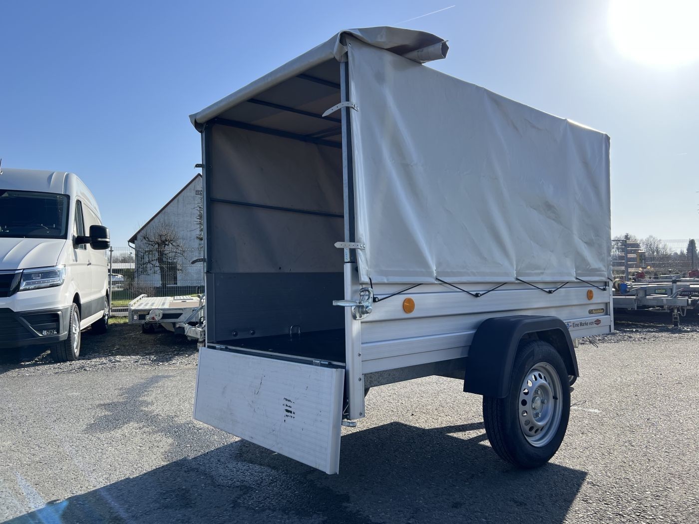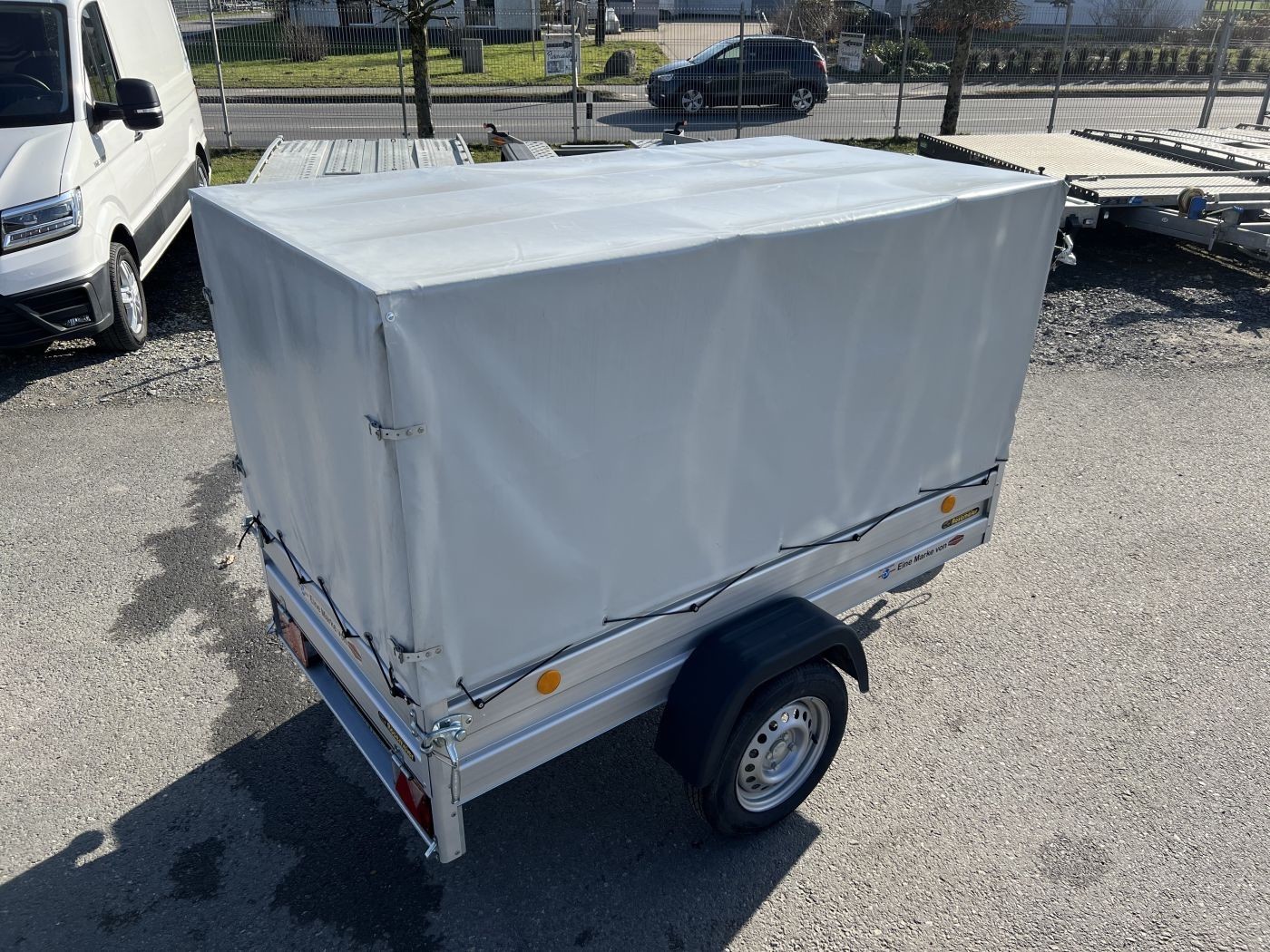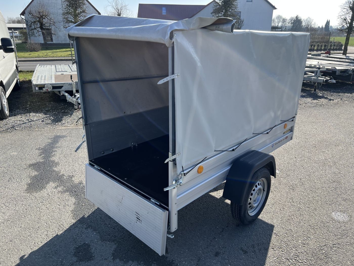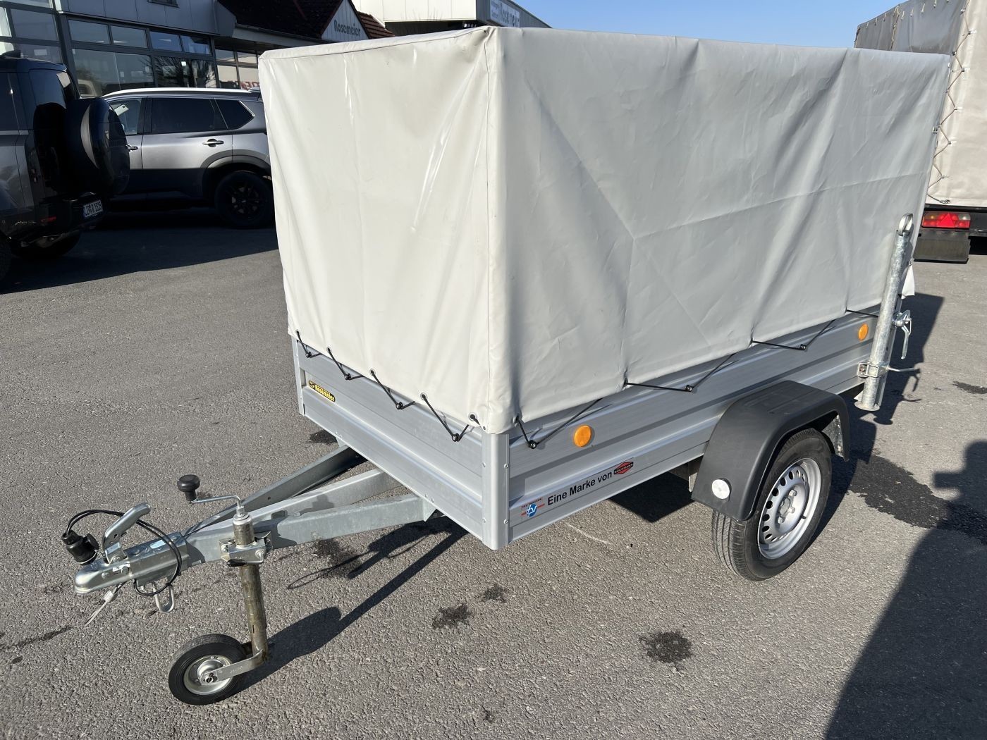 Kastenanhänger 1-Achser ungebremst Alu-Bordwände, Plane
