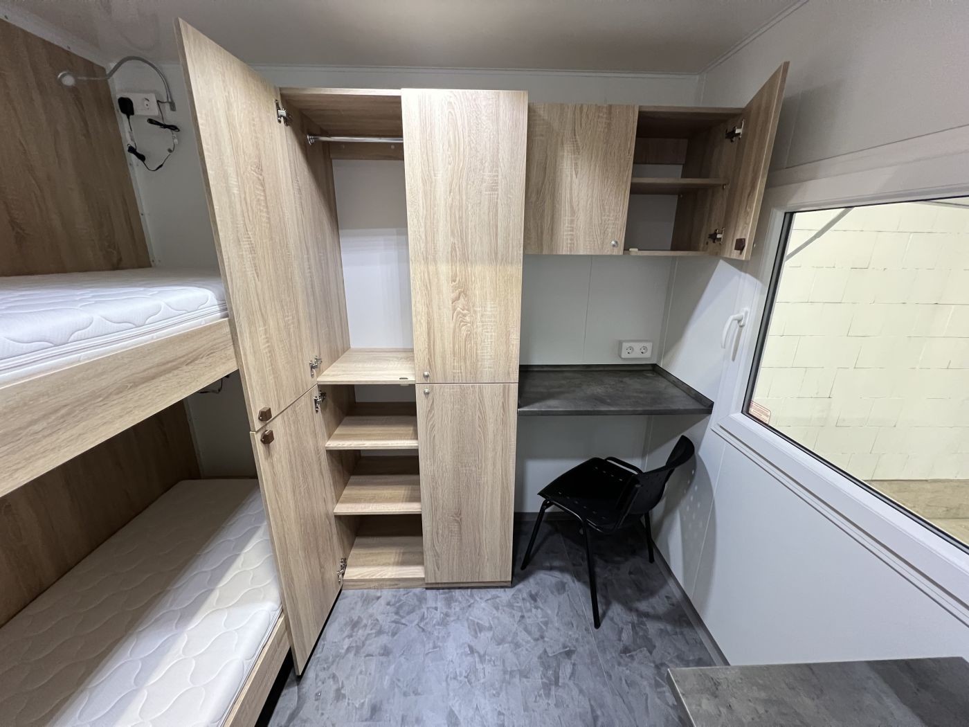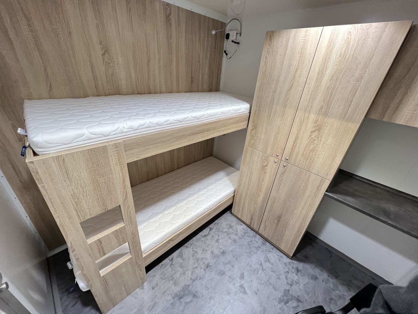 Mannschaftswagen mit Wohnausstattung – 2 Schlafzimmer (für bis zu 4 Personen), Bad mit Dusche & WC