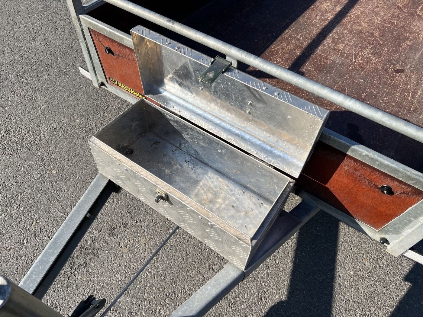 Werkzeugkiste aus Alu-Riffelblech auf der Deichsel