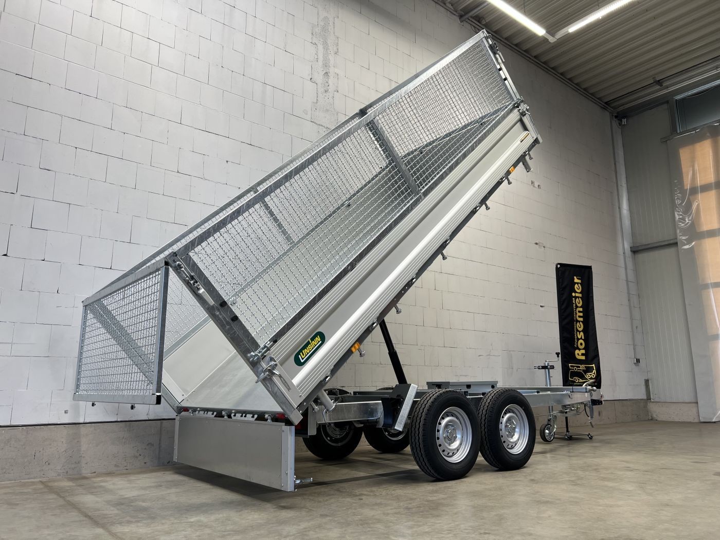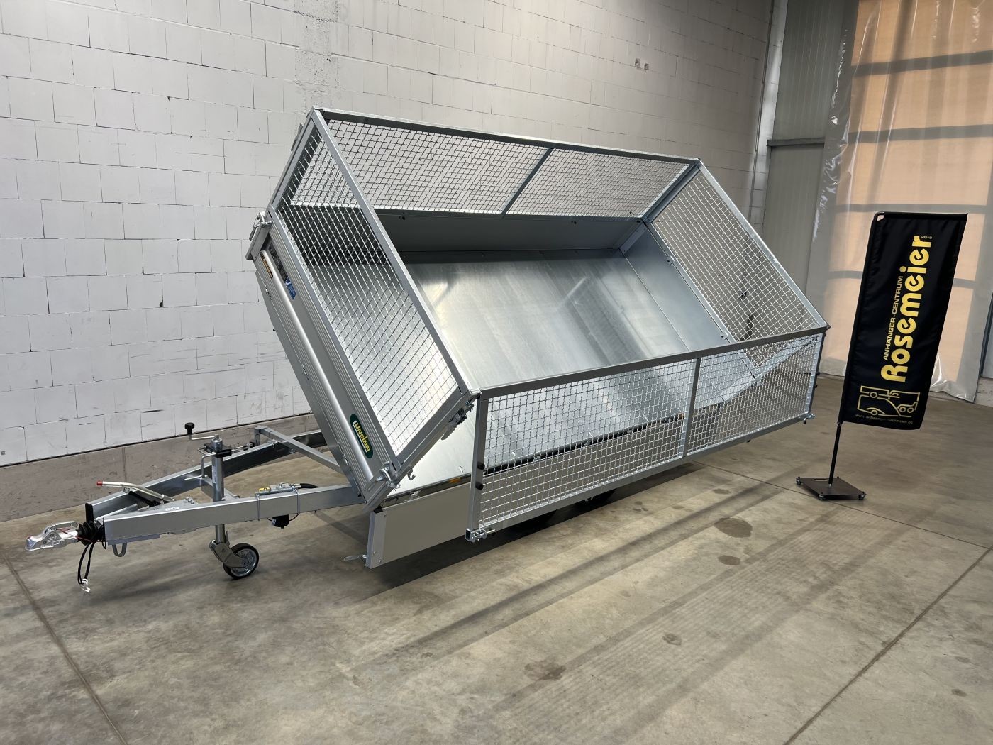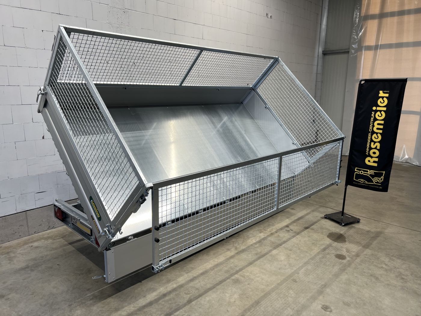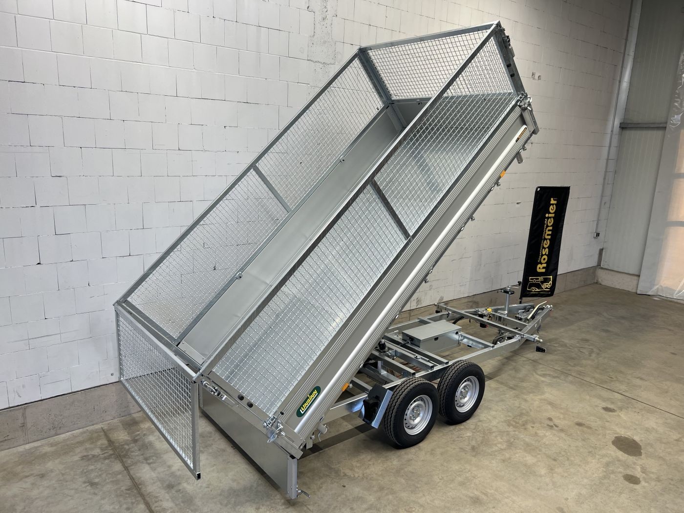 Dreiseitenkipper mit E-Pumpe und Gitteraufsatz