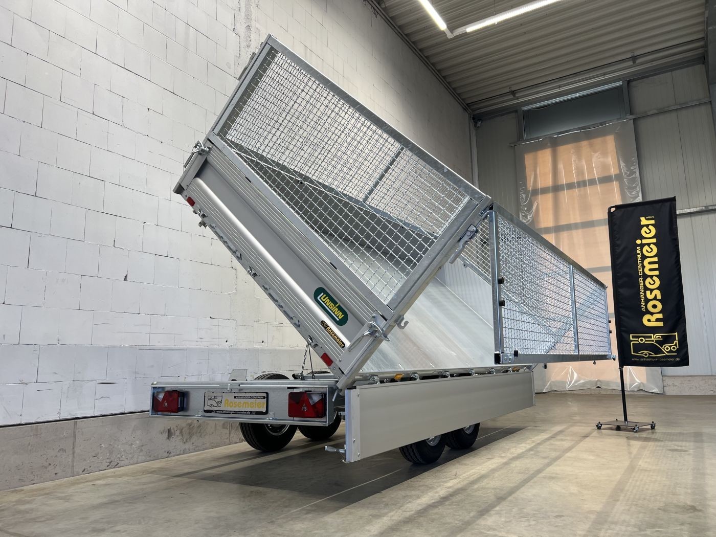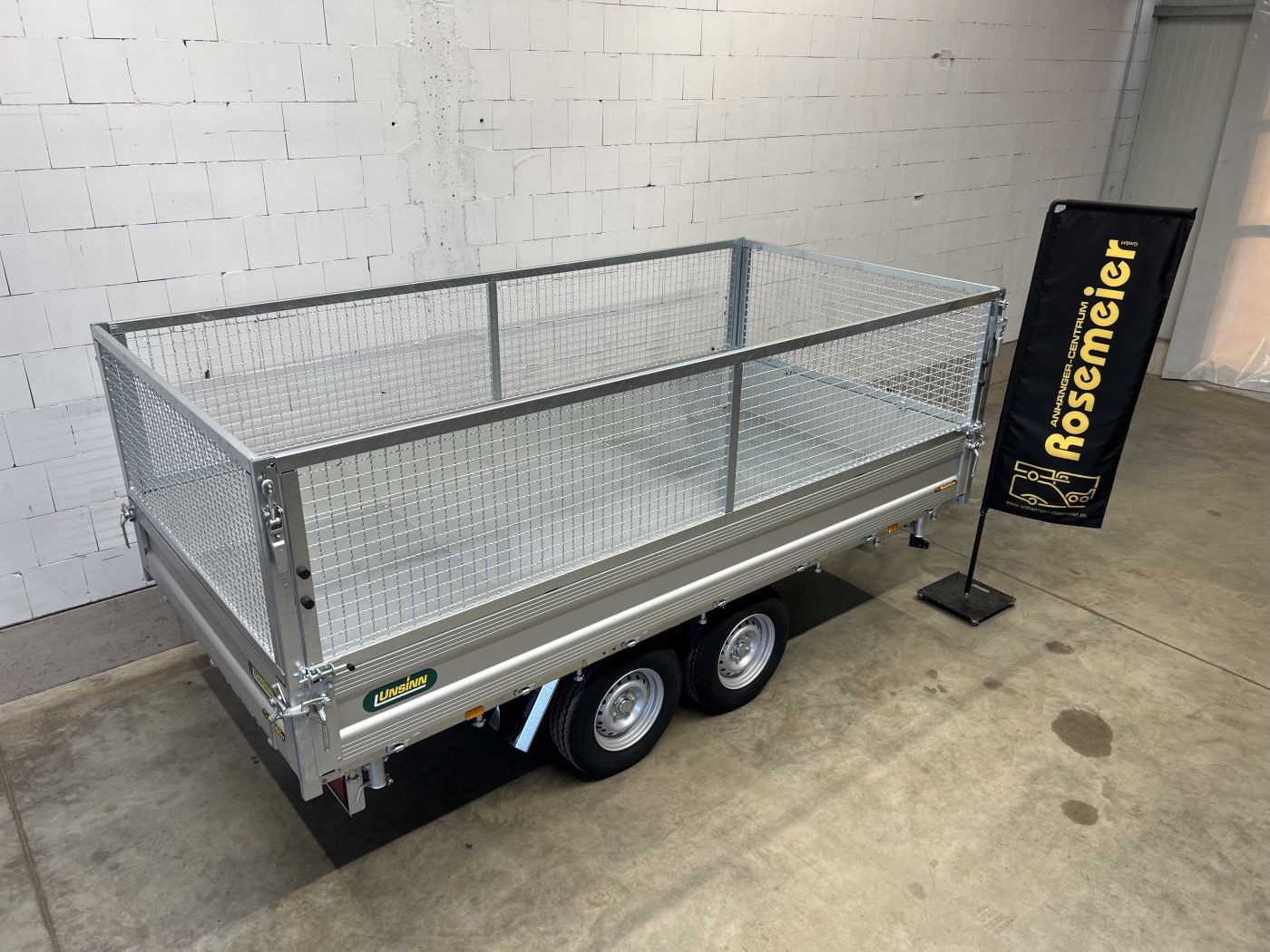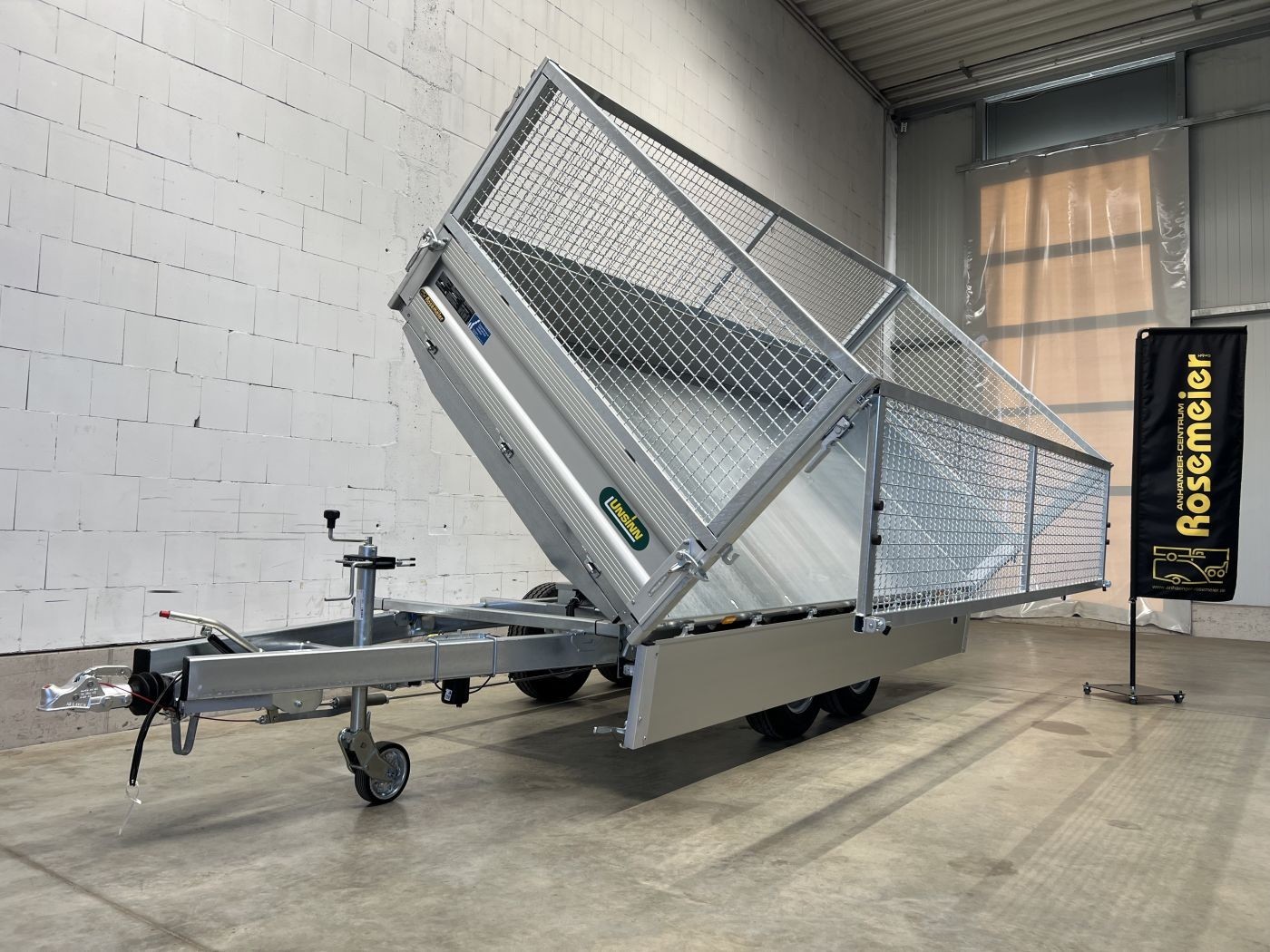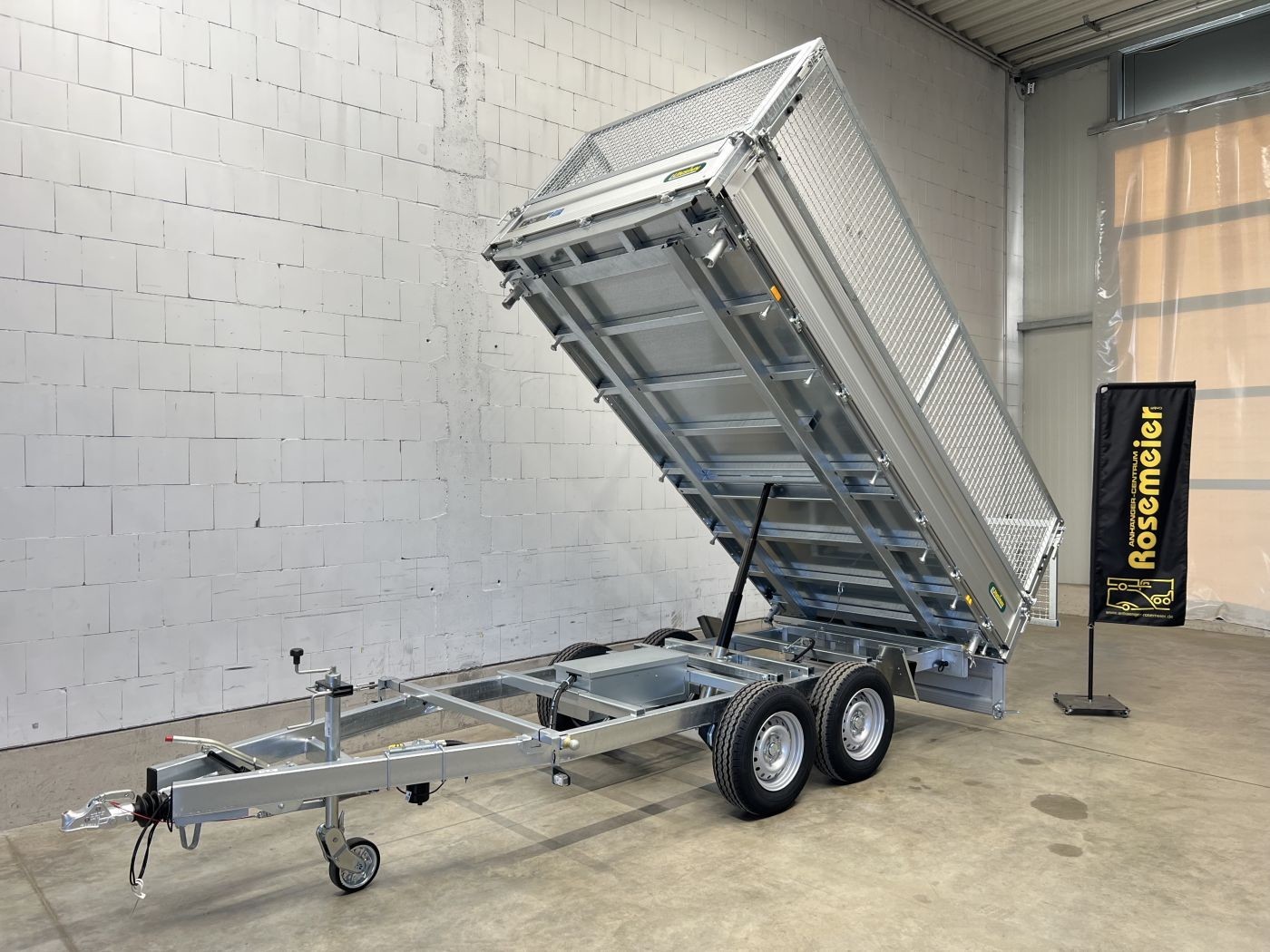 Dreiseitenkipper mit E-Pumpe und Gitteraufsatz