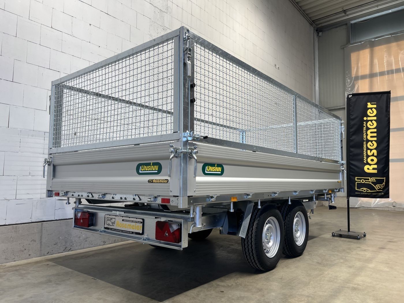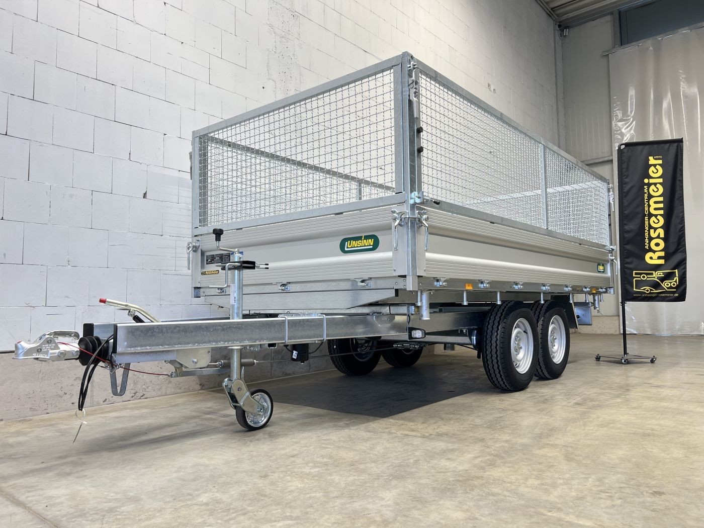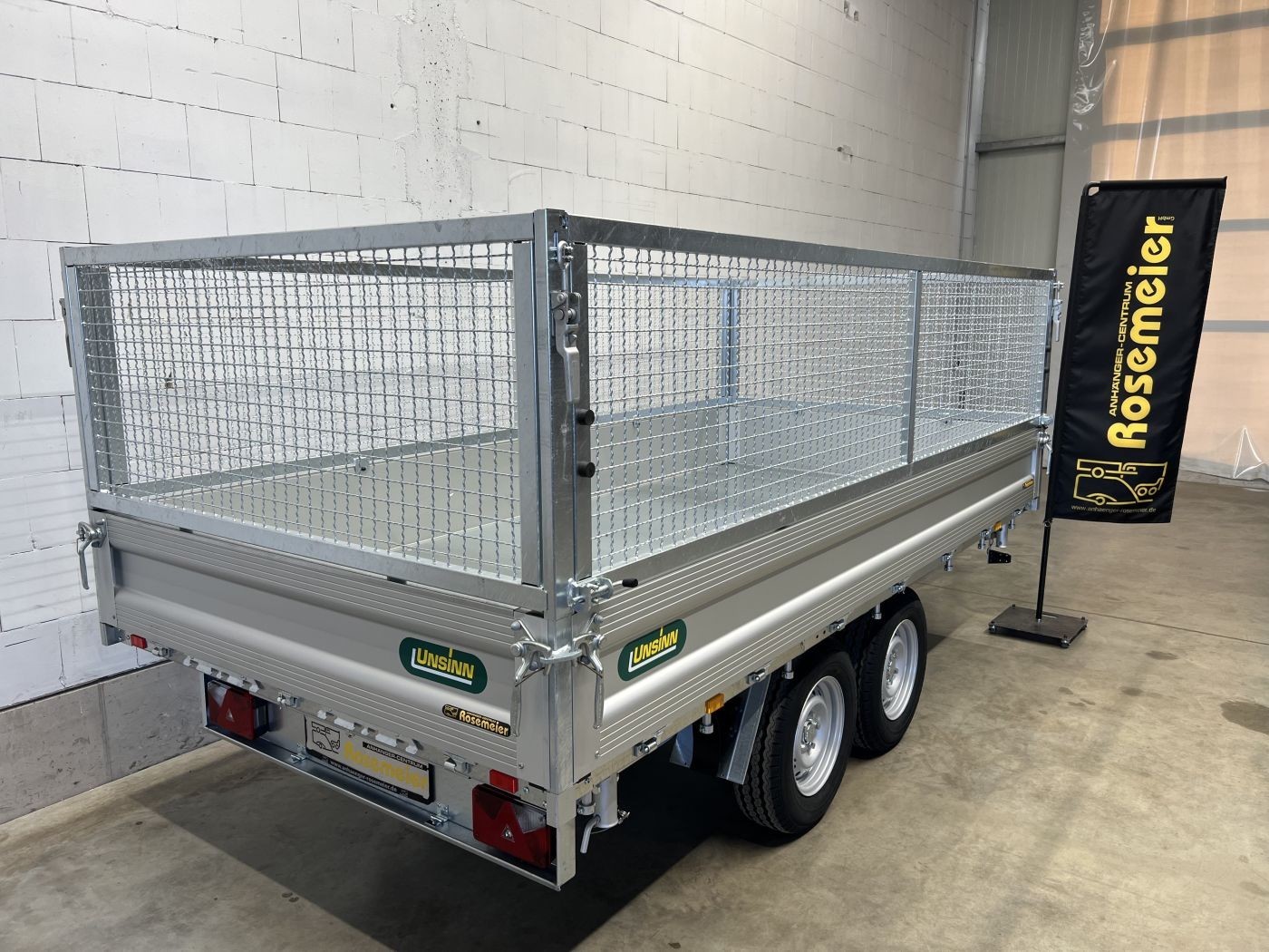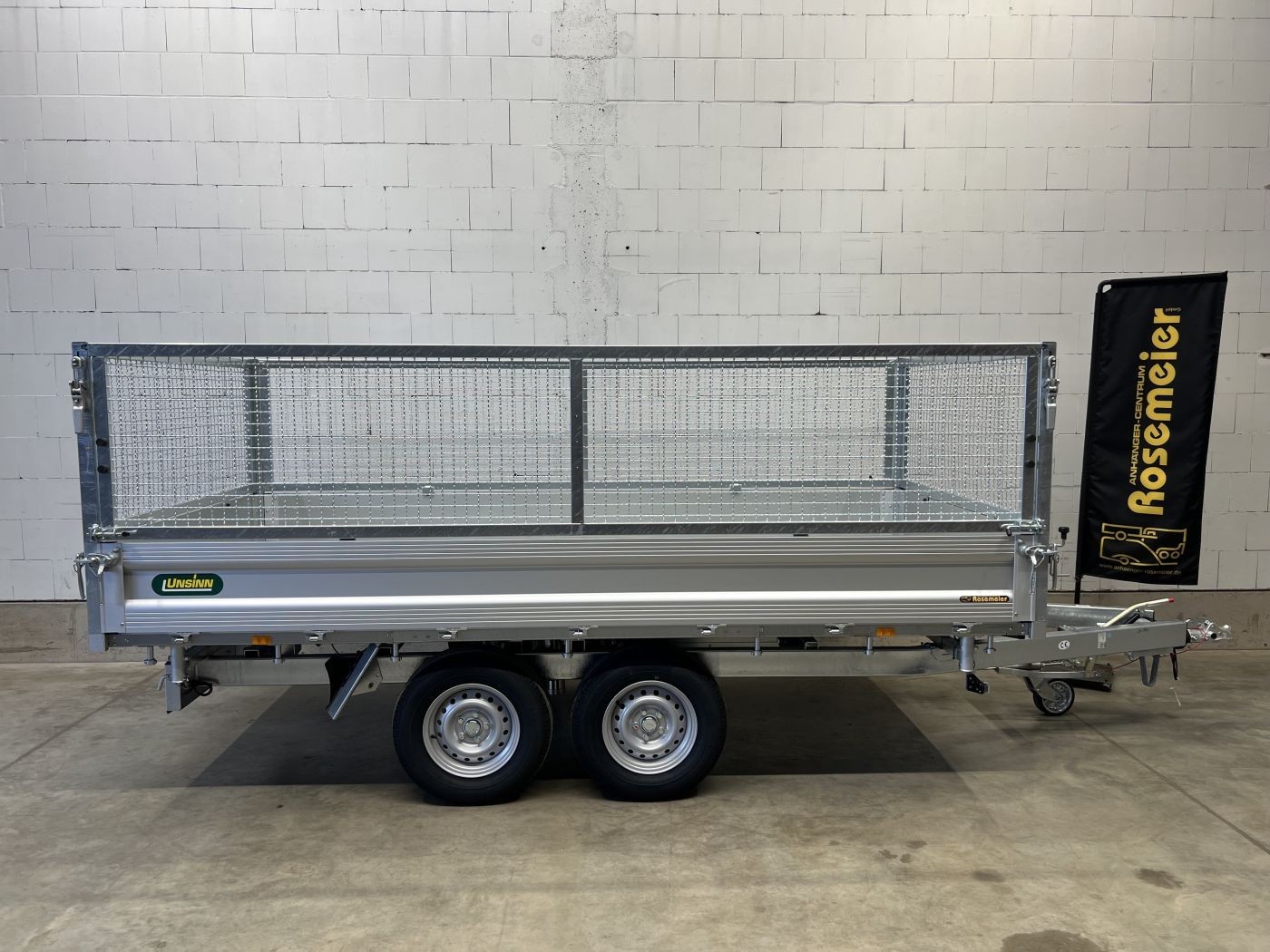 Dreiseitenkipper mit E-Pumpe und Gitteraufsatz