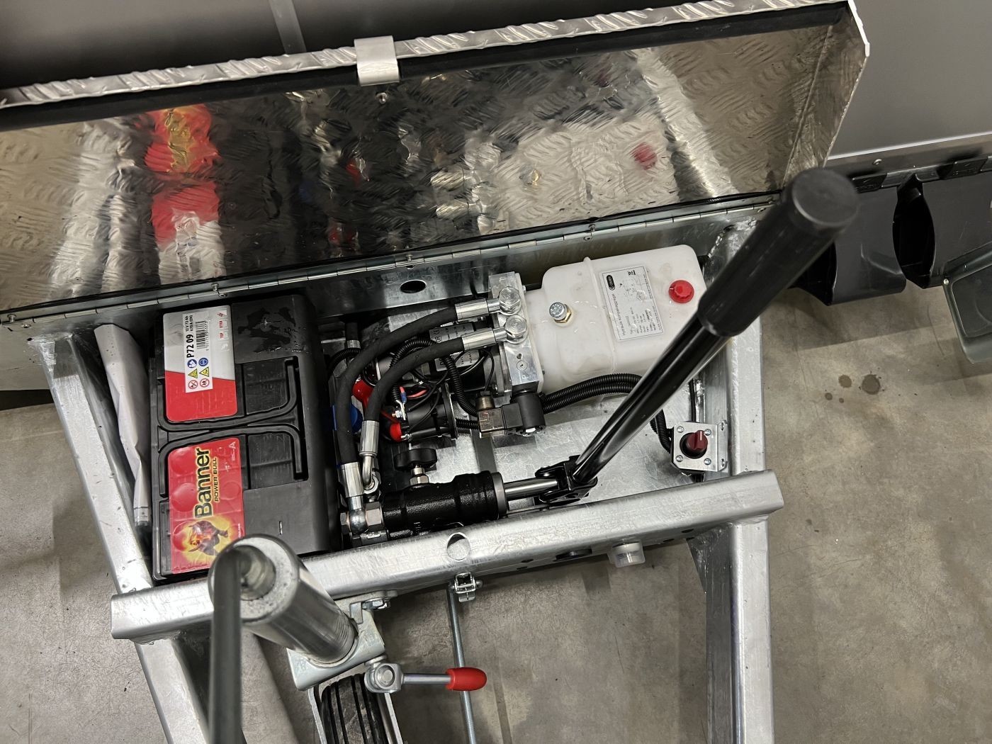 • Elektrohydraulische Absenkfunktion für ein einfaches Heben und Senken des Fahrgestells per Knopfdruck (+Nothandpumpe)