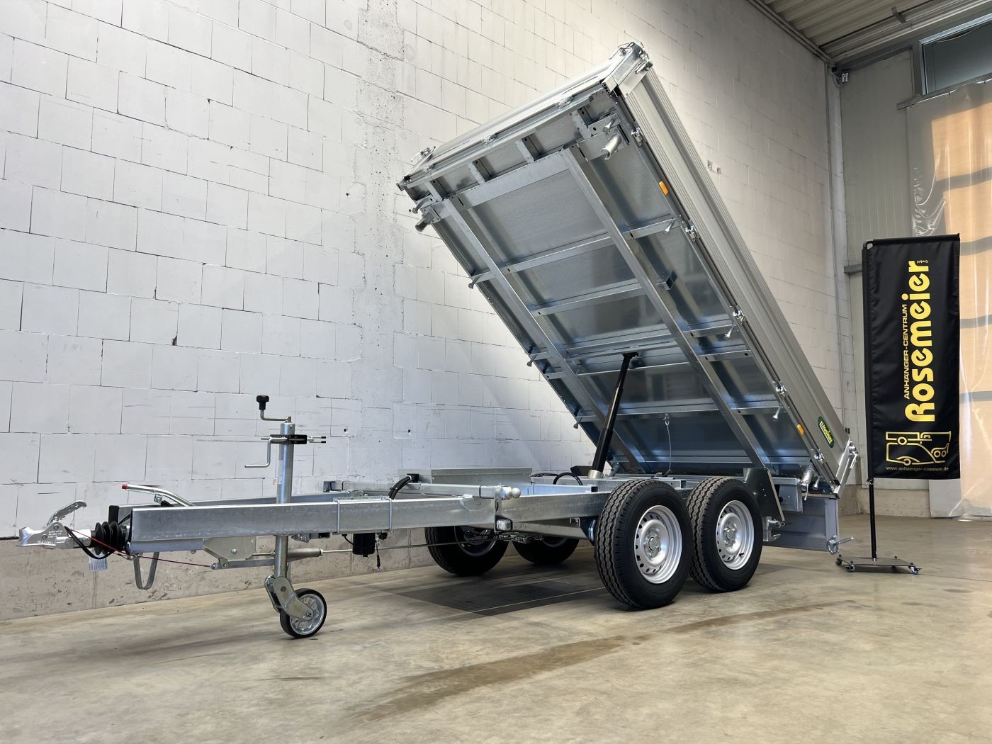 Dreiseitenkipper mit E-Pumpe & Akkuschrauberpumpe, Auffahrrampen und Stützen