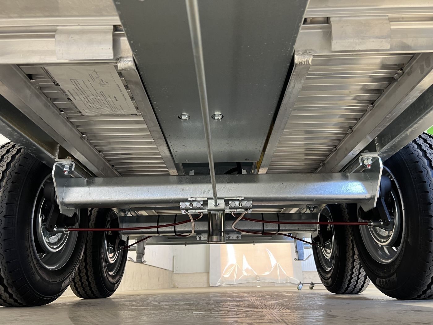 Über die gesamte Fahrzeugbreite durchgehender massiver Stahlboden
