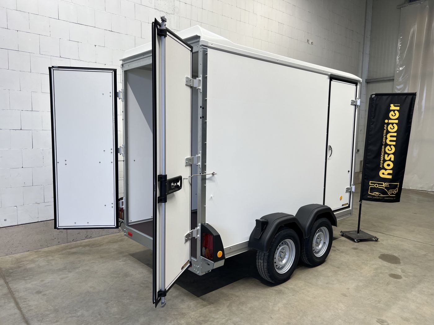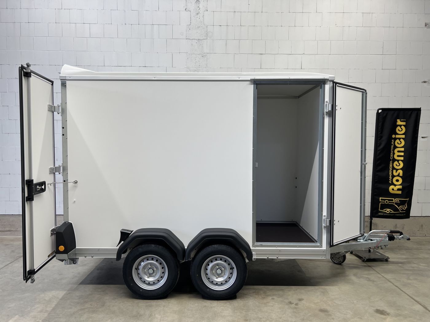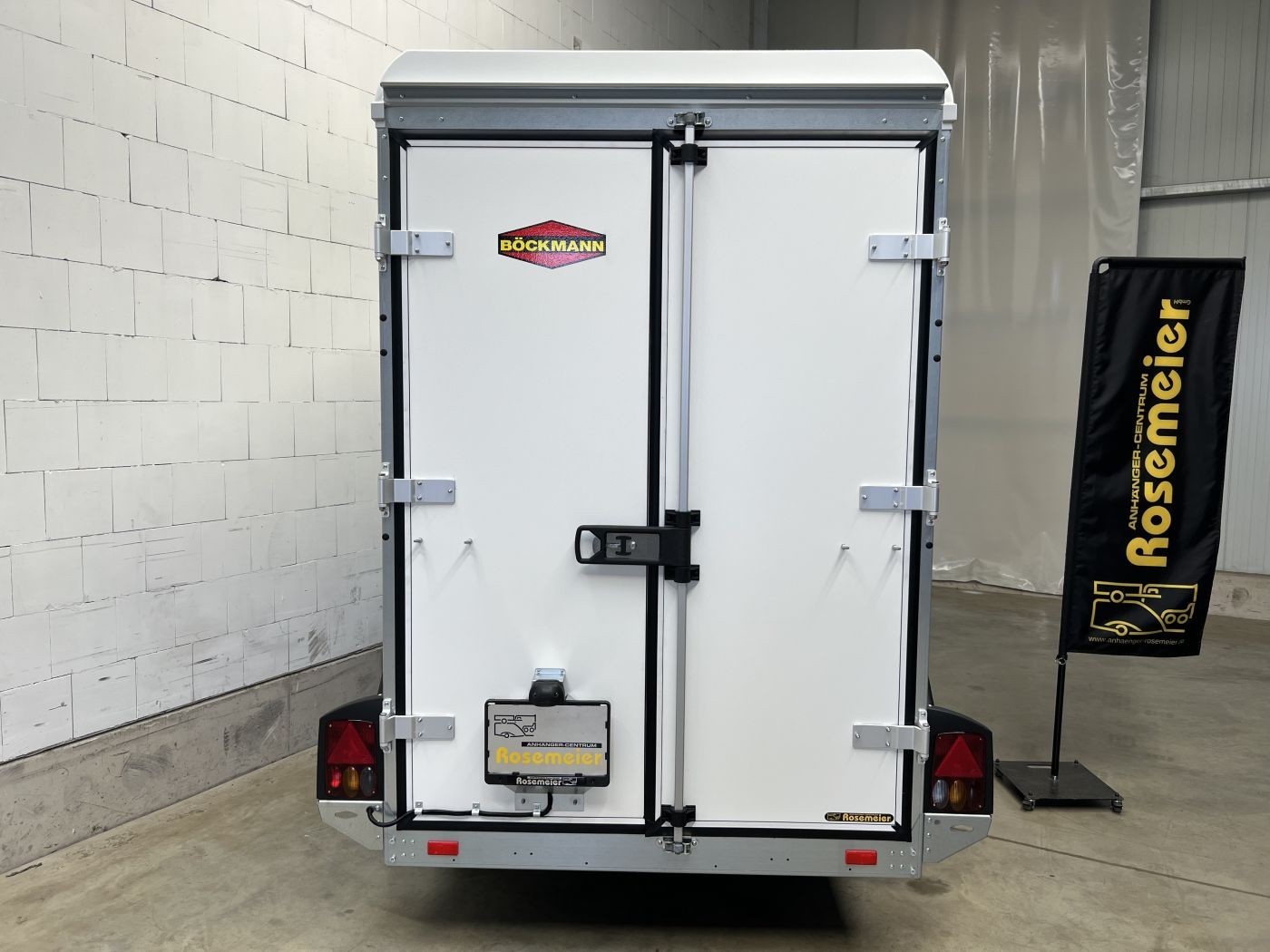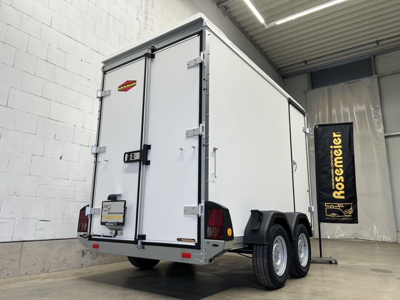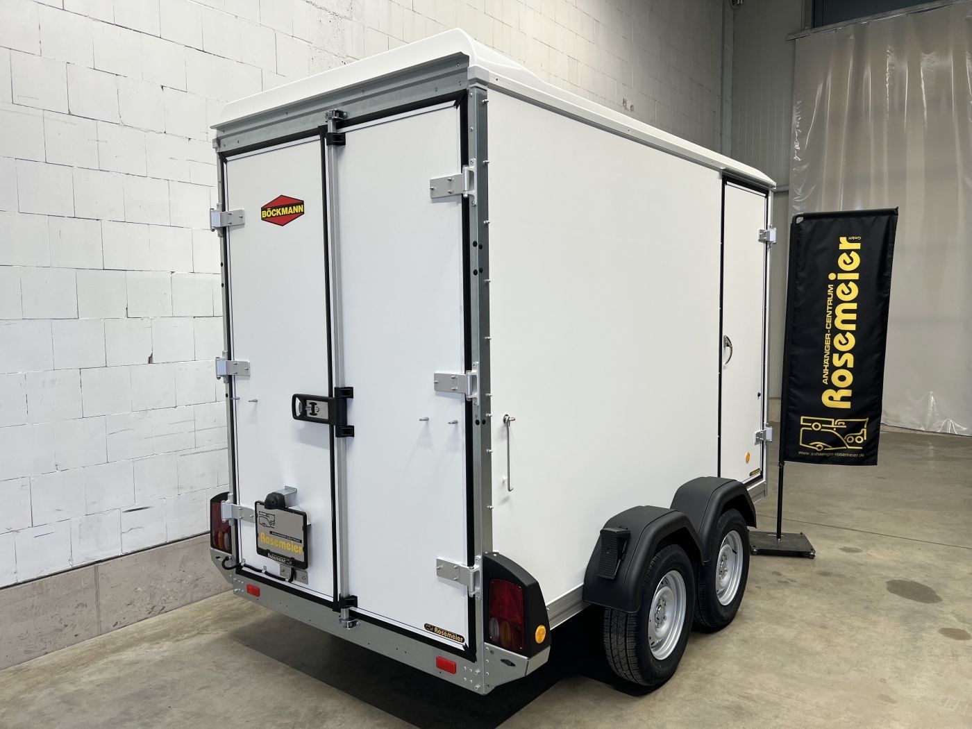 Böckmann Kofferanhänger mit niedrigem Fahrwerk, Doppelflügeltür hinten und Seitentür