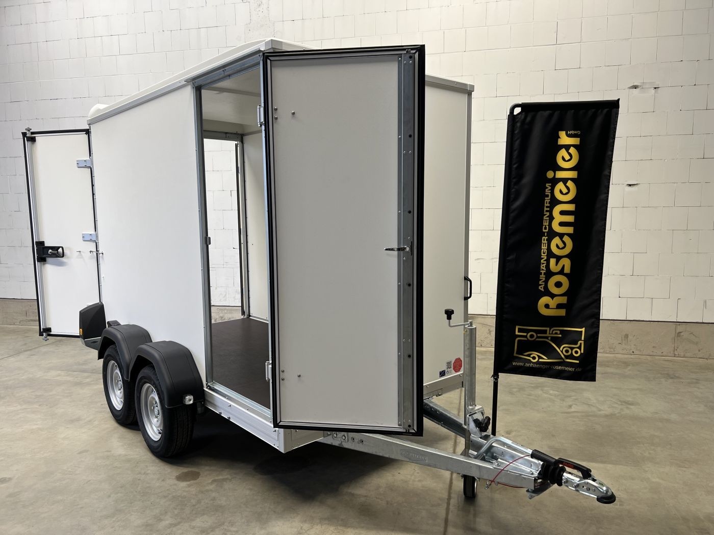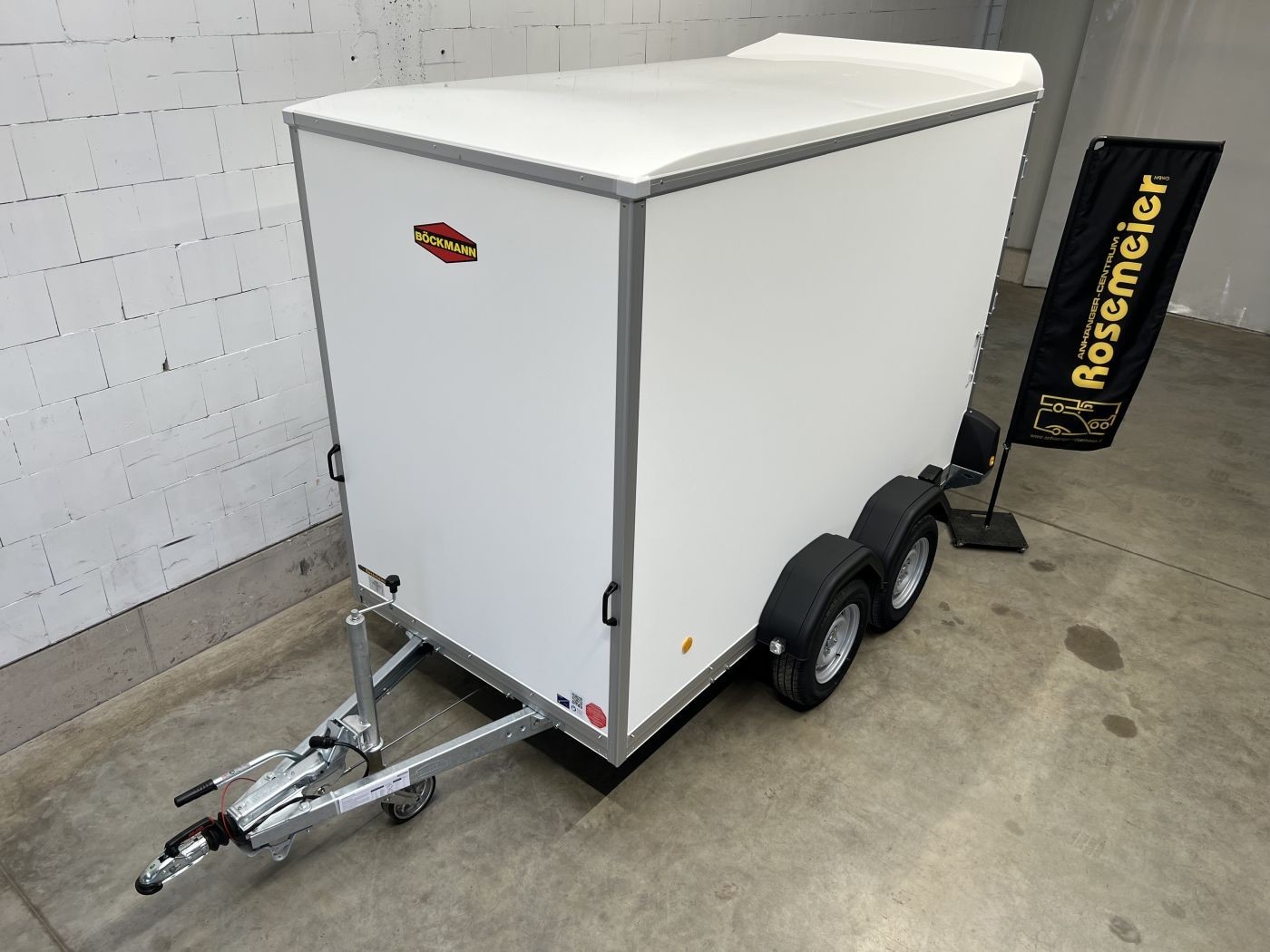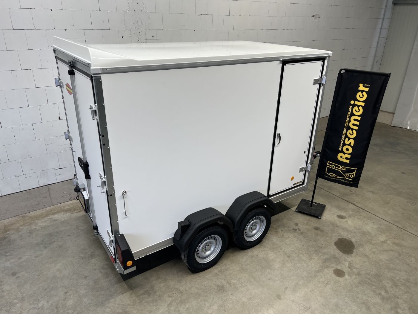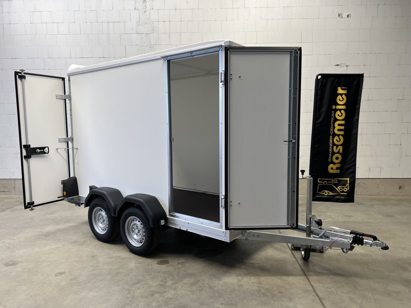 Böckmann Kofferanhänger mit niedrigem Fahrwerk, Doppelflügeltür hinten und Seitentür