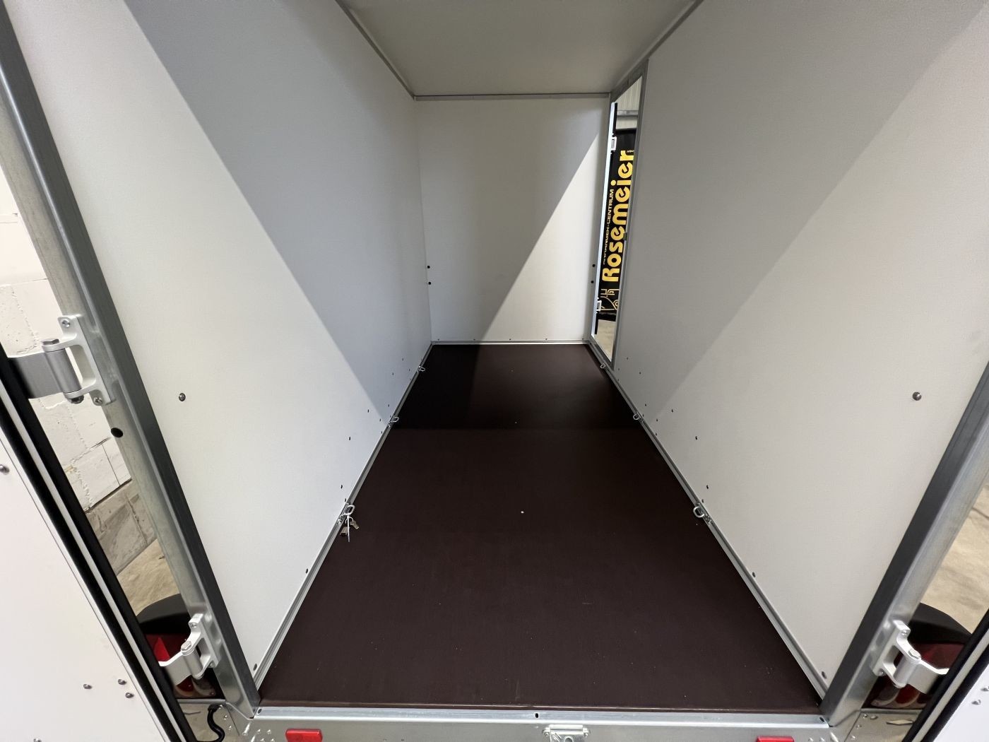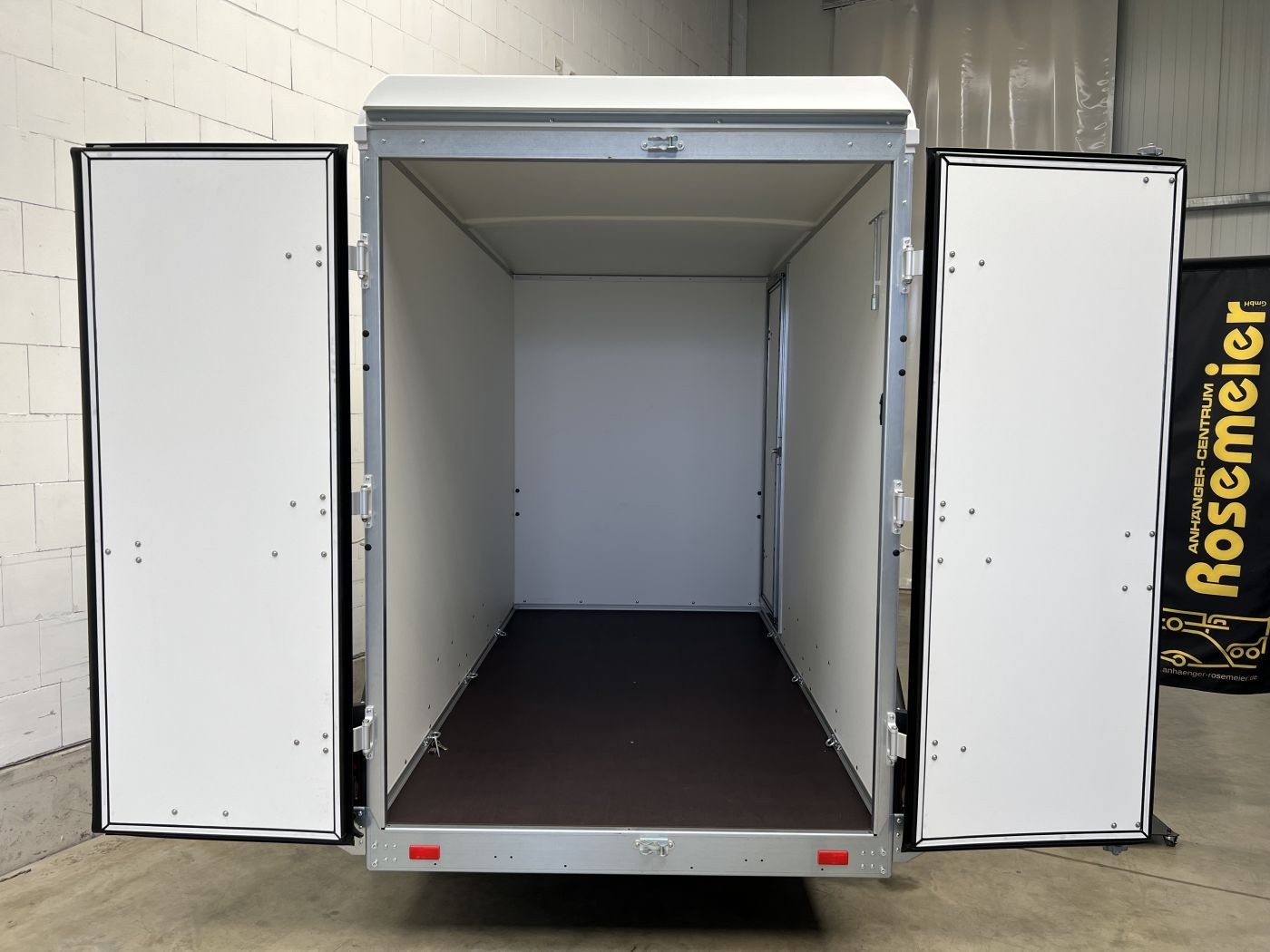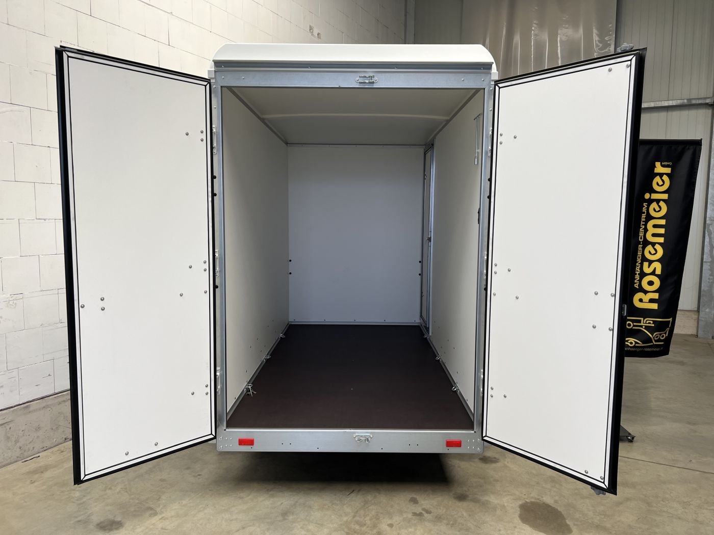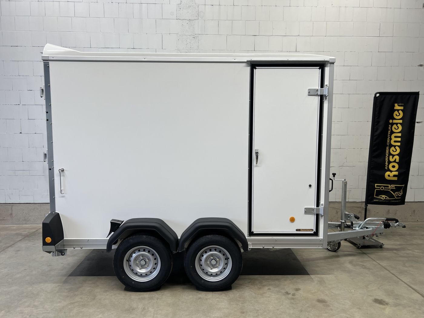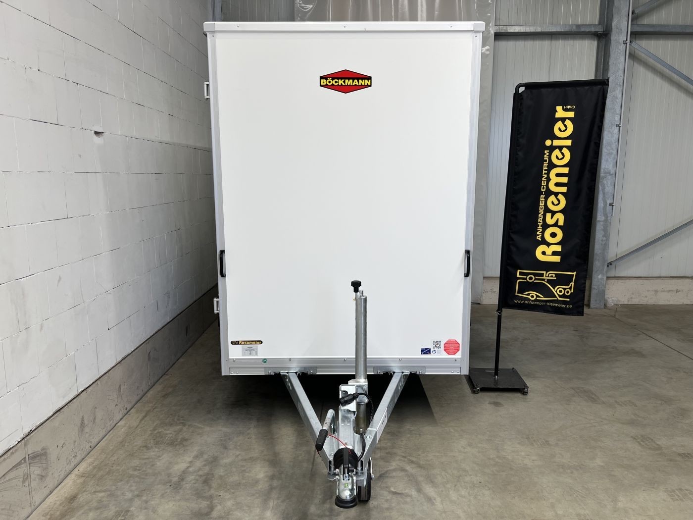 Böckmann Kofferanhänger mit niedrigem Fahrwerk, Doppelflügeltür hinten und Seitentür