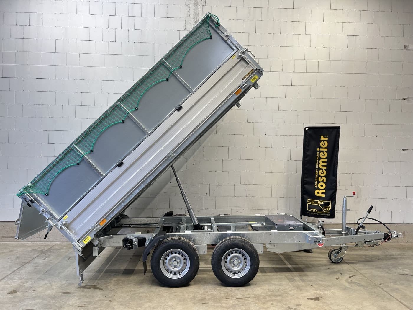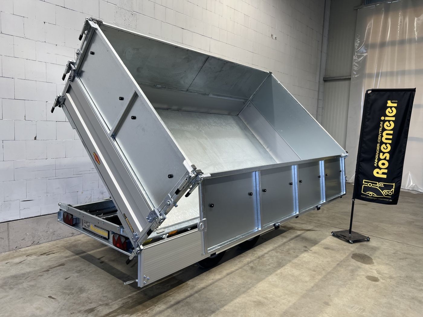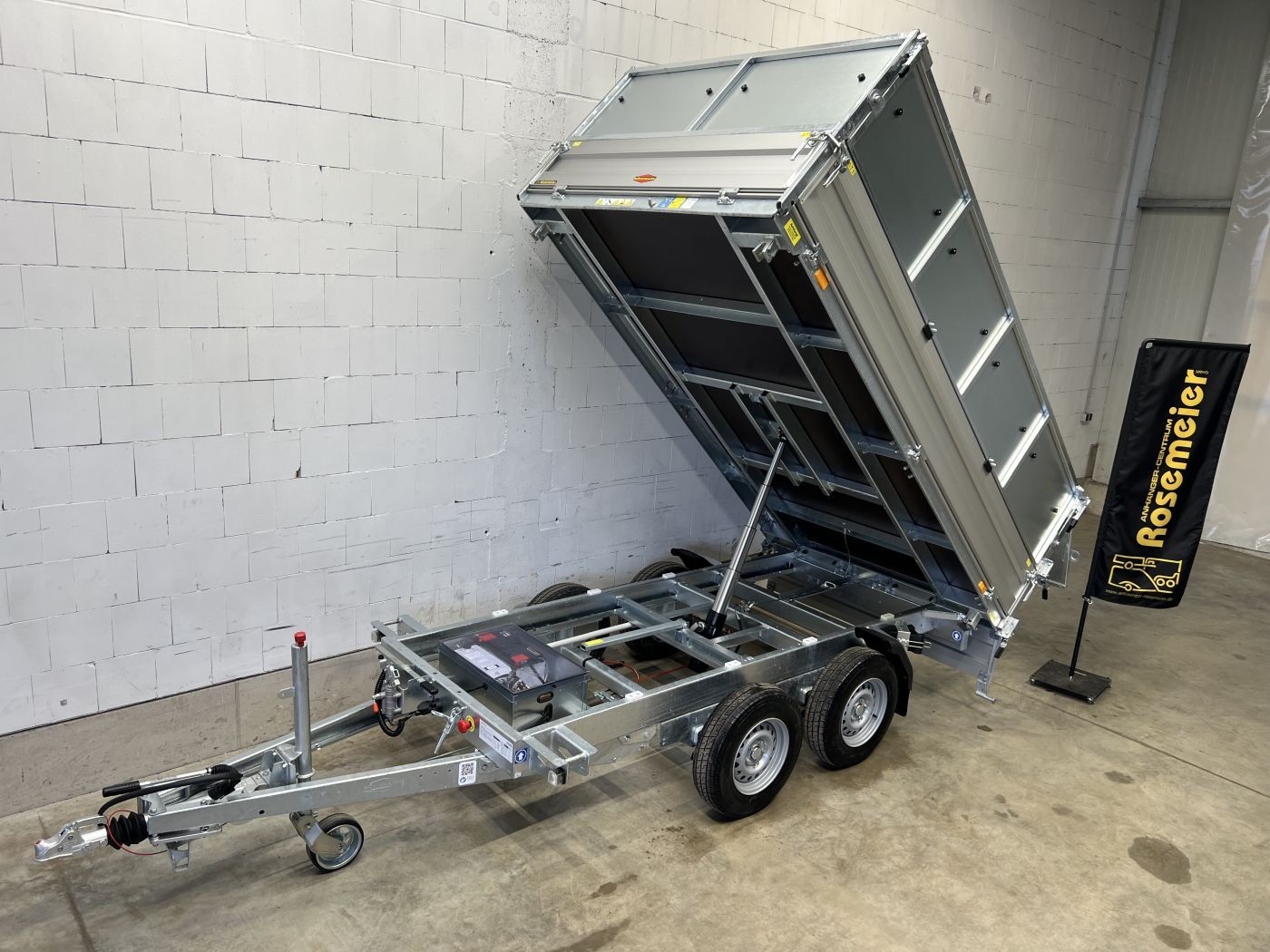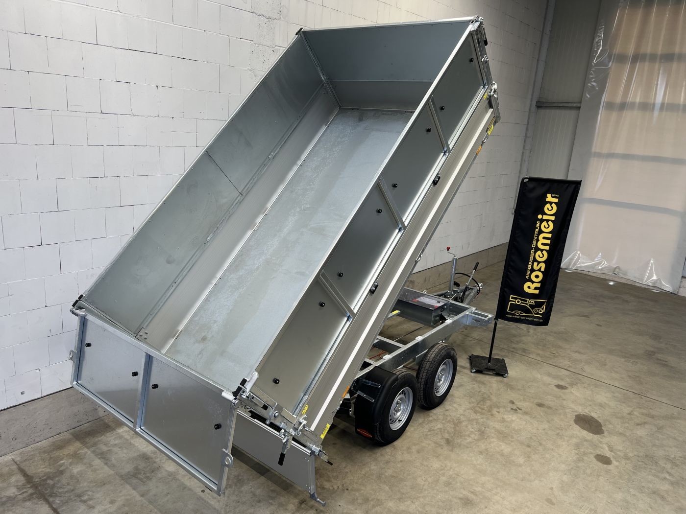 Dreiseitenkipper mit E-Pumpe und Blechaufsatz 600 mm