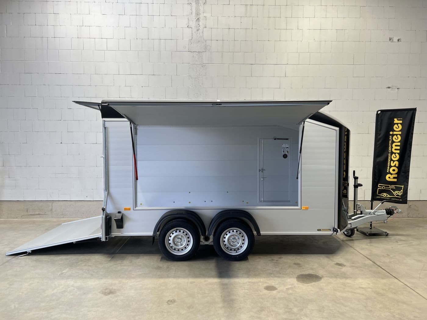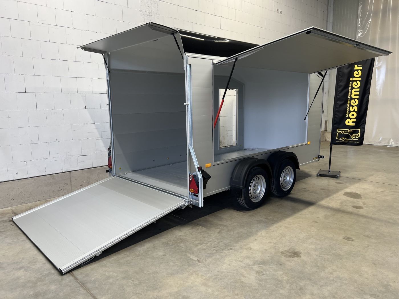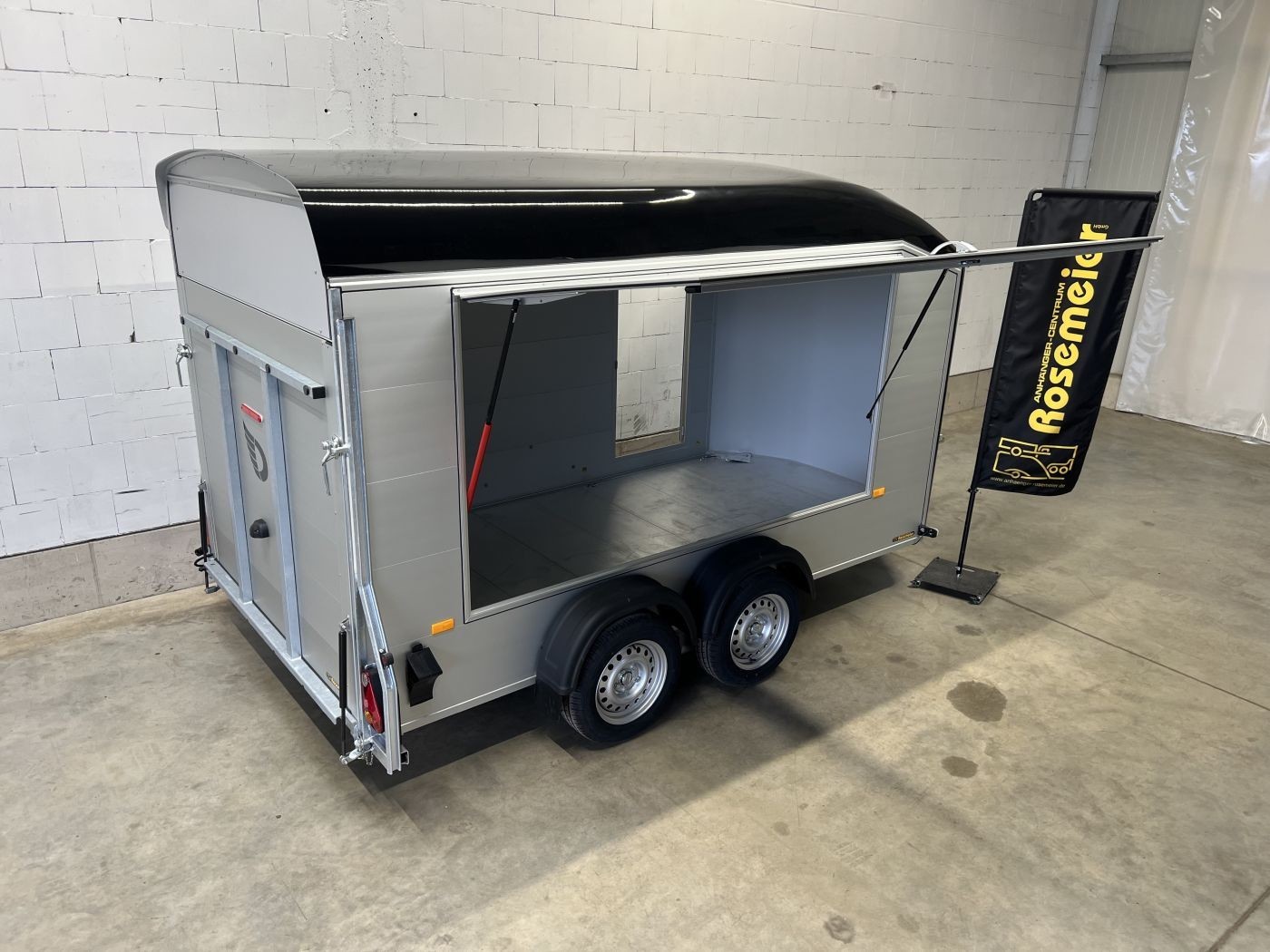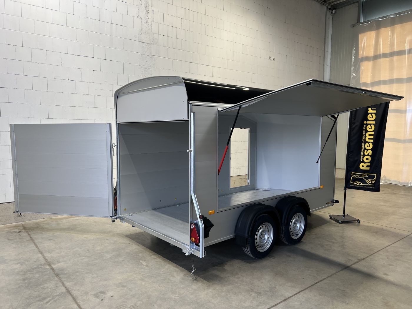 Kofferanhänger mit Verkaufsklappe rechts und Seitentür links