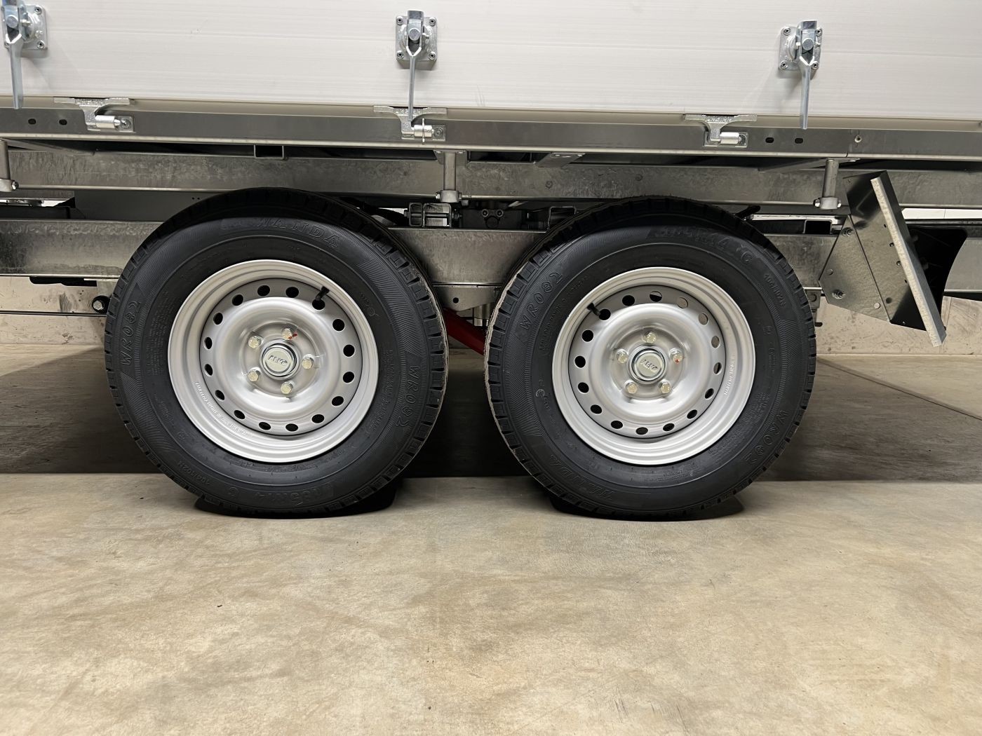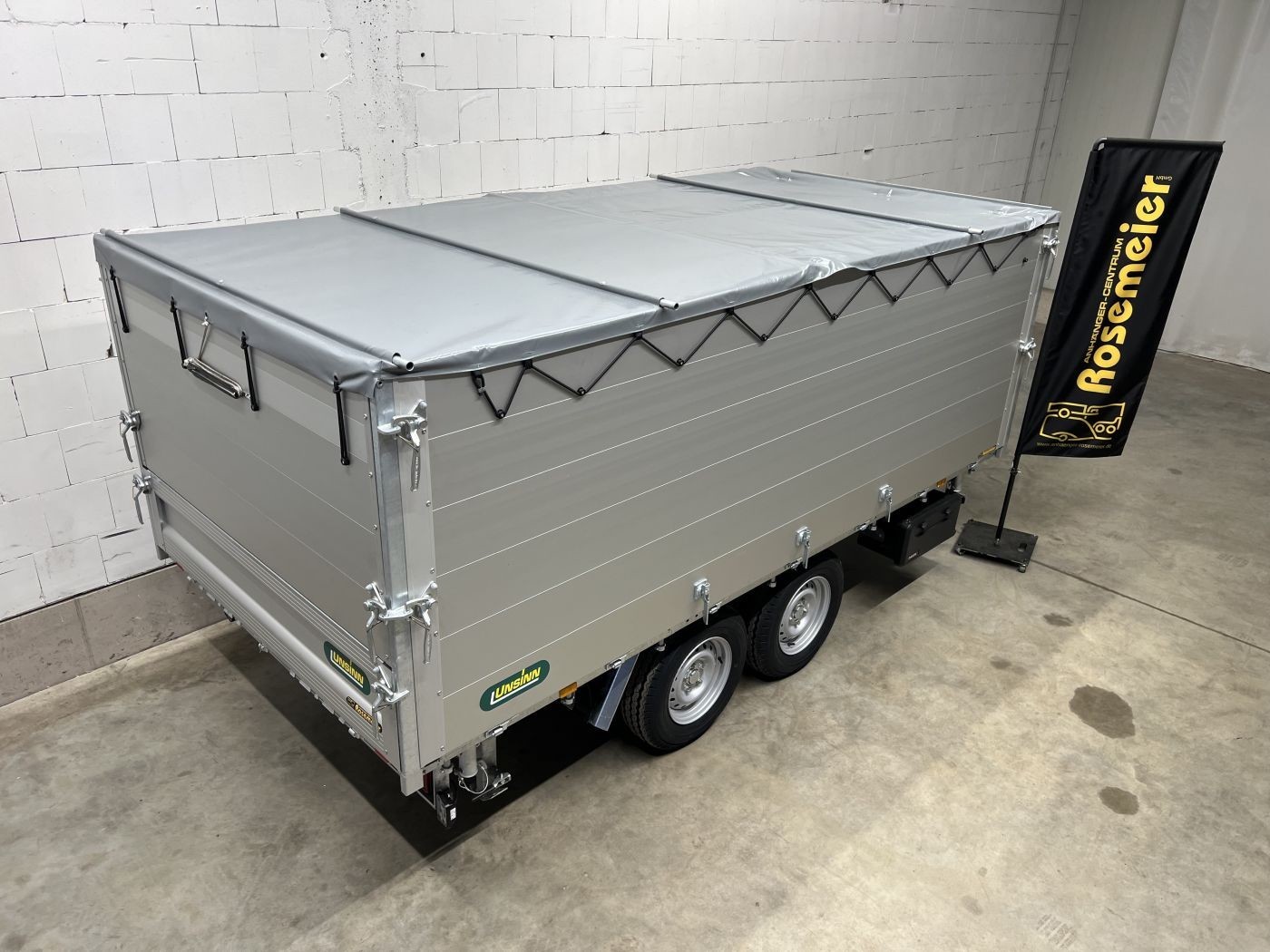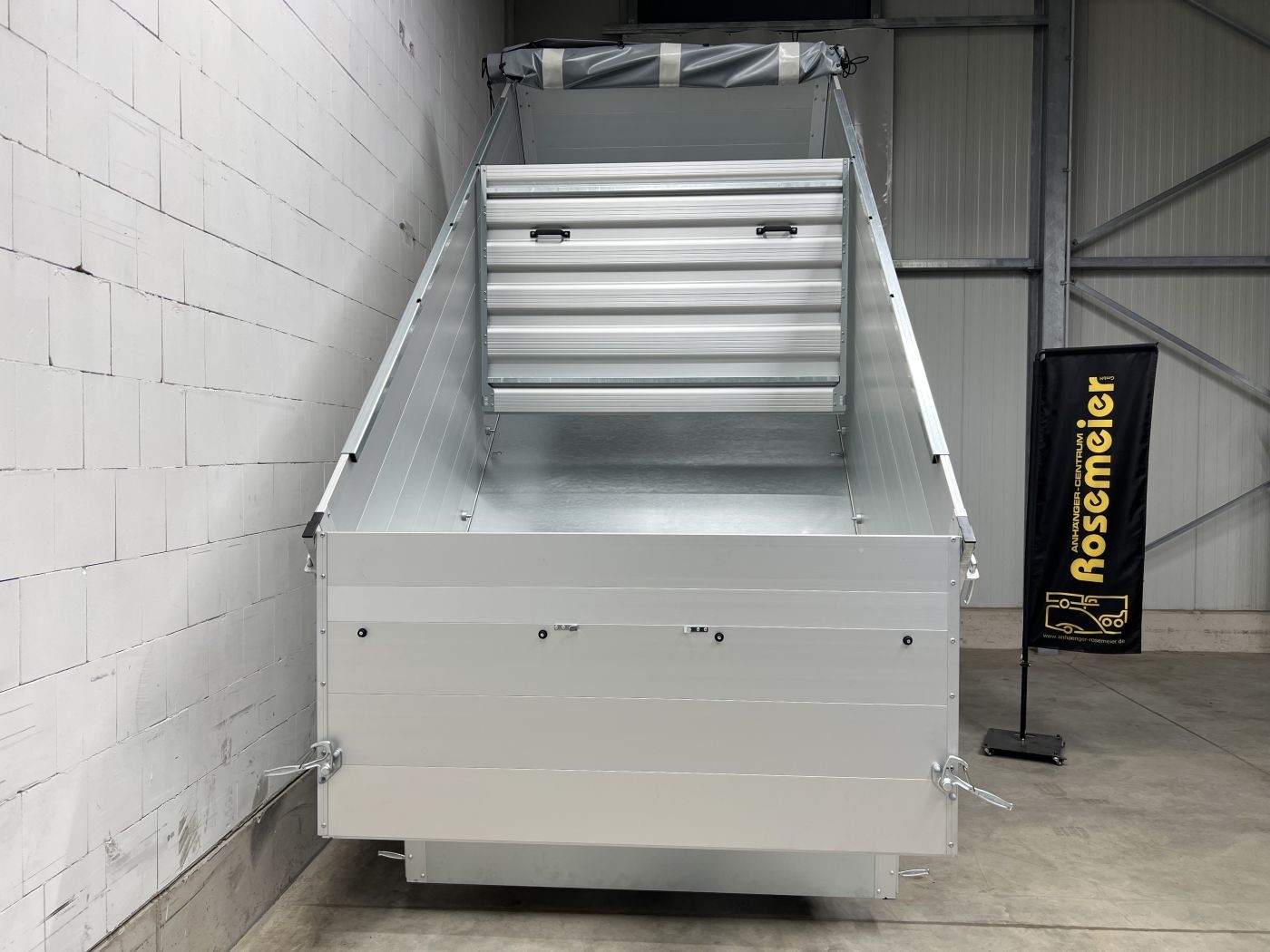 • Flachplane zum Schutz des getrockneten Brennholzes bei schlechtem Wetter inkl. Staufach an der Stirnbordwand