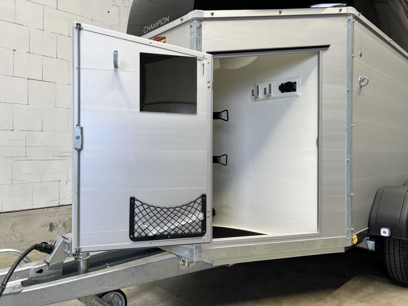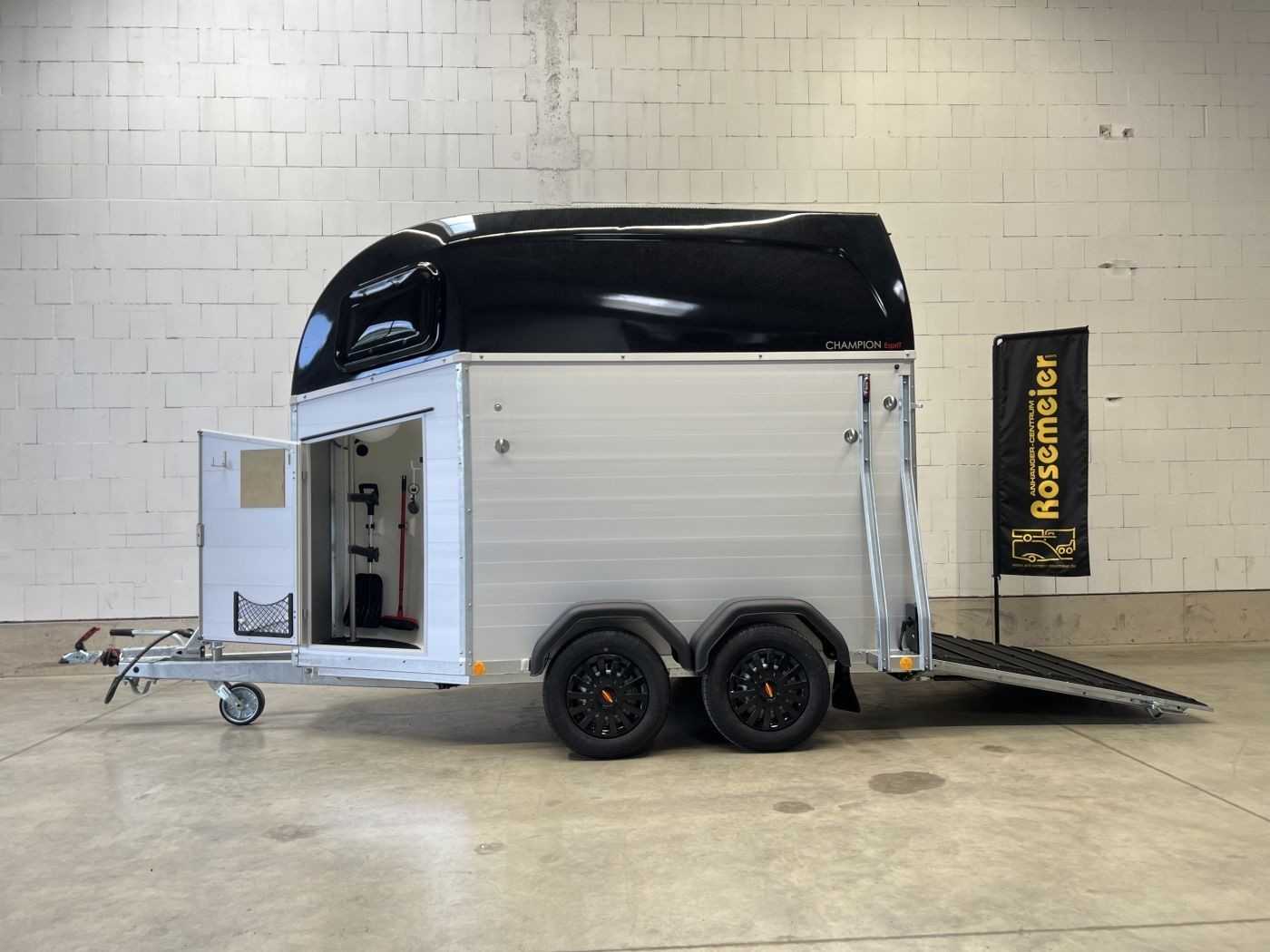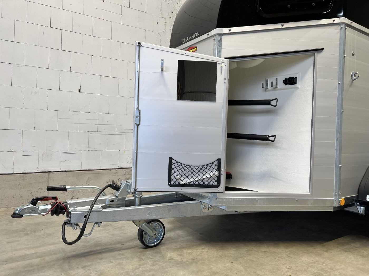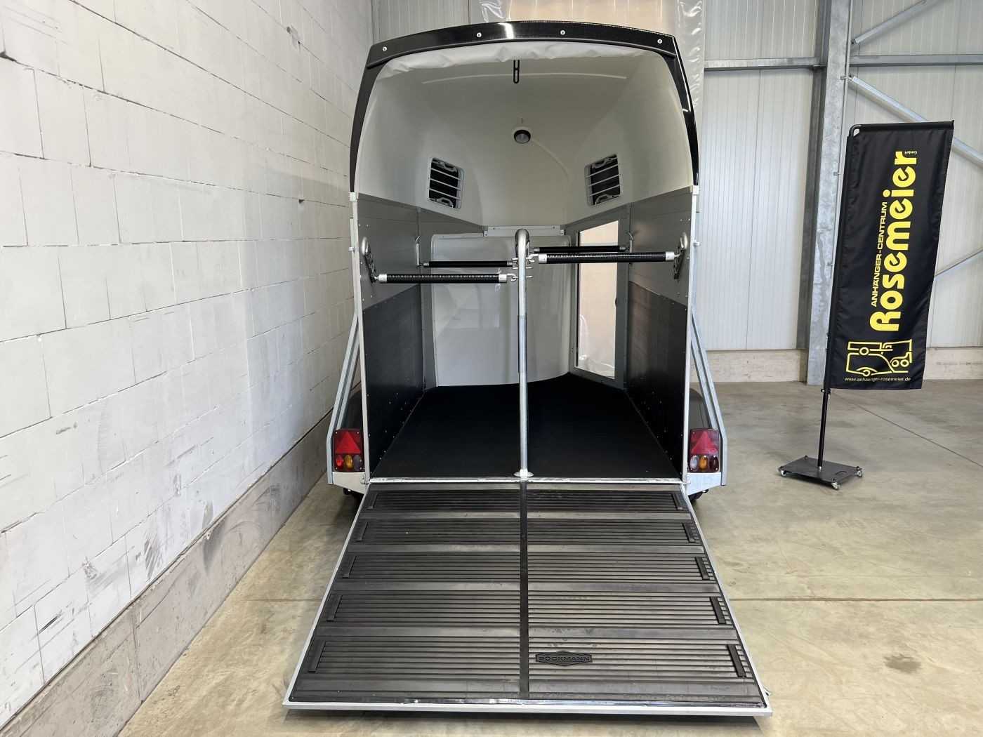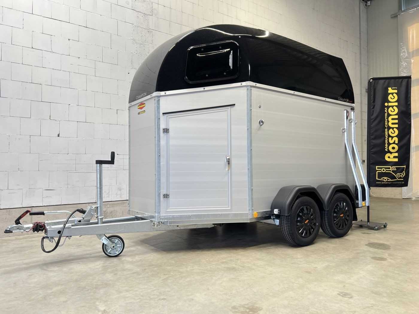 Pferdeanhänger Aluboden, Sattelkammer, Trittschutz, Trittleisten auf der Beladeklappe, Radstoßdämpfer für die 100 km/h-Abnahme