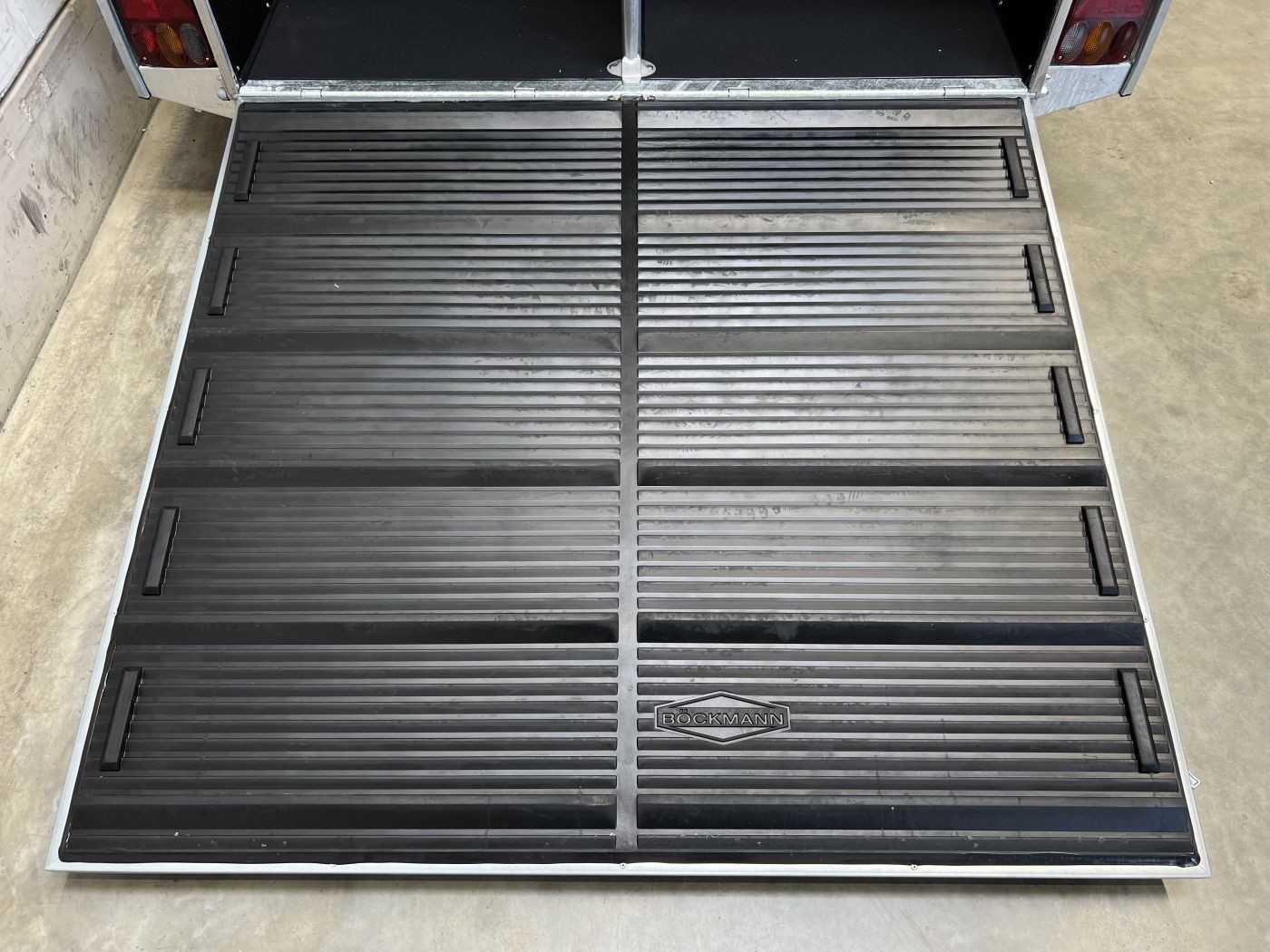 - Gummi auf Beladeklappe mit integrierten Trittleisten und Seitenstops gewährleisten optimalen Halt für Ihre Pferde
